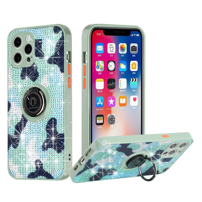 For iPhone 12 Pro Max 6.7 Crystal Diamond Bling Magnetic Ring Stand Case Cover