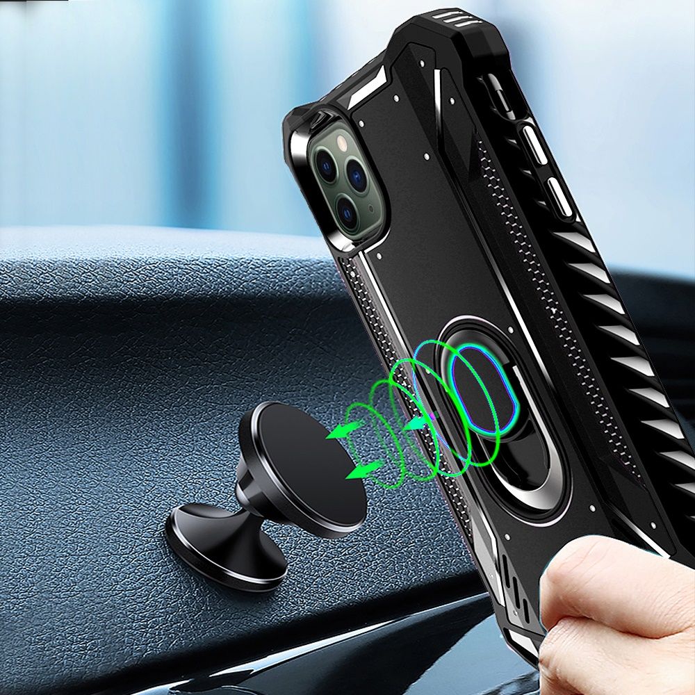 For Apple iPhone 11 Pro MAX (XI6.5) Magnetic Metal Design Ring Kickstand Case Cover