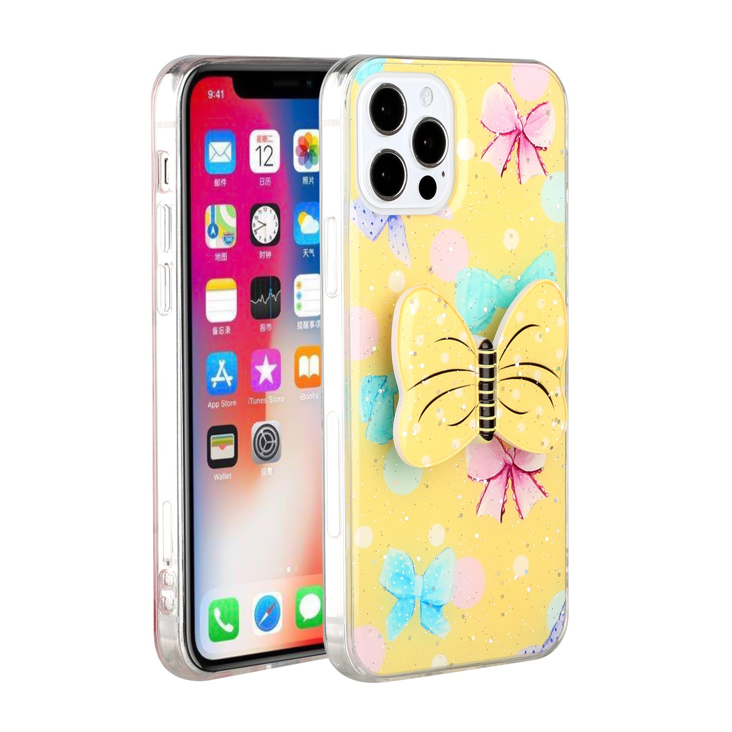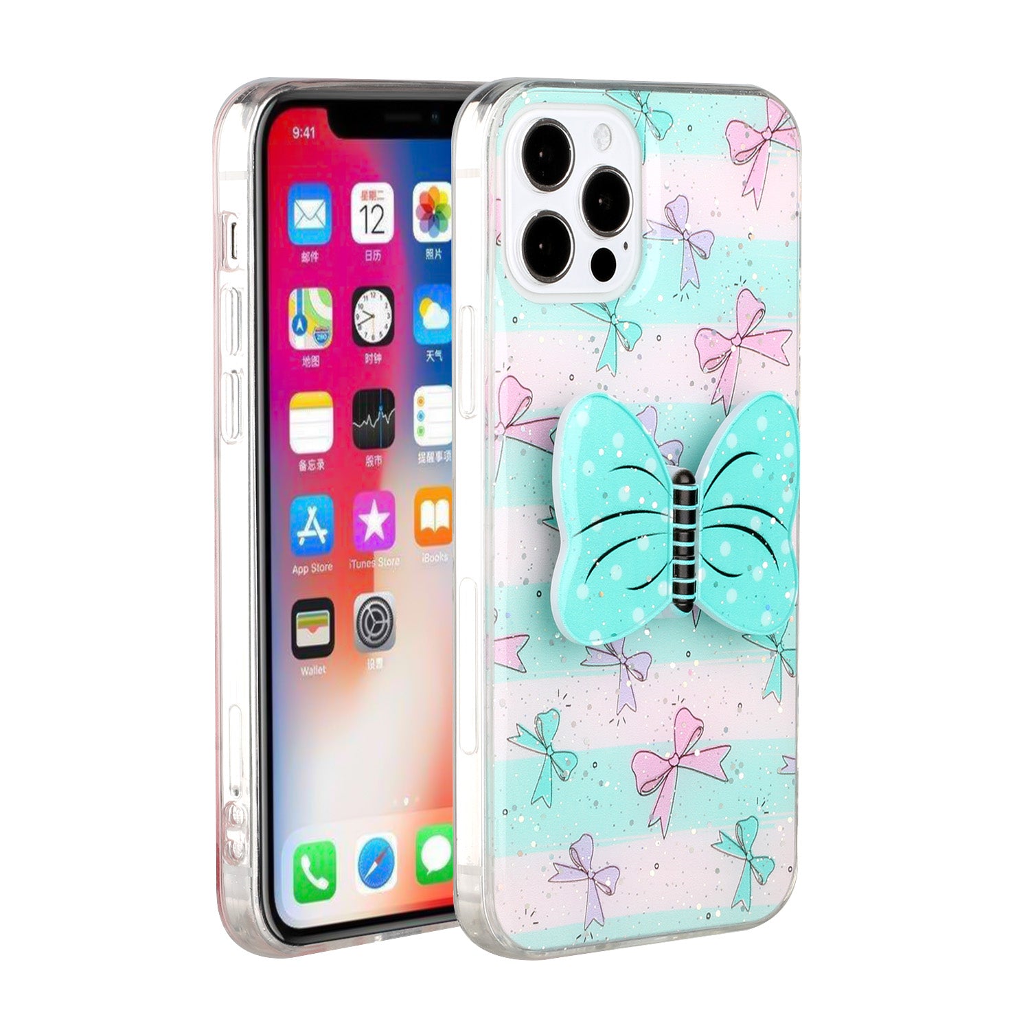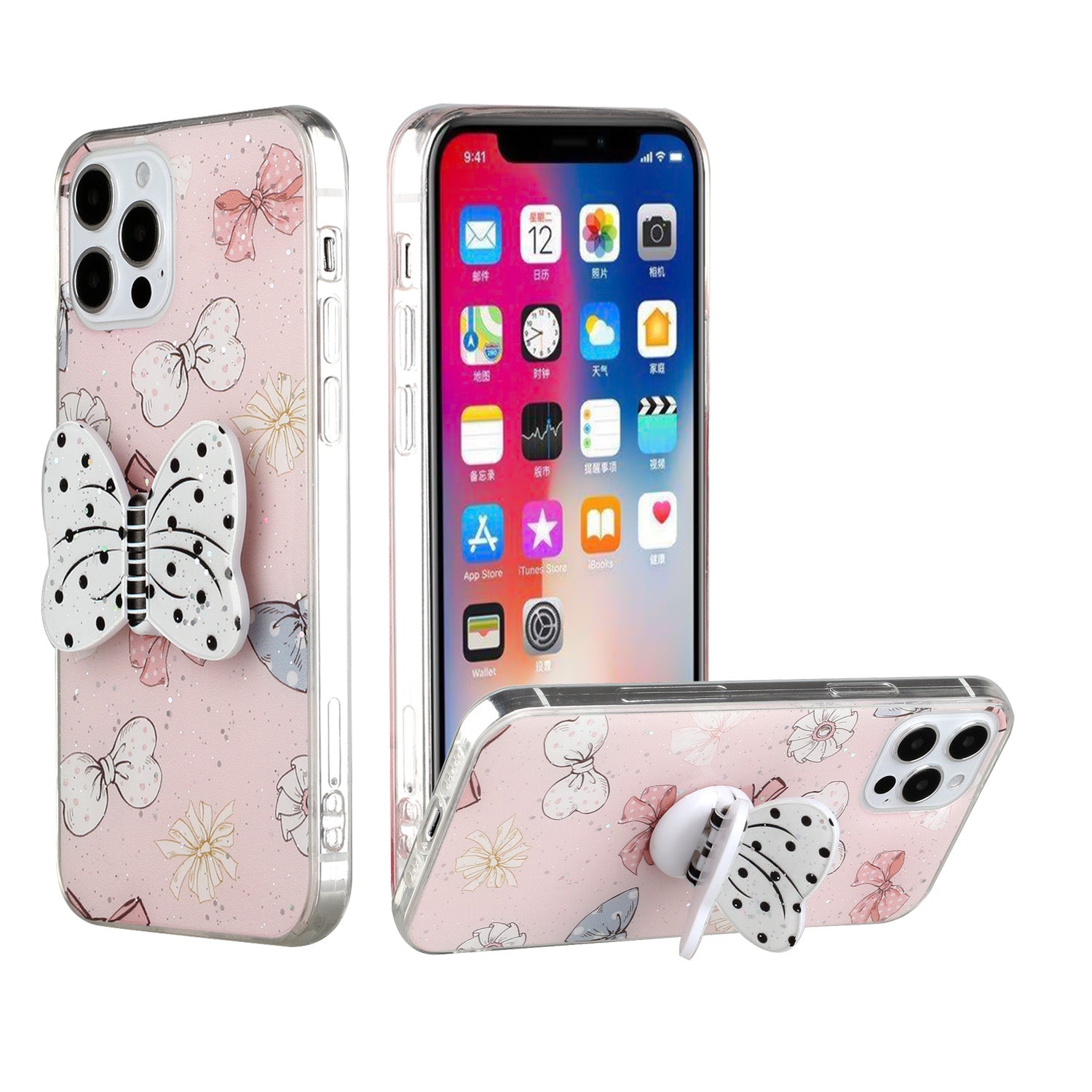 For Apple iPhone 11 PRO MAX / XS Max Design Epoxy Glitter Butterfly Stand TPU Cover Case