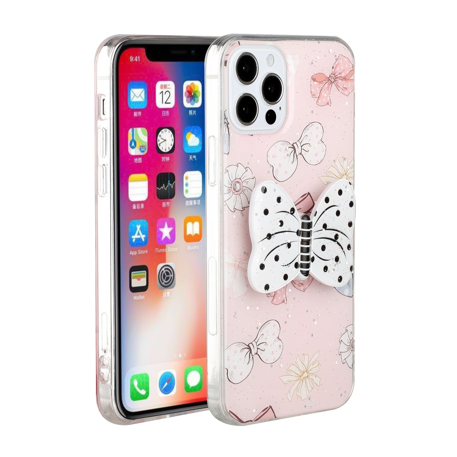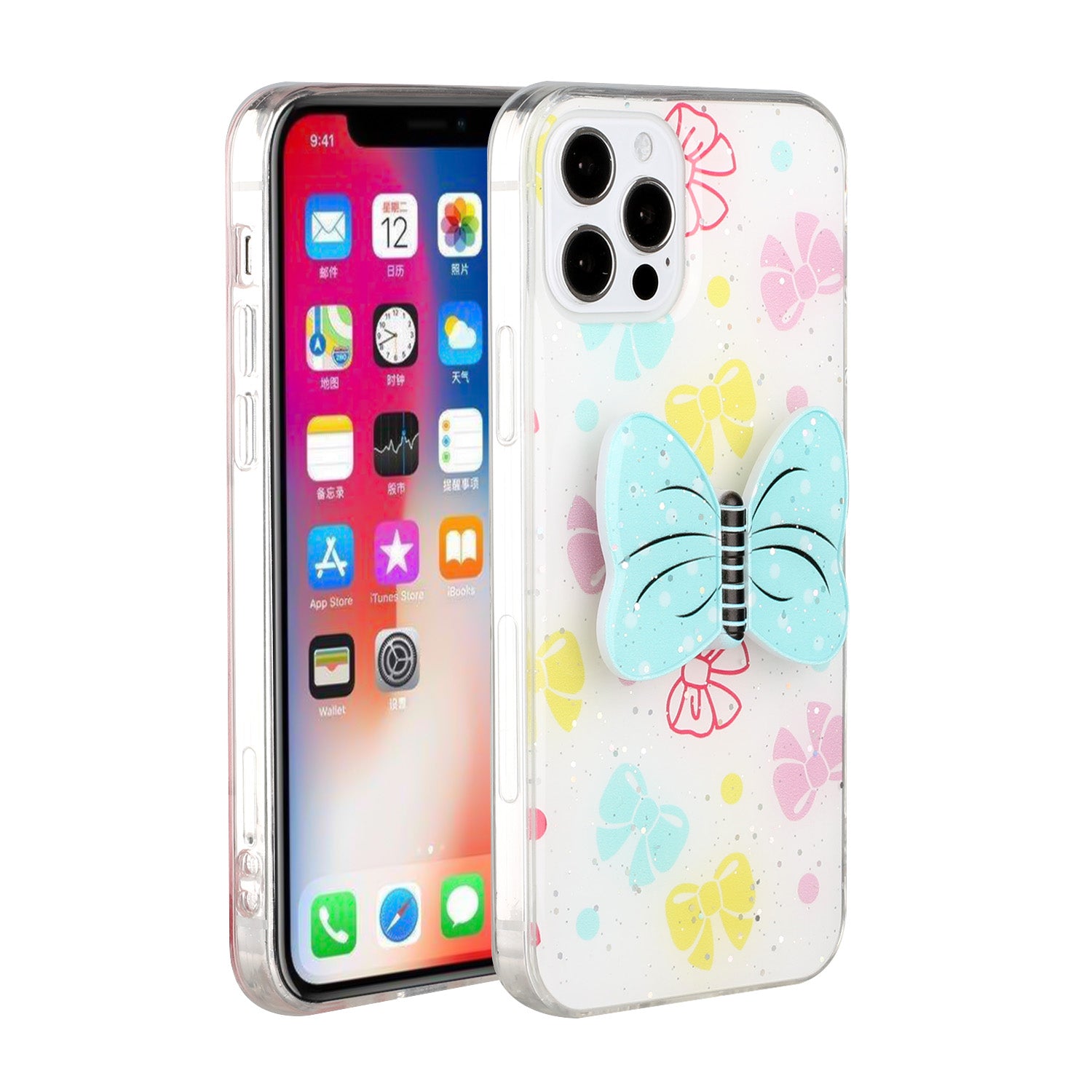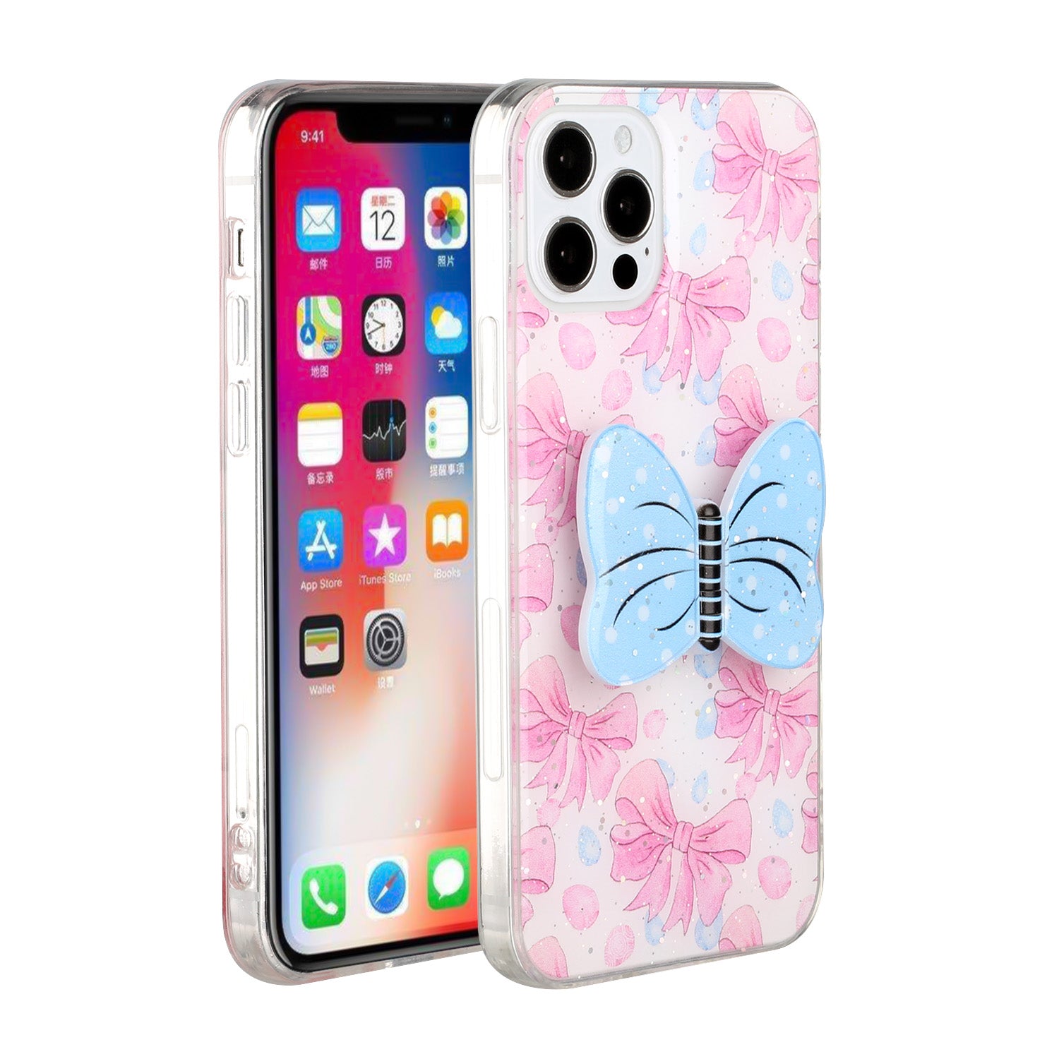 For Apple iPhone 11 PRO MAX / XS Max Design Epoxy Glitter Butterfly Stand TPU Cover Case