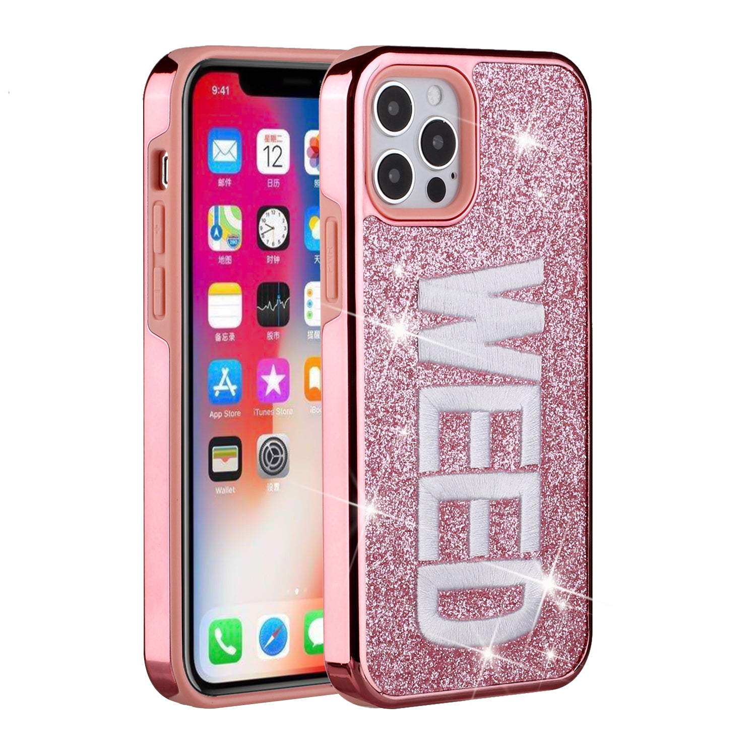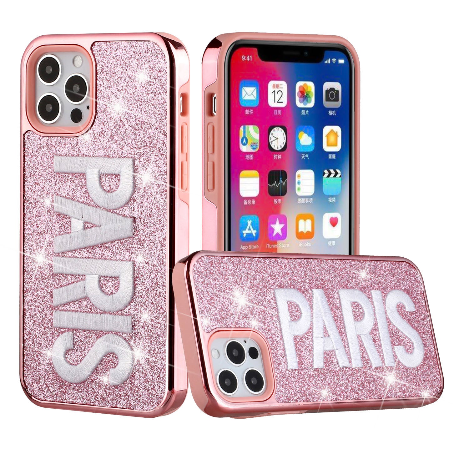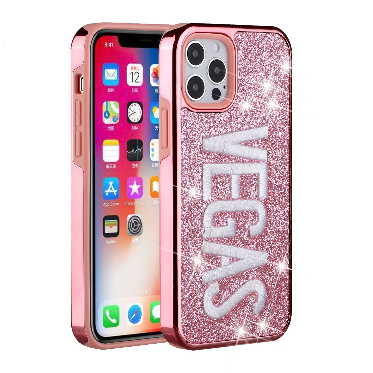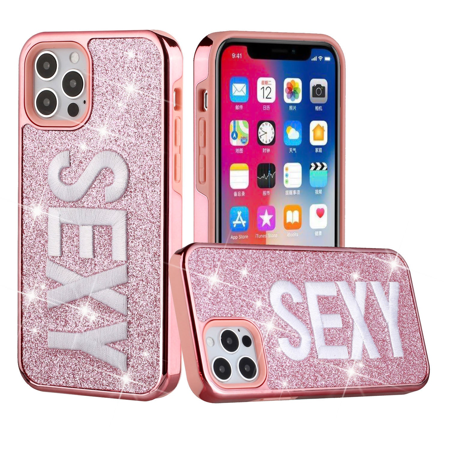 For Apple iPhone 11 PRO MAX / XS Max Embroidery Bling Glitter Chrome Hybrid Case Cover