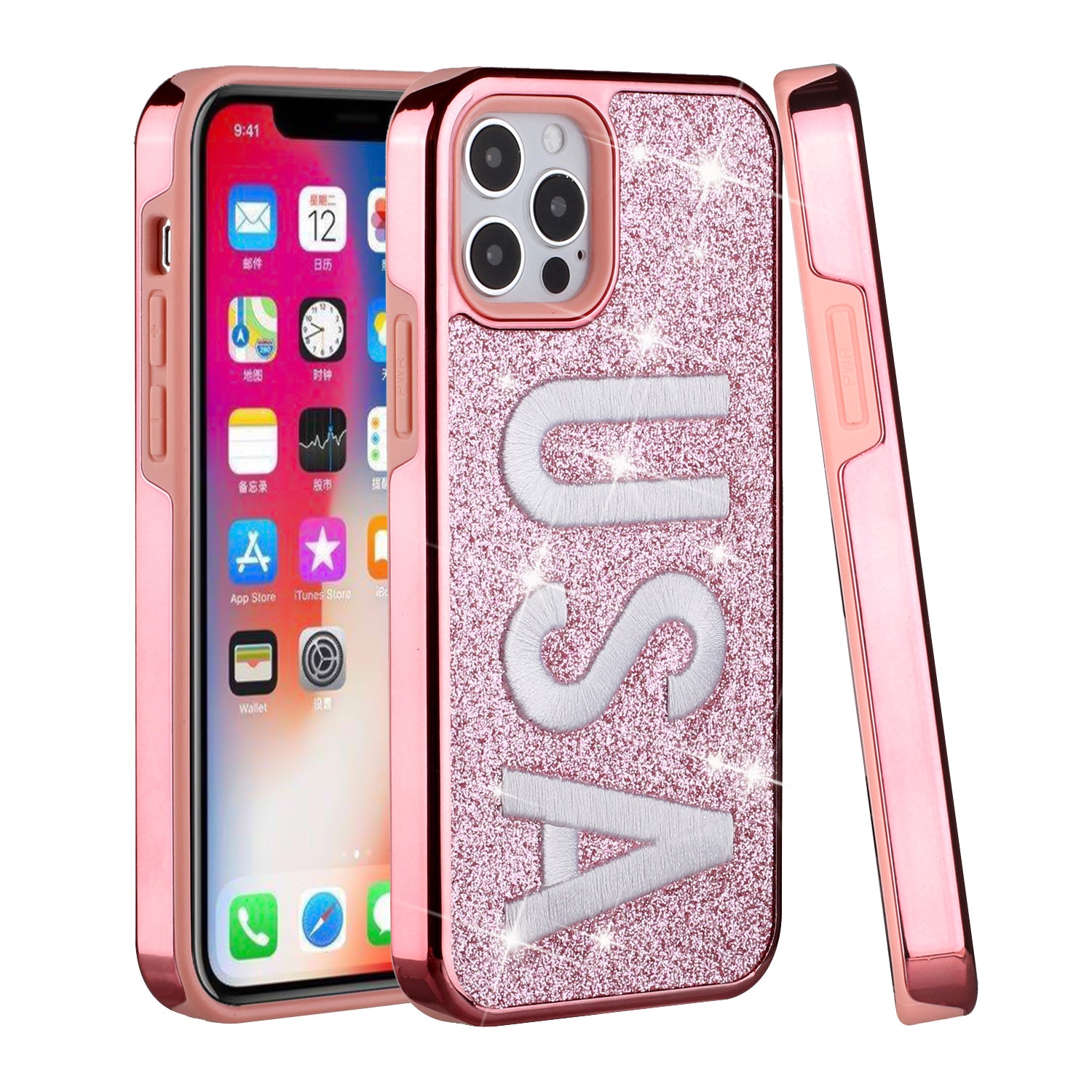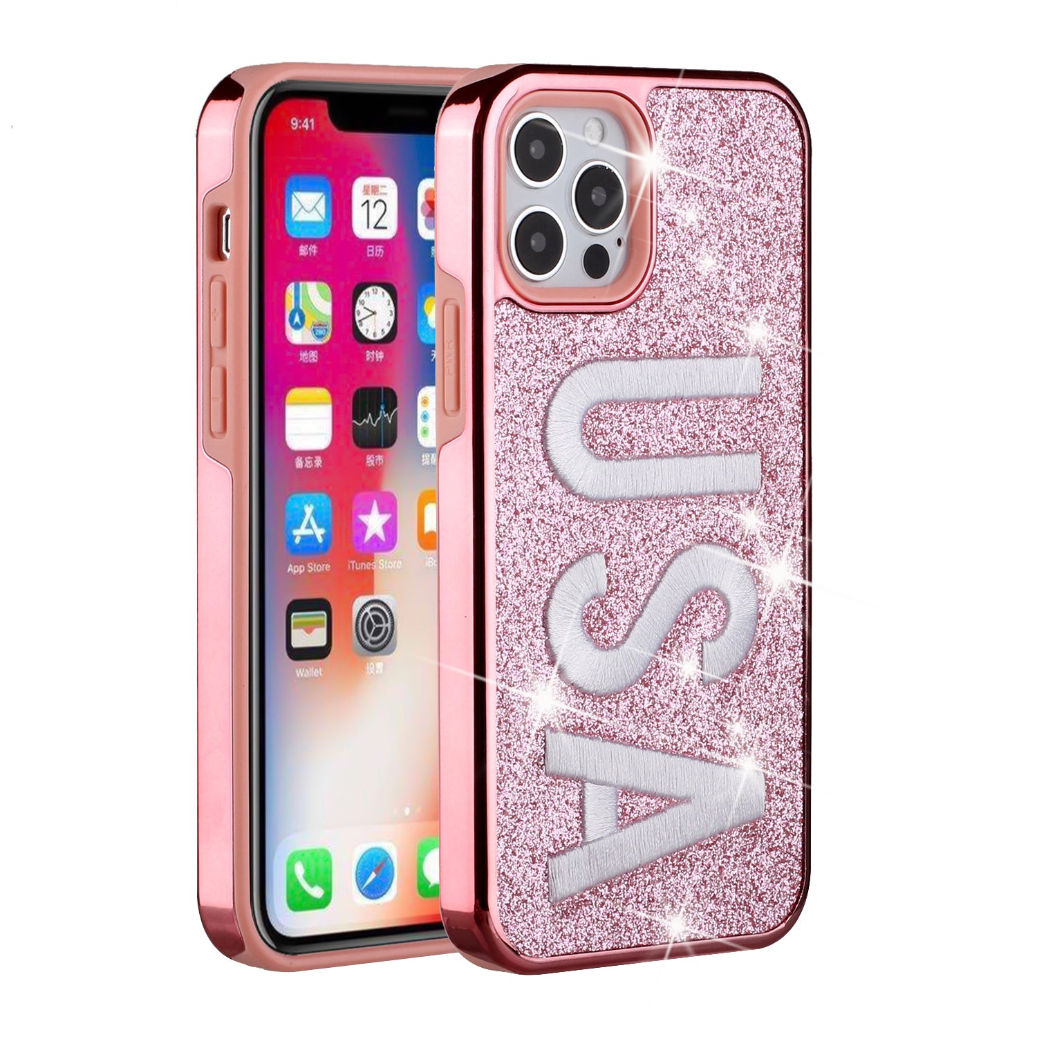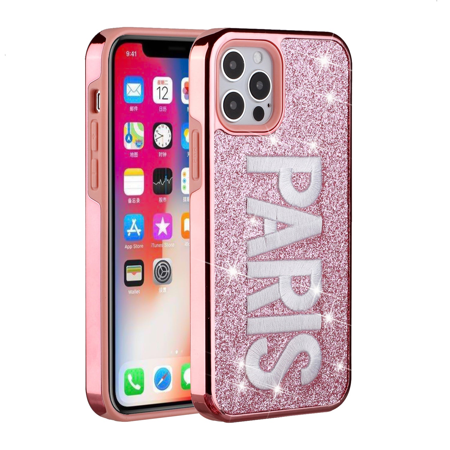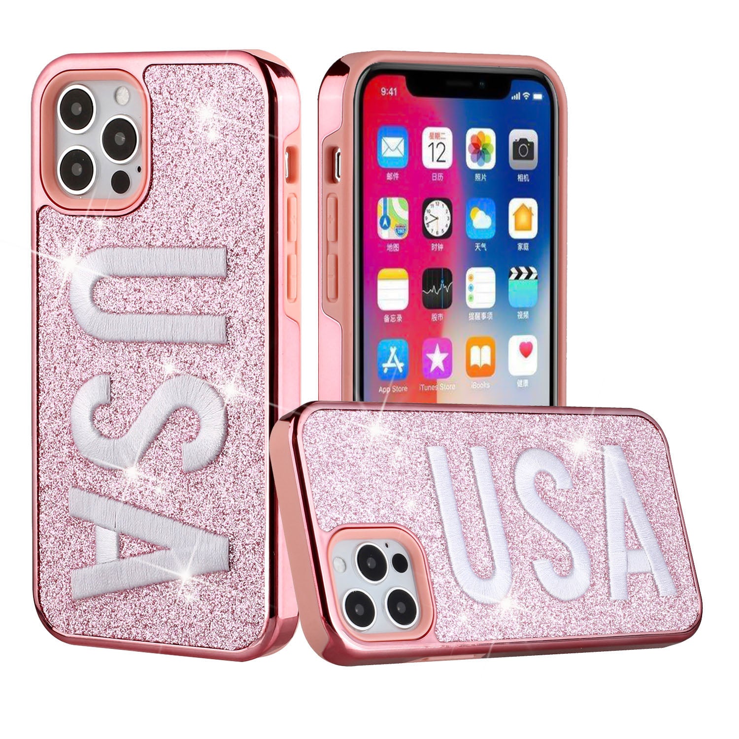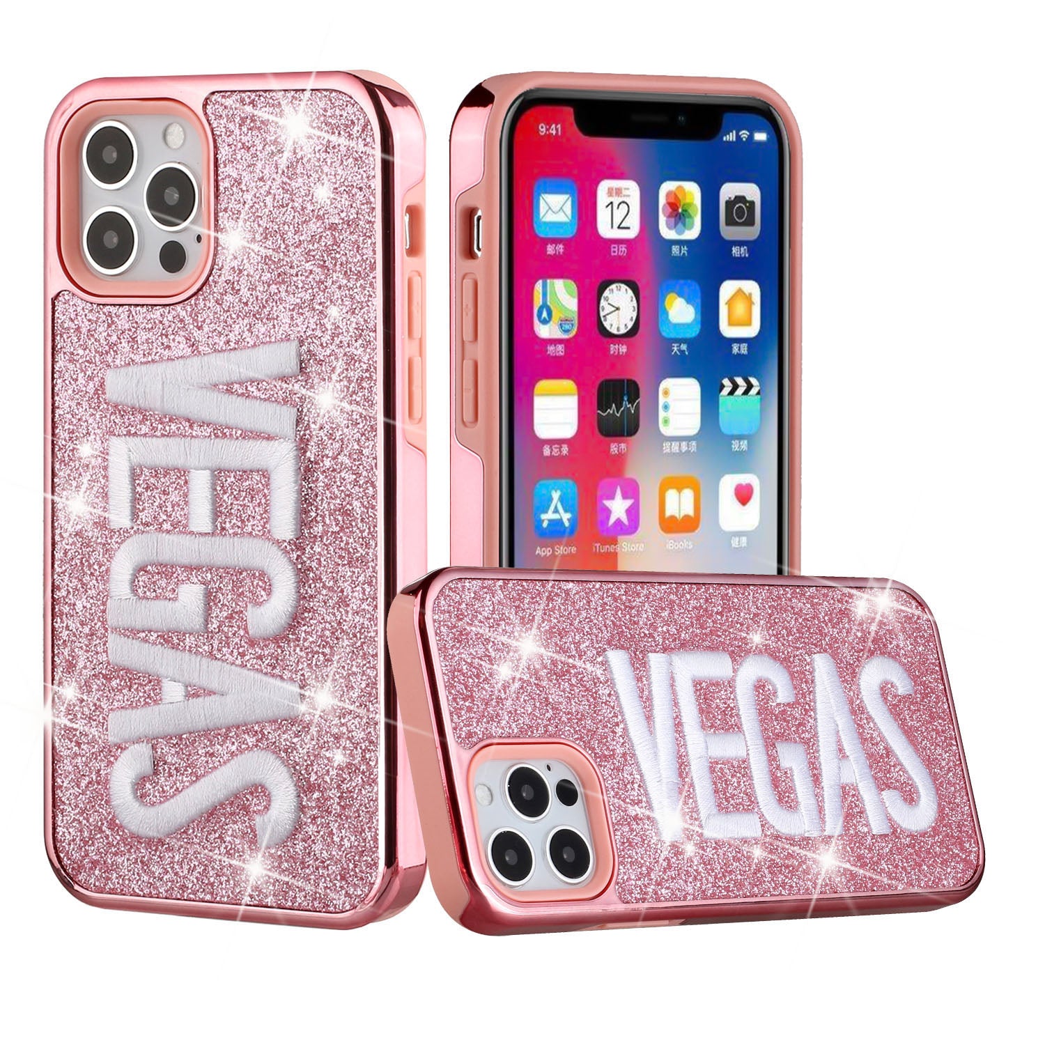 For Apple iPhone 11 PRO MAX / XS Max Embroidery Bling Glitter Chrome Hybrid Case Cover