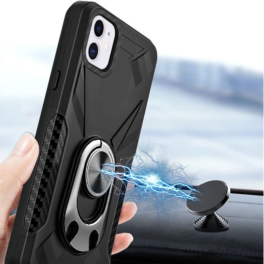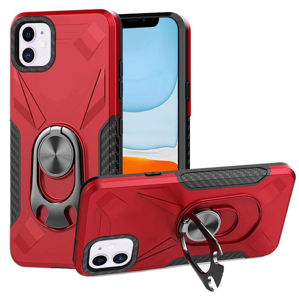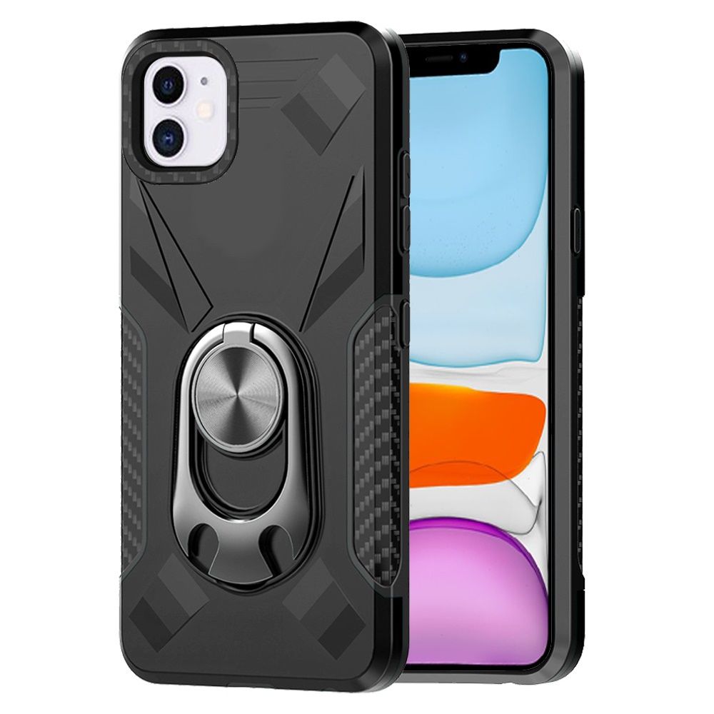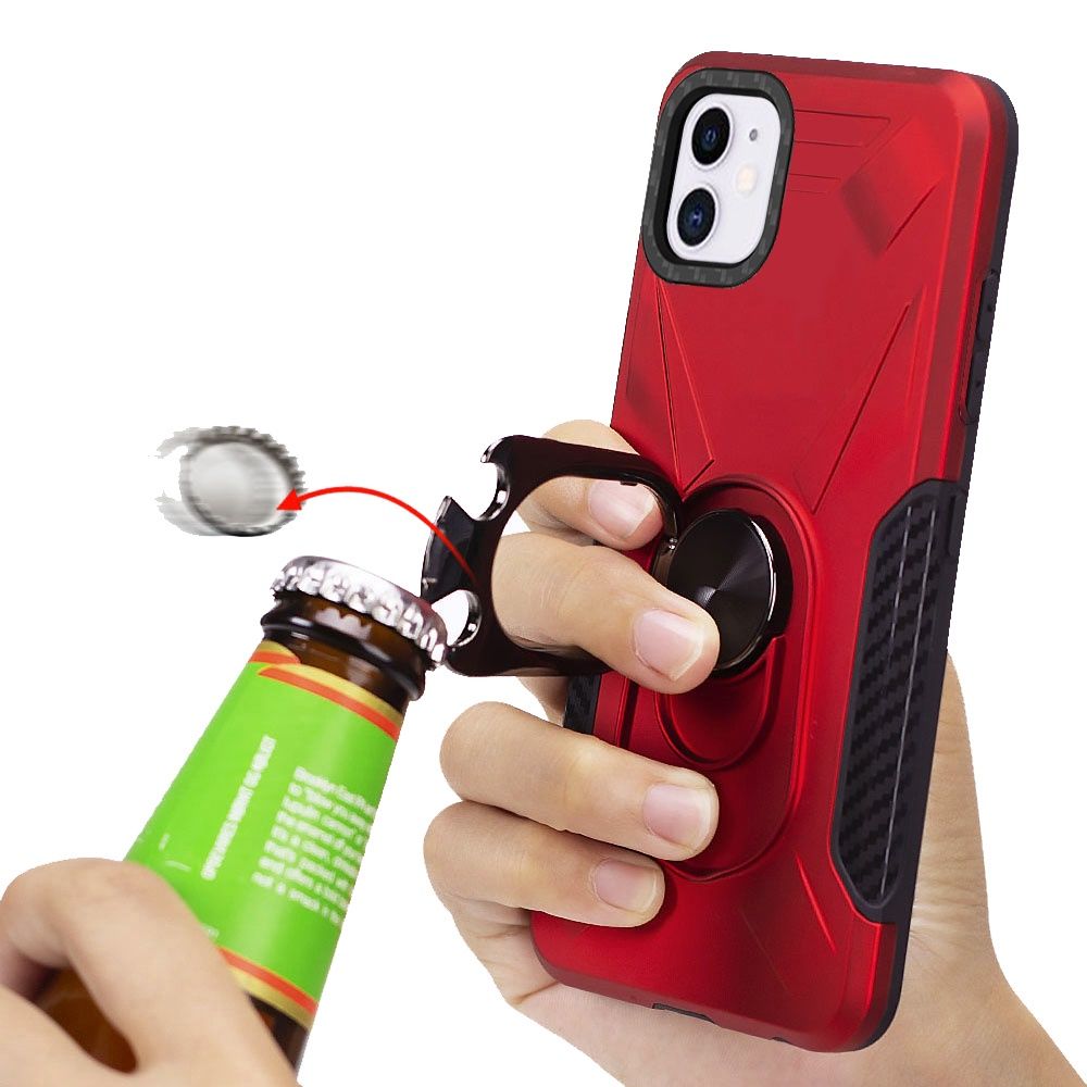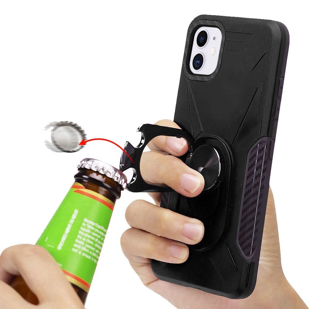 For Apple iPhone 11 (XI6.1) Beer Opener Metal Ring Stand 360 Degree Rotation PC TPU Hybrid