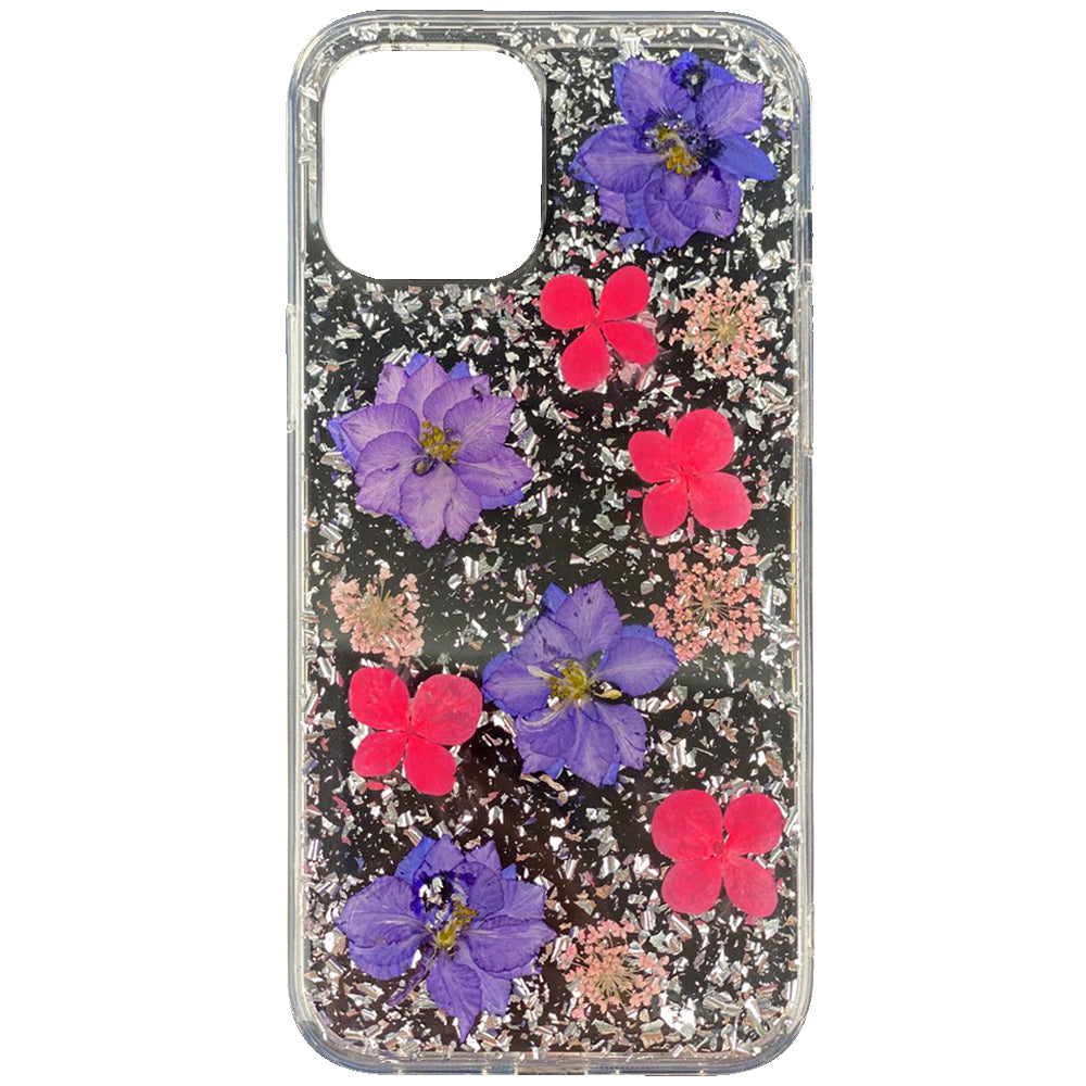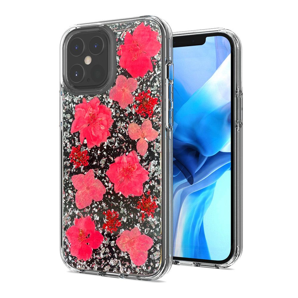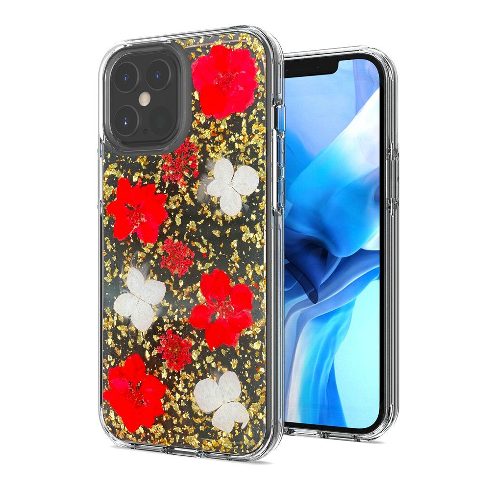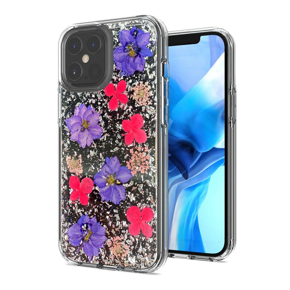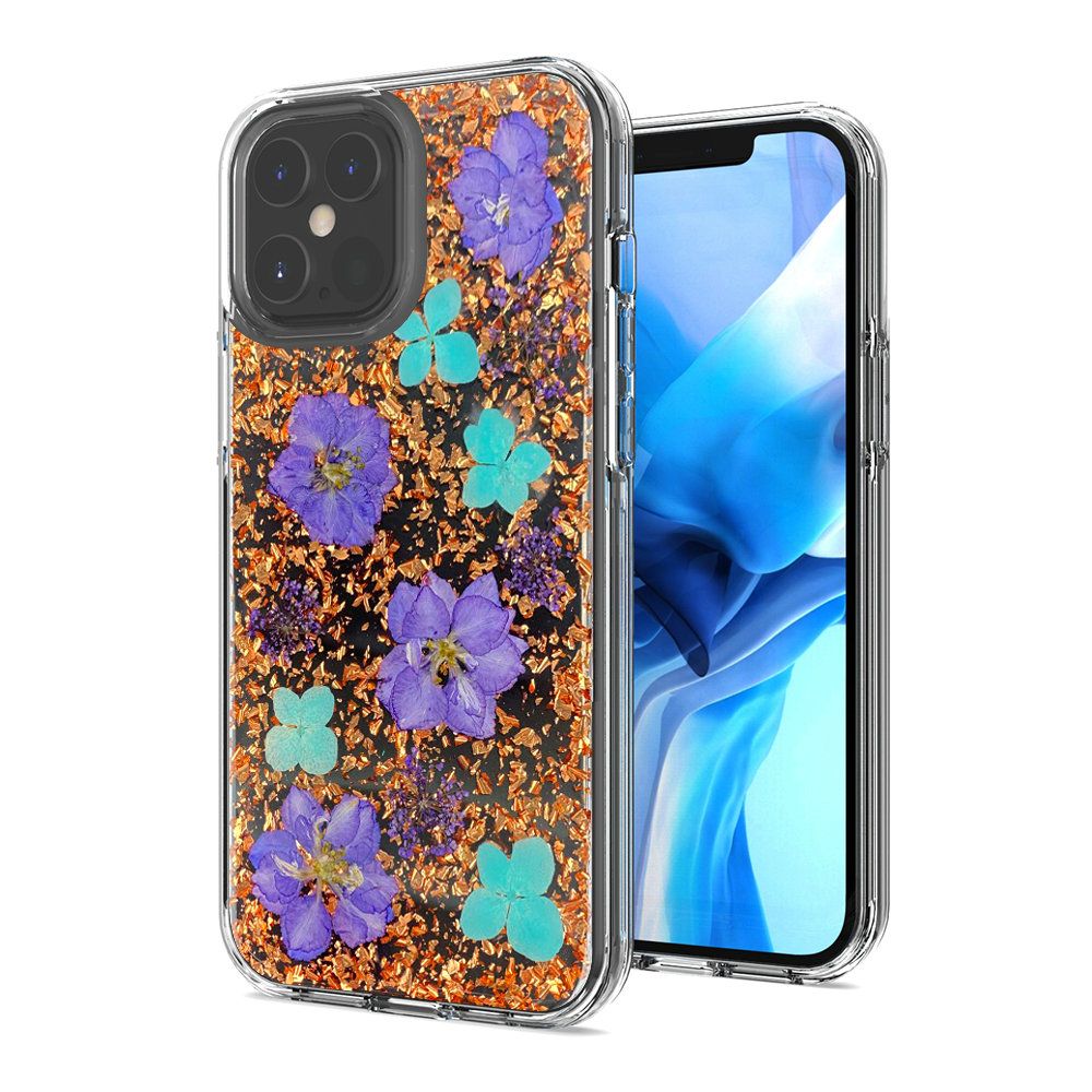 For Apple iPhone 12 6.1 inch Fashion Real Flowers Epoxy Flakes Glitter