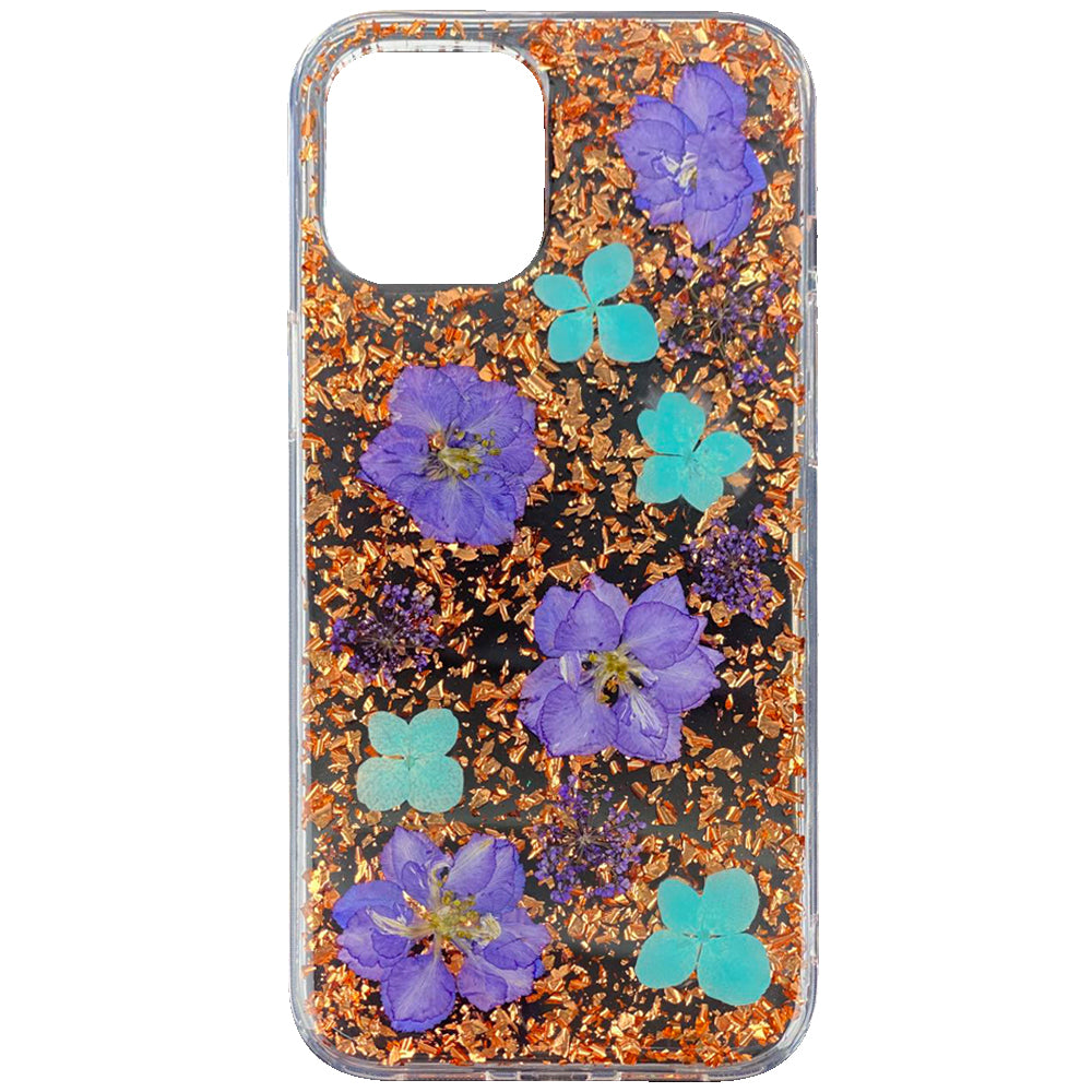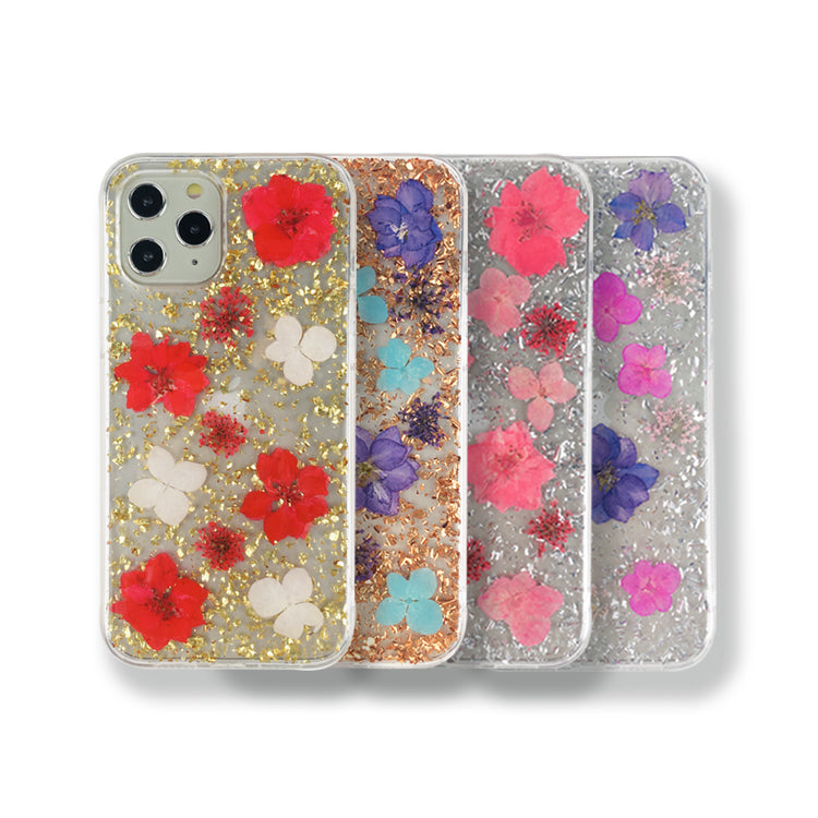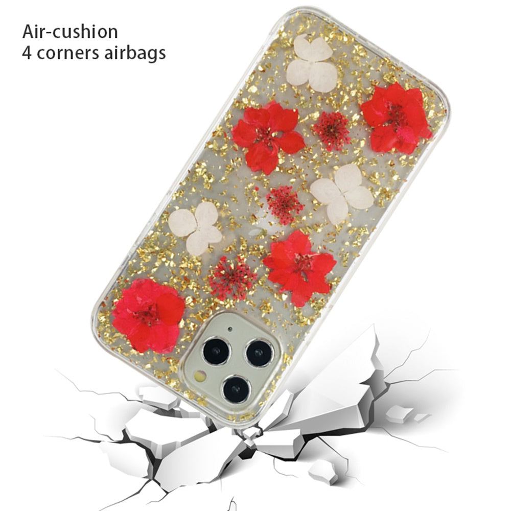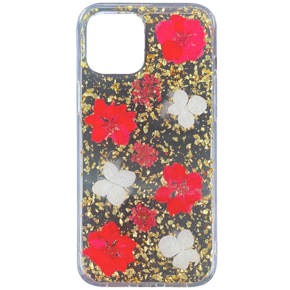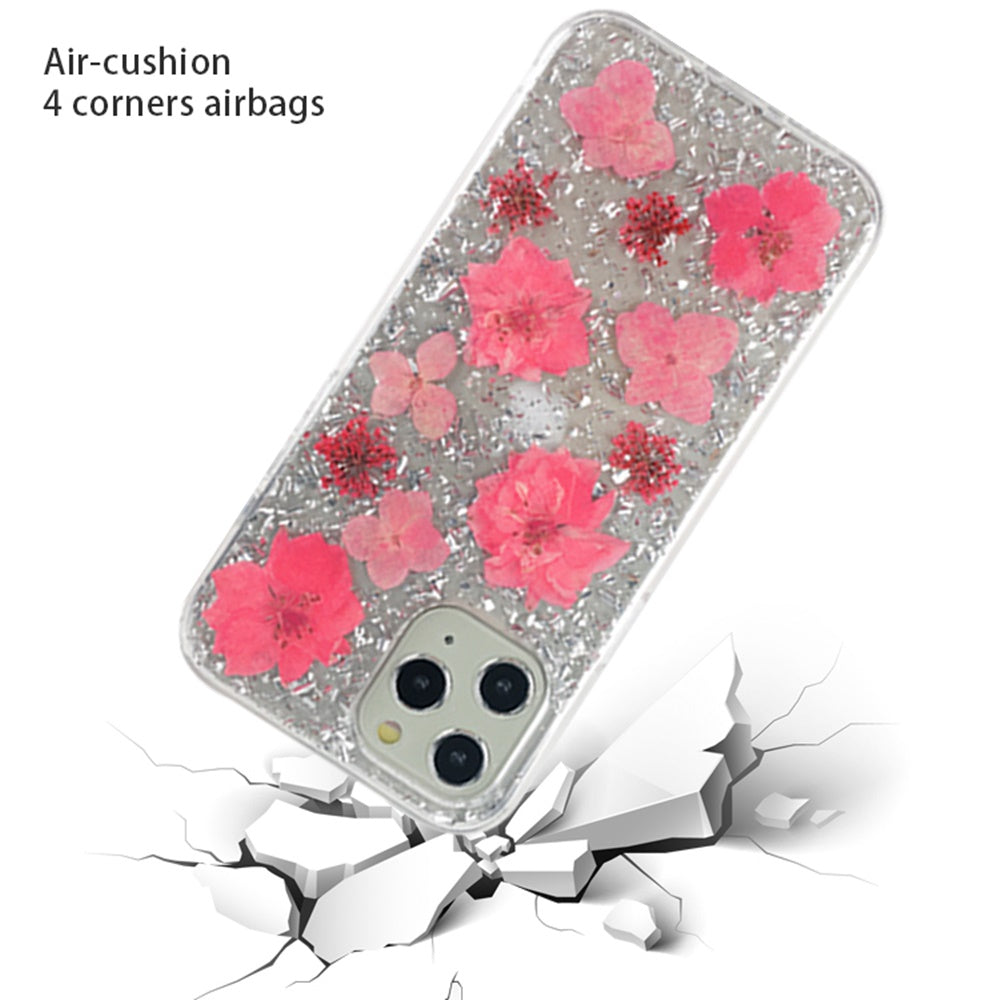 For Apple iPhone 12 6.1 inch Fashion Real Flowers Epoxy Flakes Glitter