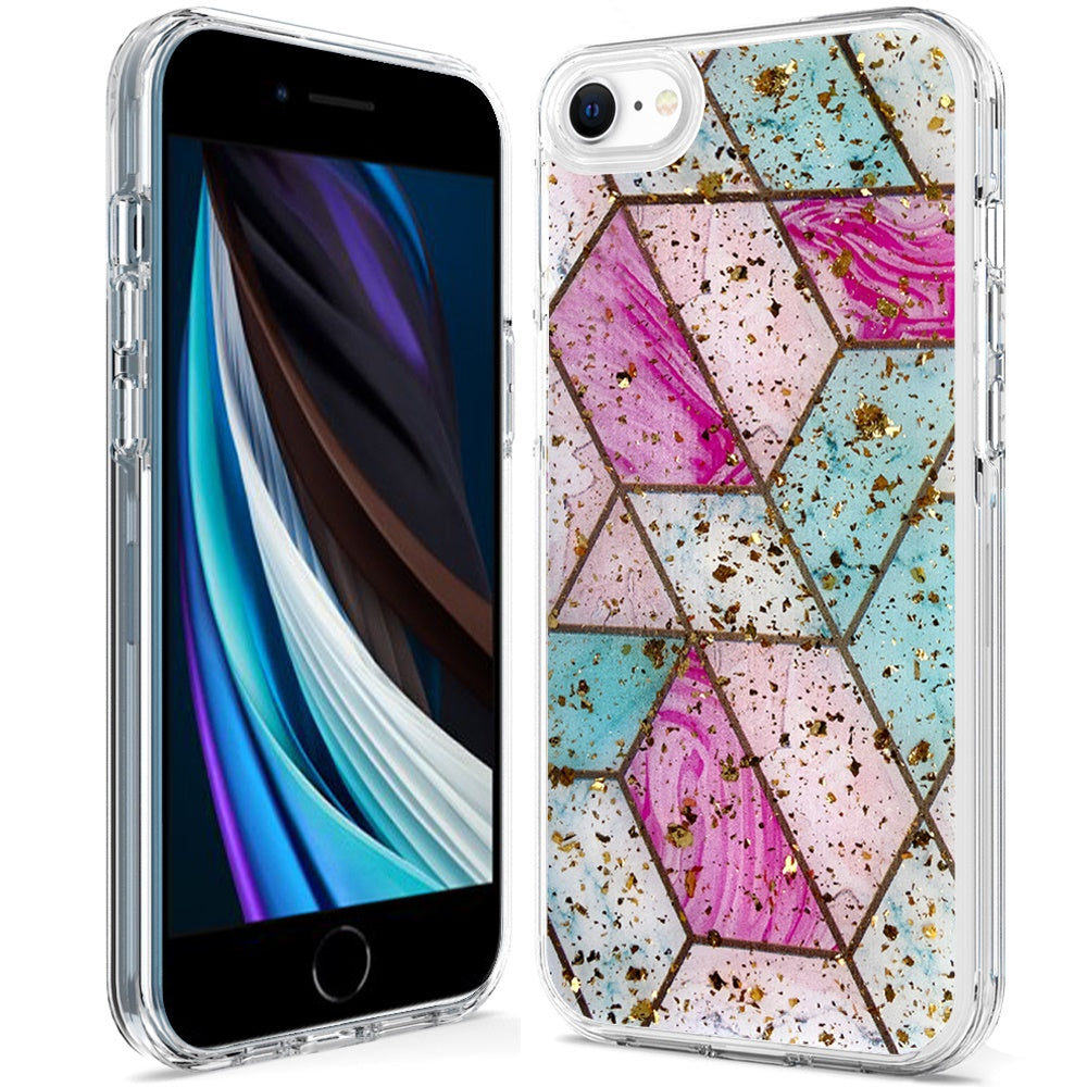 For Apple iPhone SE2 (2020) 8/7/6/6s Magnificent Epoxy Glitter Design Hybrid Case Cover