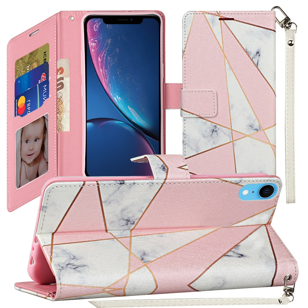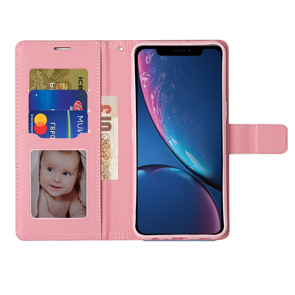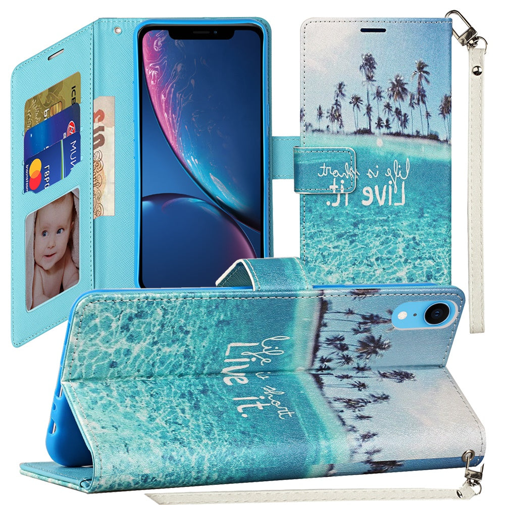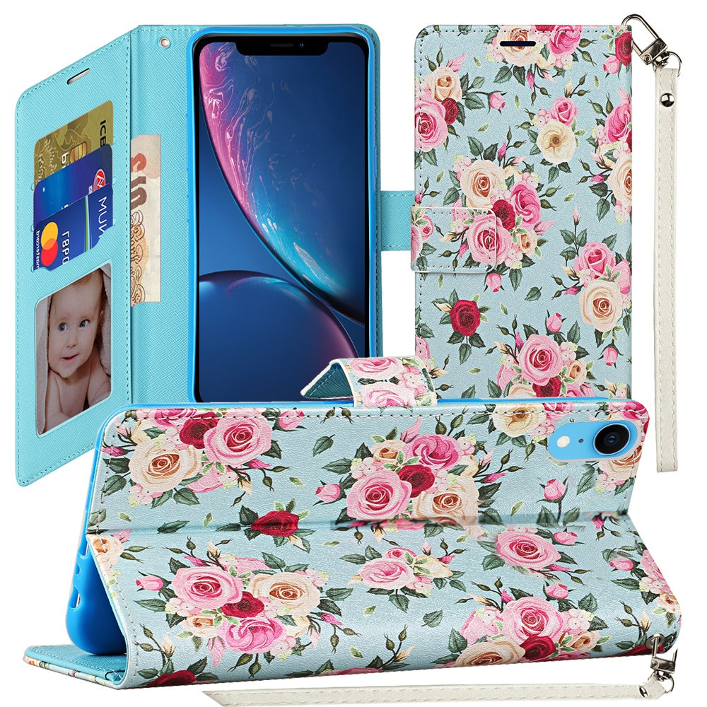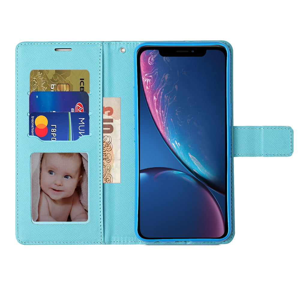 For Apple iPhone XR Vegan Design Wallet ID Card Case Cover