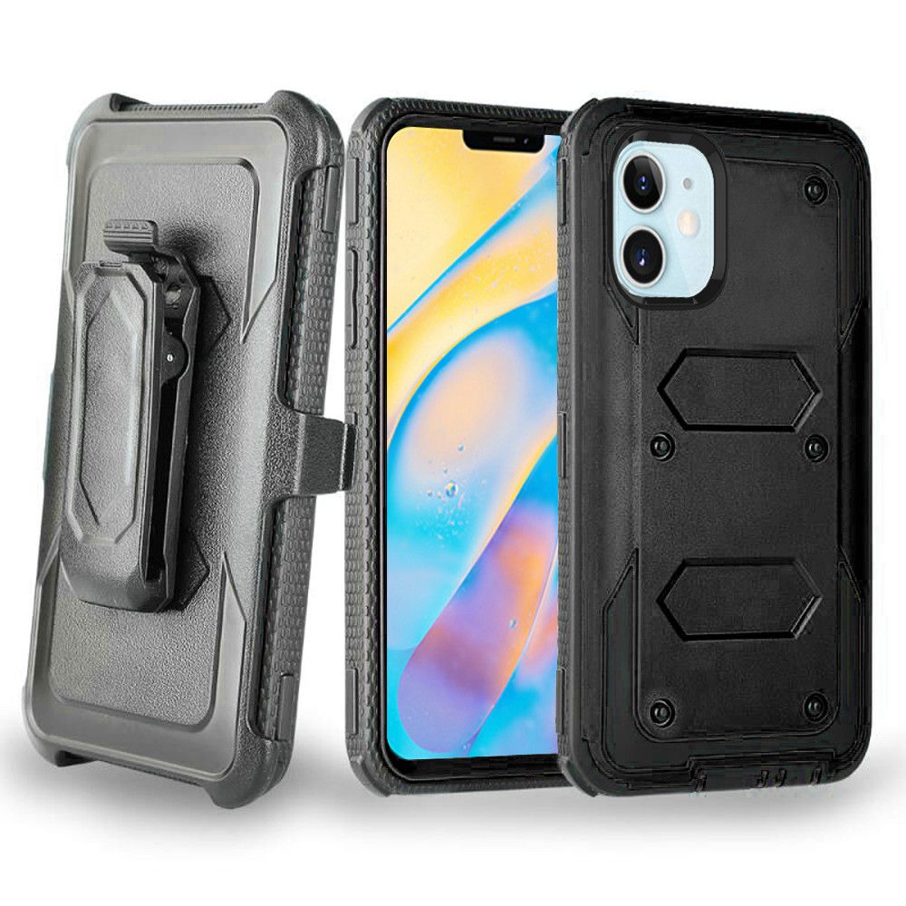 For iPhone 12 Mini 5.4 Hexagon Holster Kickstand Clip Case Cover
