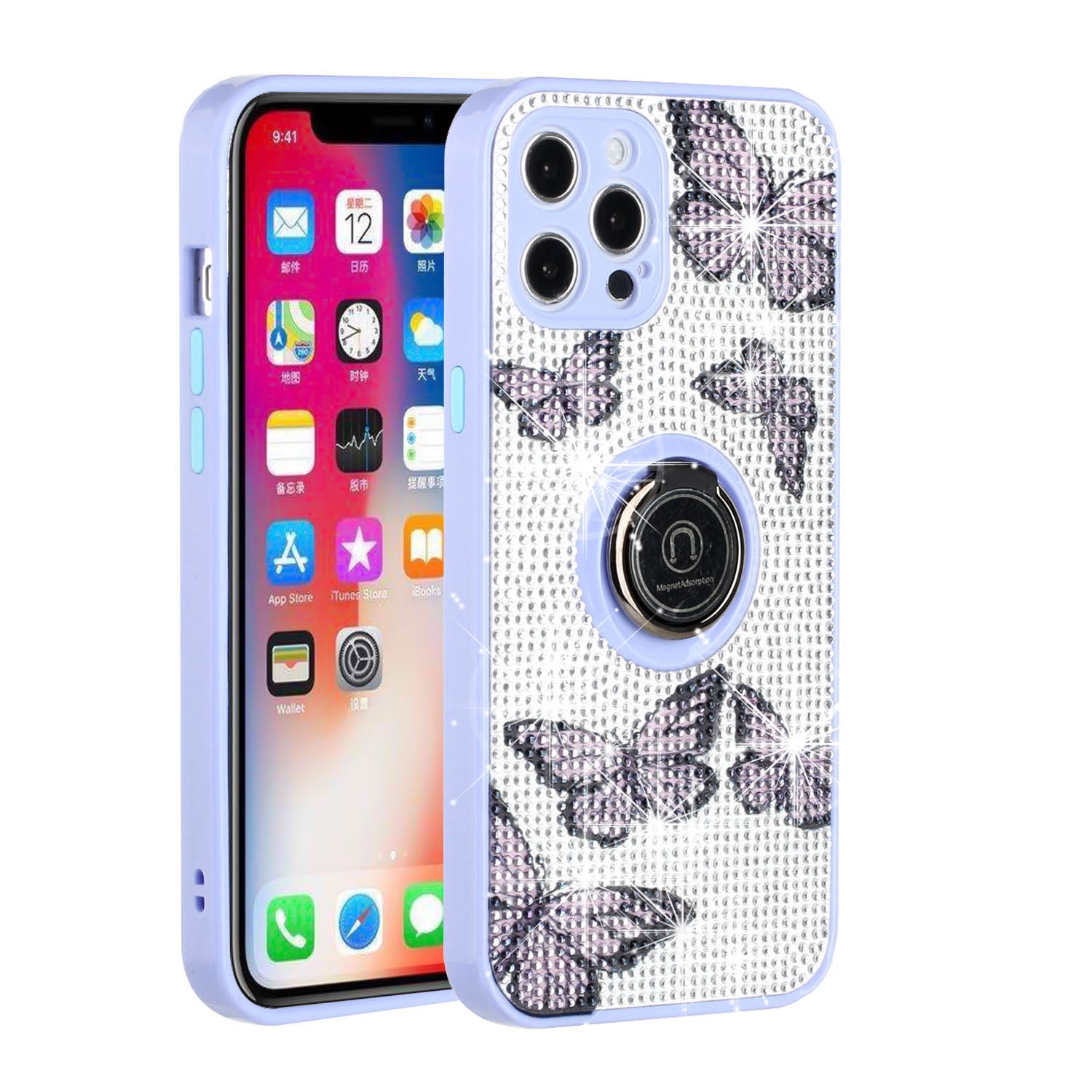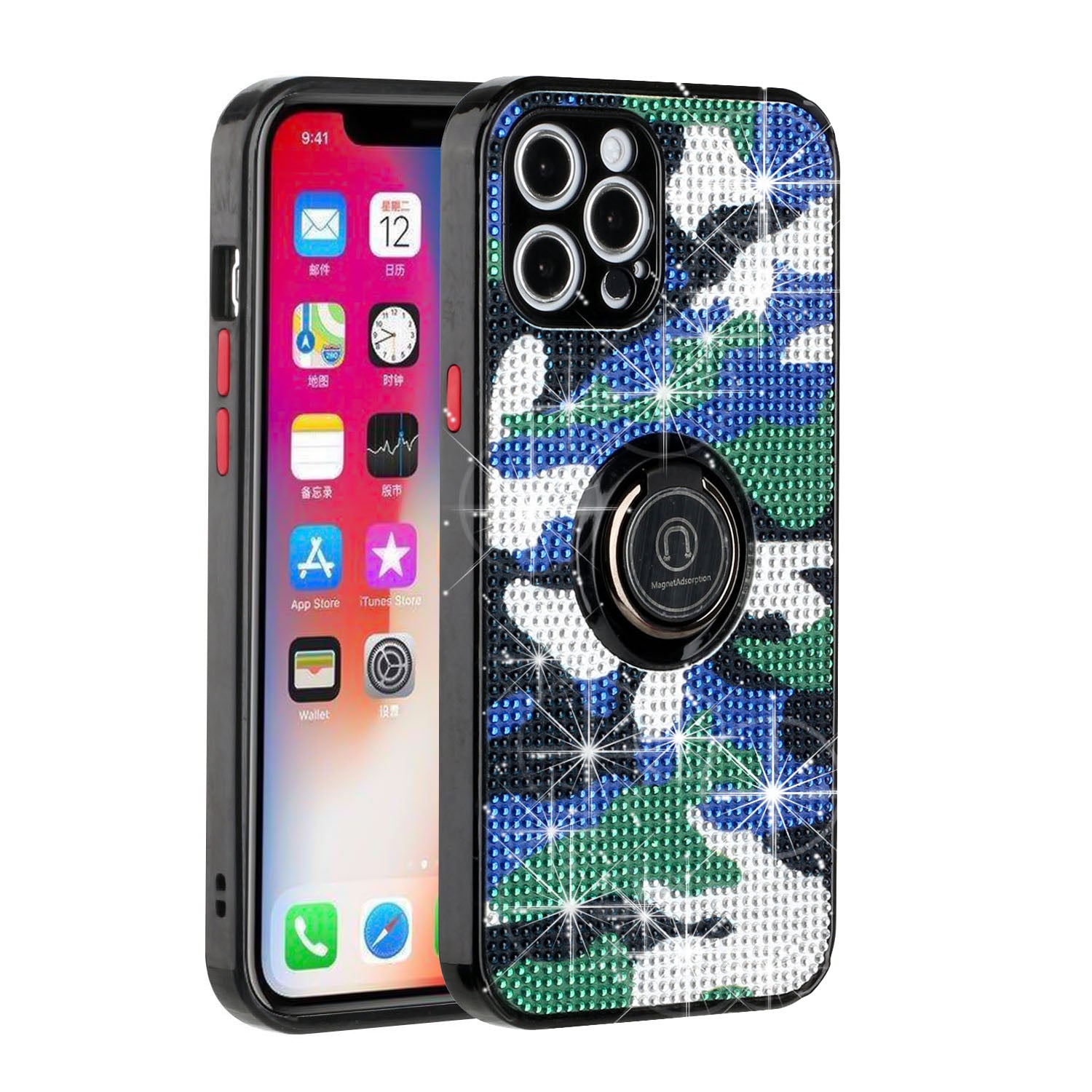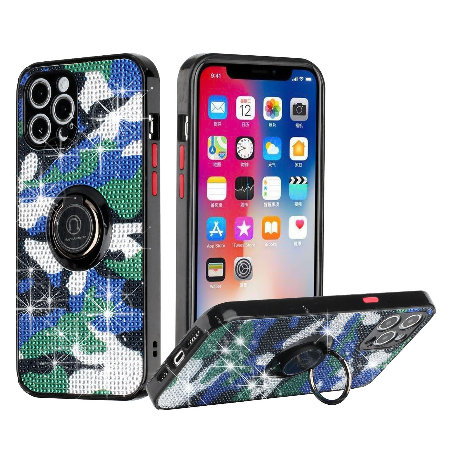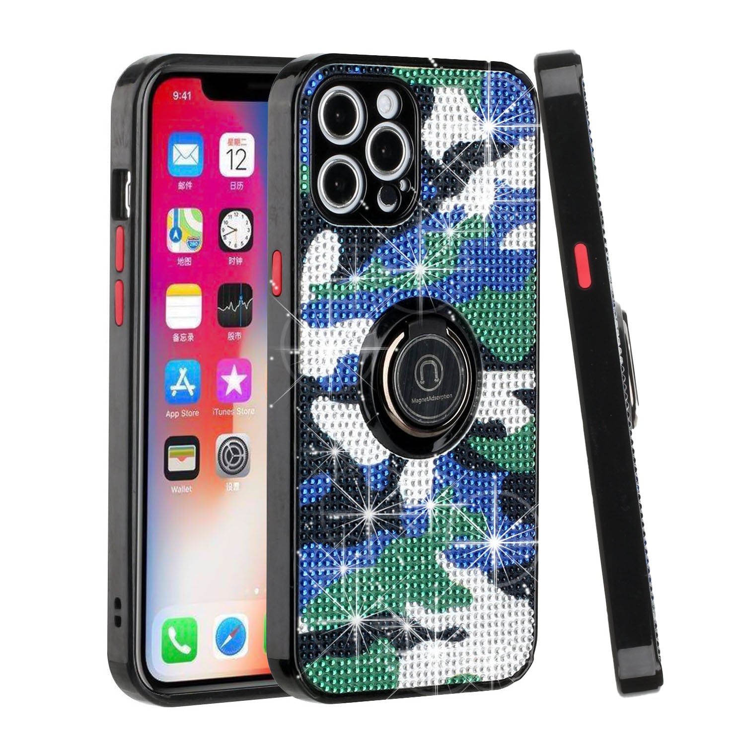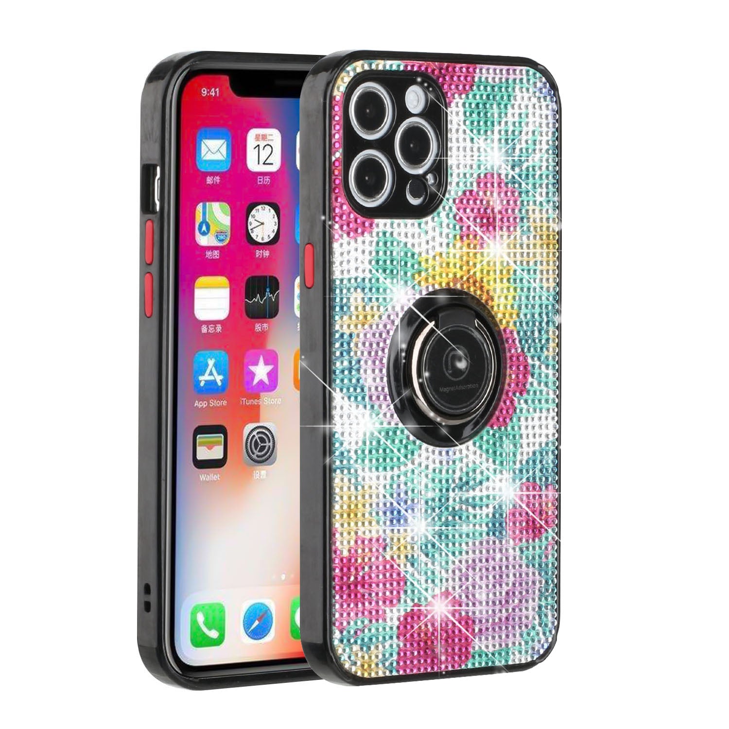 For iPhone 12 Pro Max 6.7 Crystal Diamond Bling Magnetic Ring Stand Case Cover
