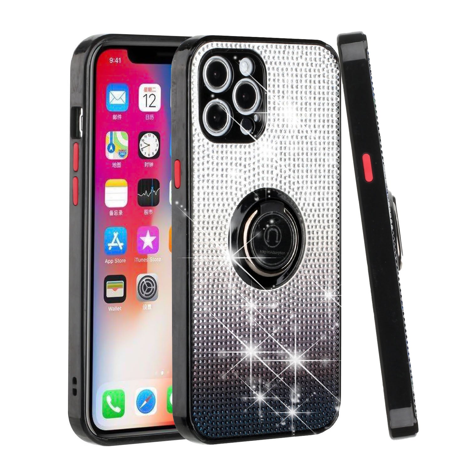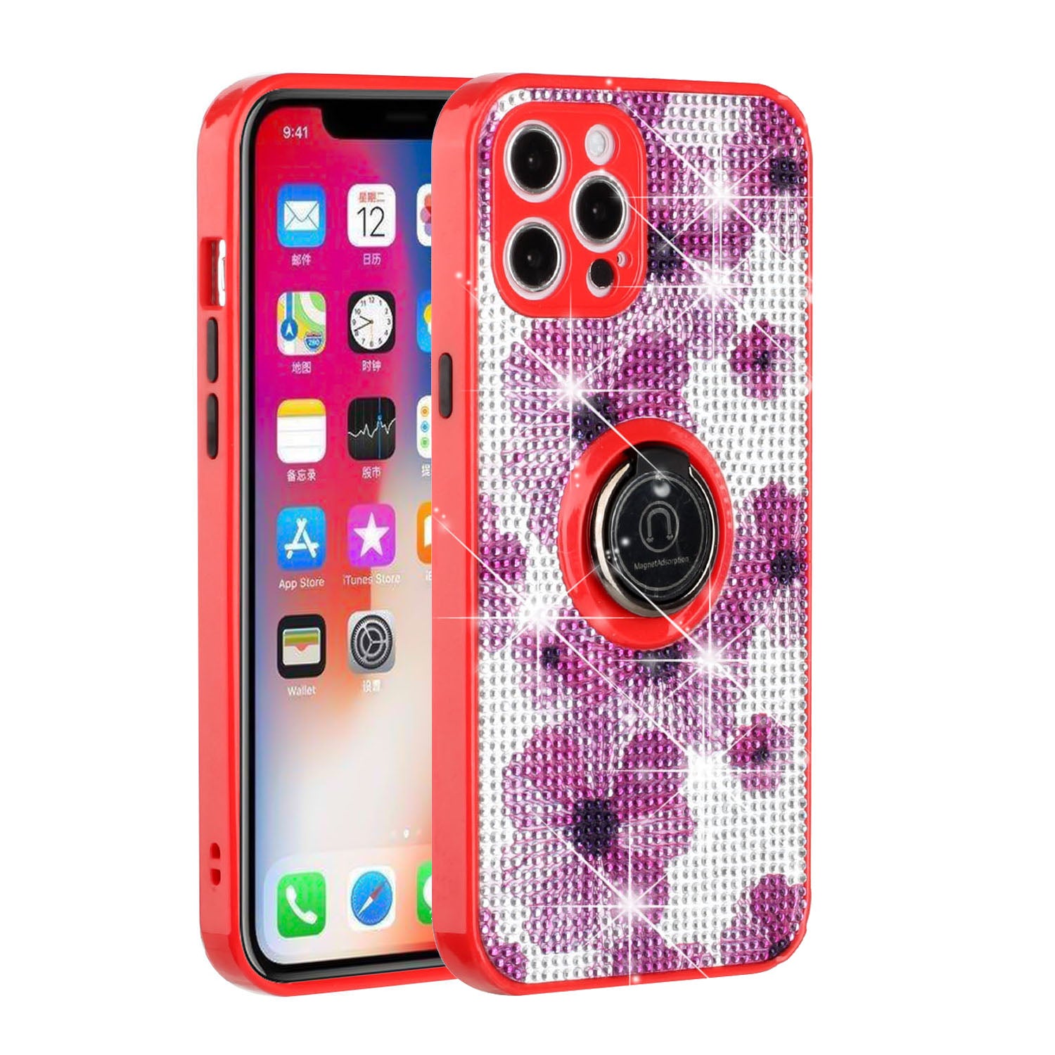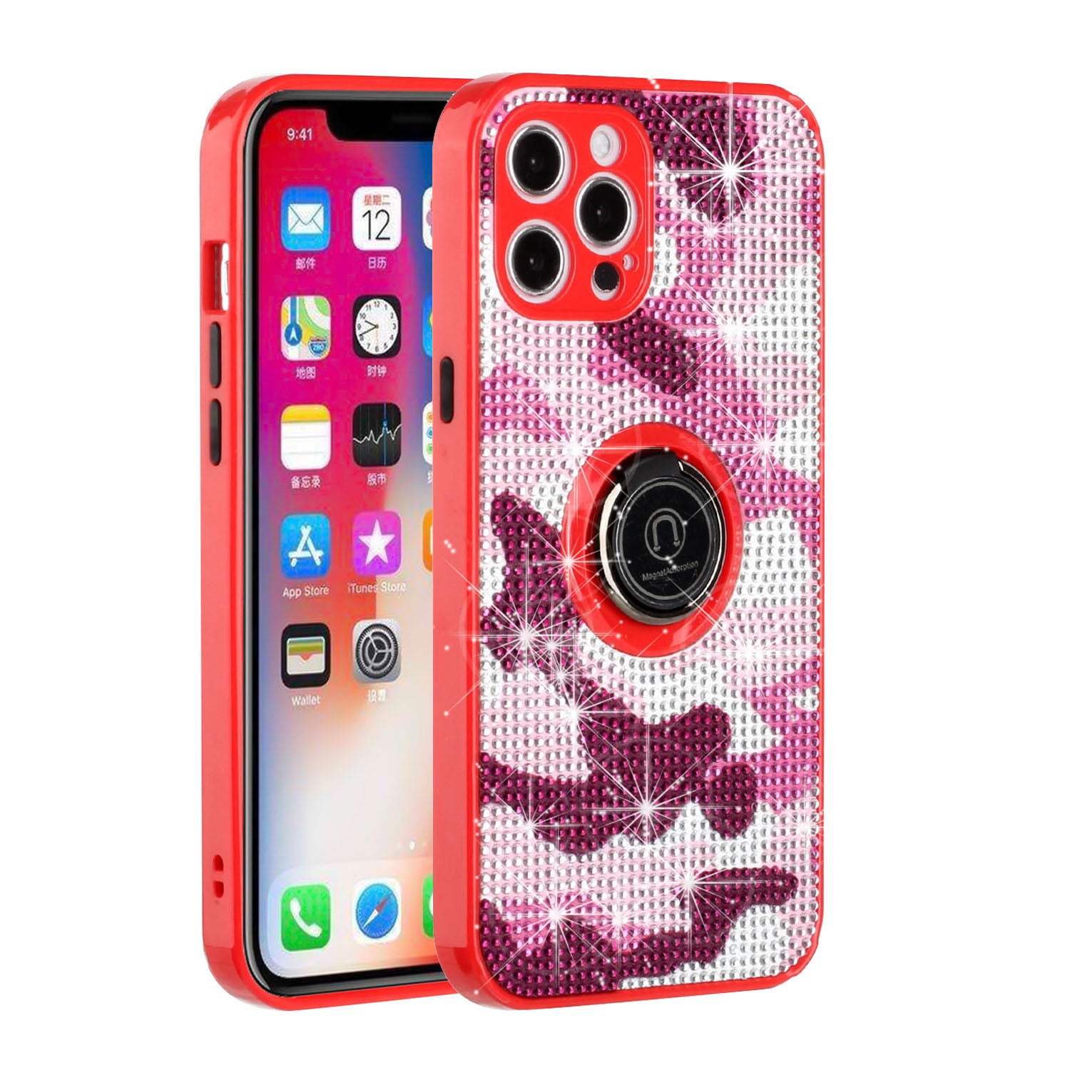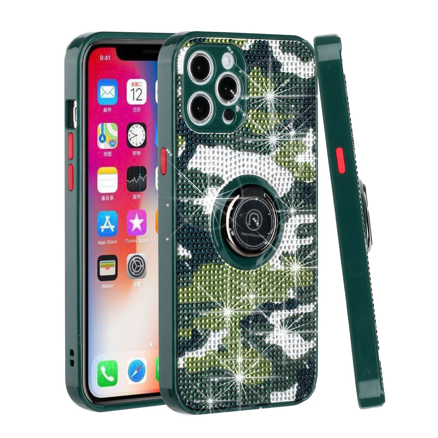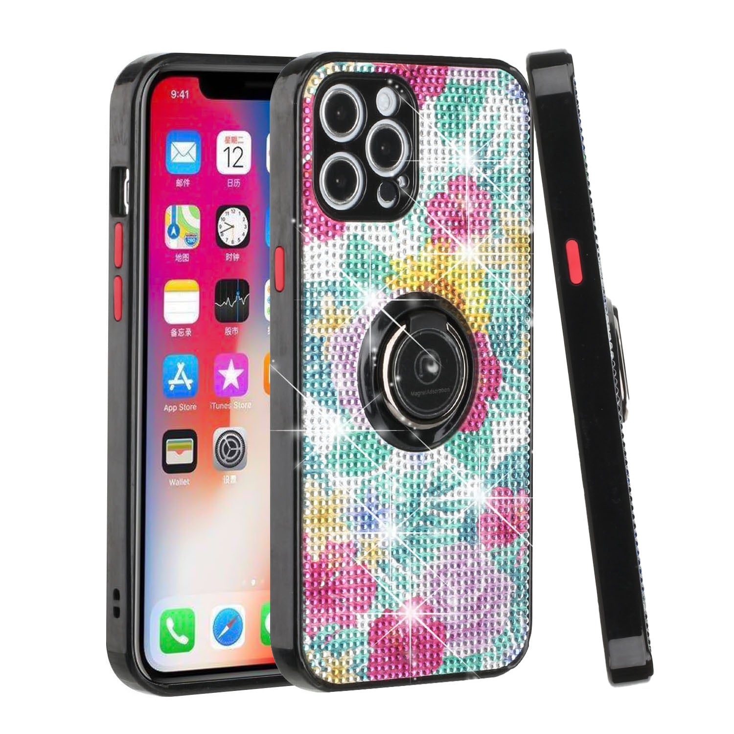 For iPhone 12 Pro Max 6.7 Crystal Diamond Bling Magnetic Ring Stand Case Cover