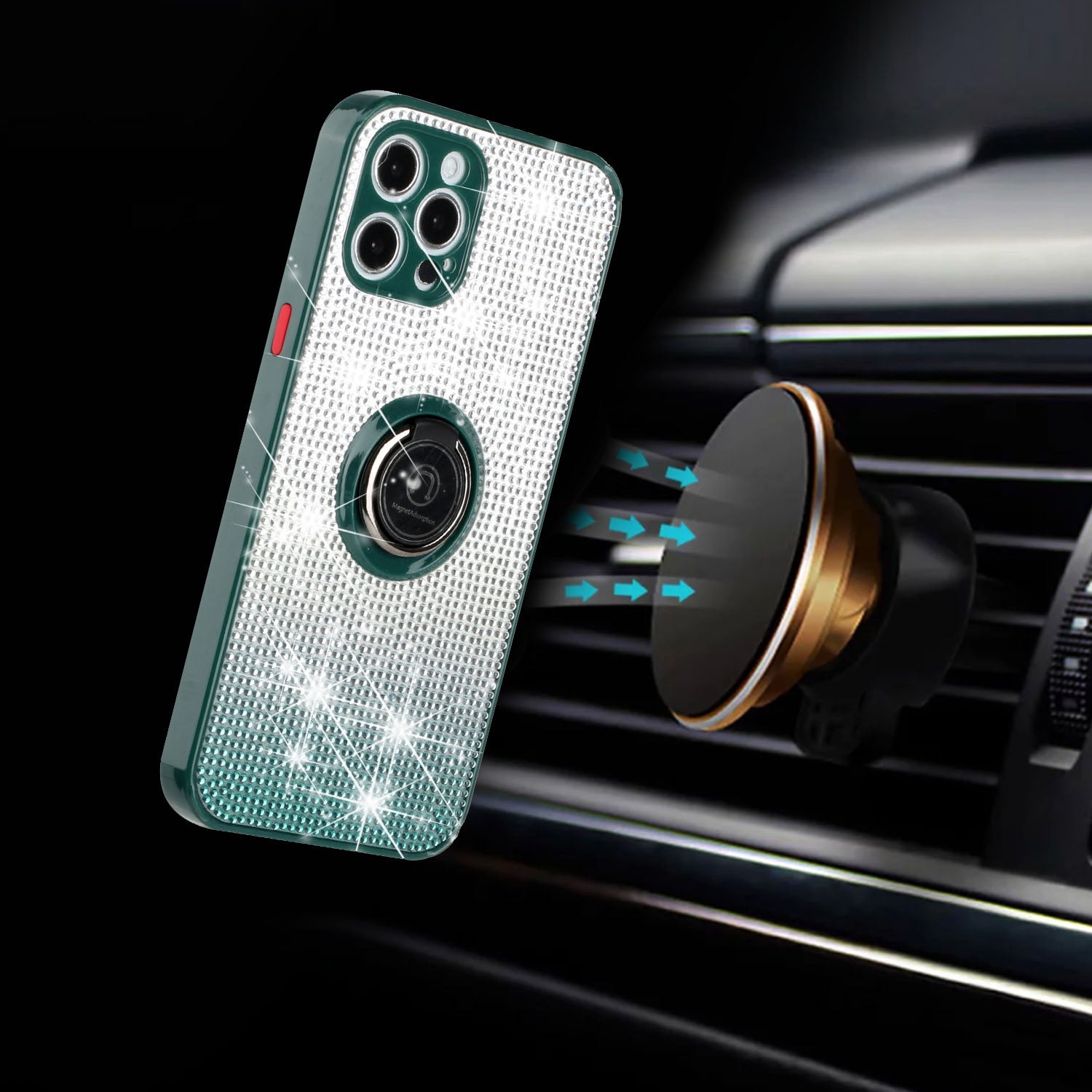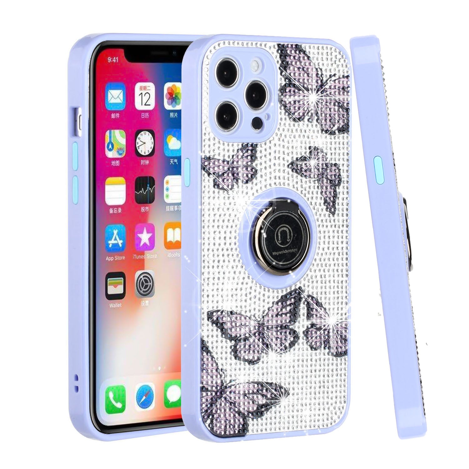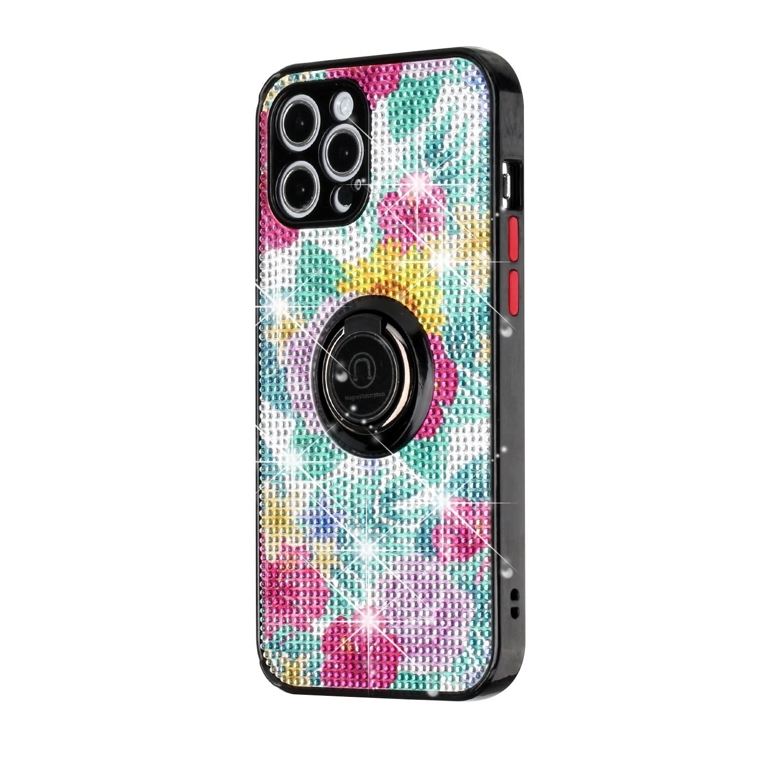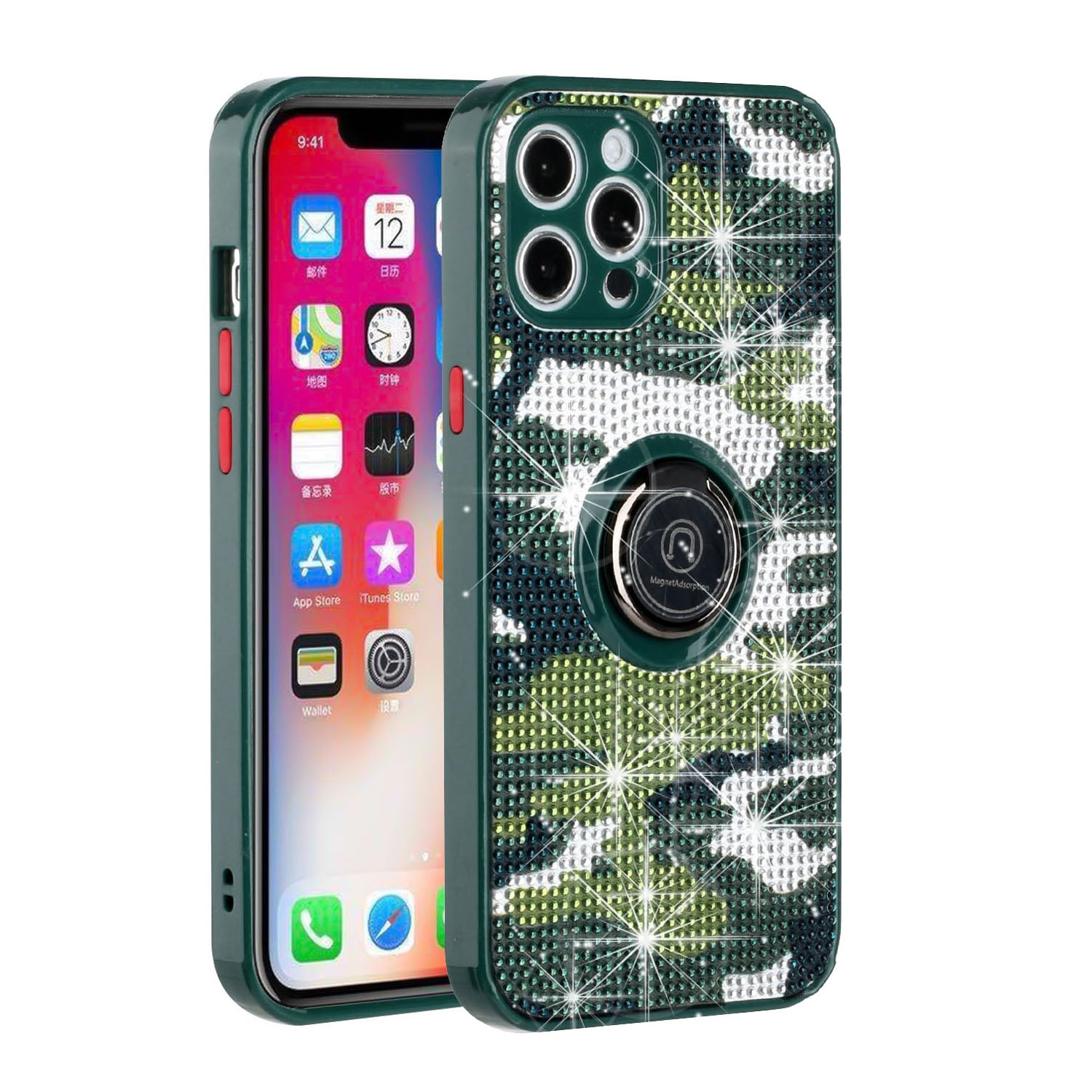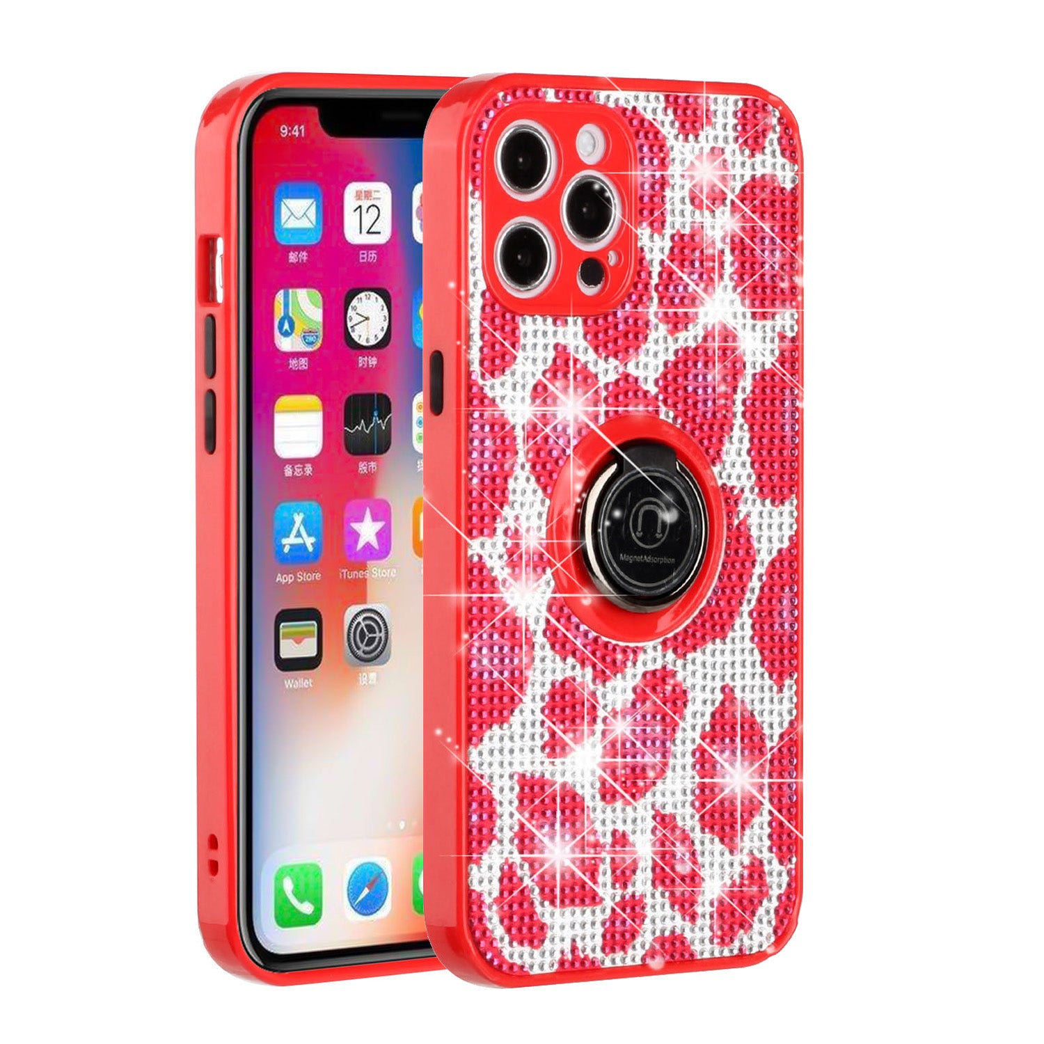 For iPhone 12 Pro Max 6.7 Crystal Diamond Bling Magnetic Ring Stand Case Cover