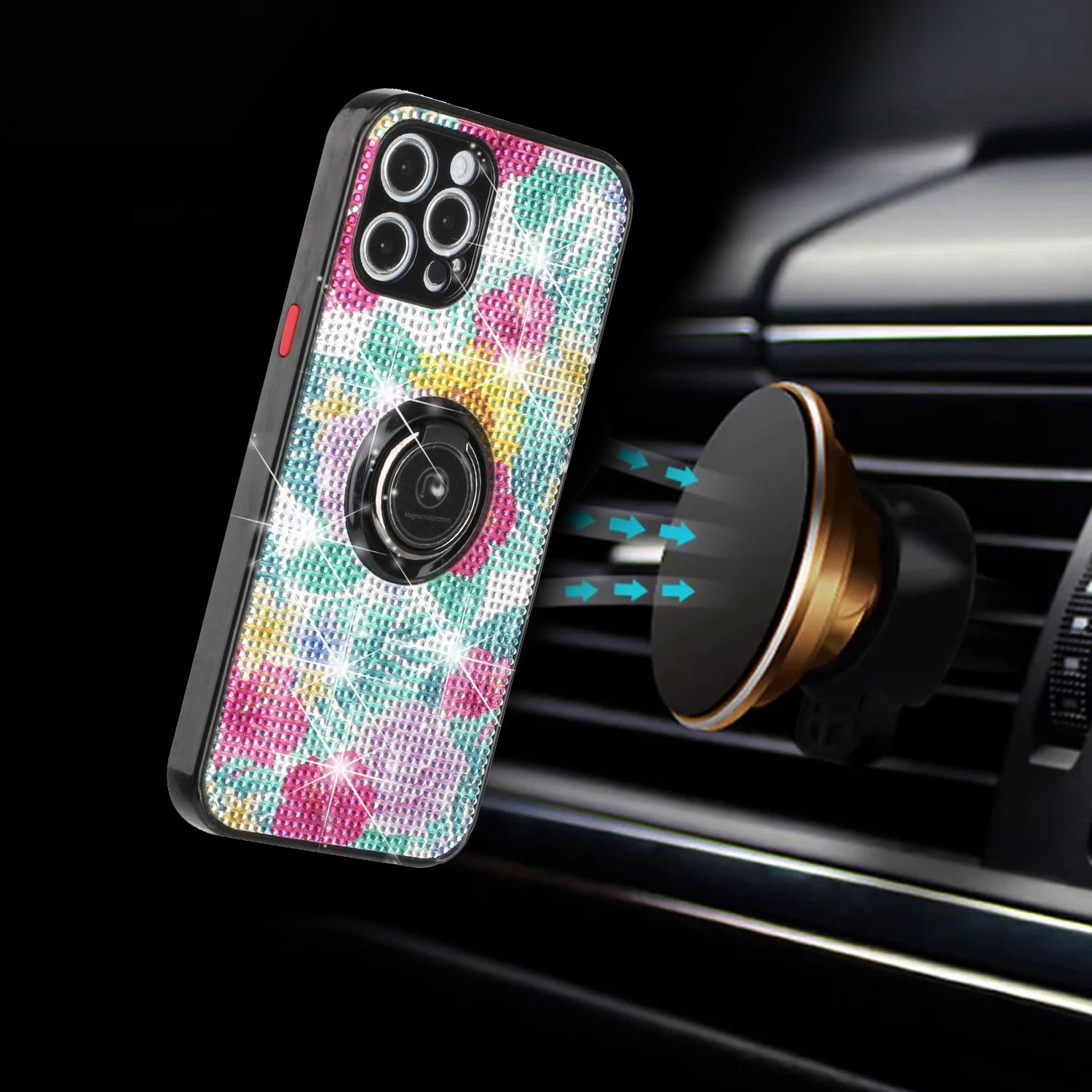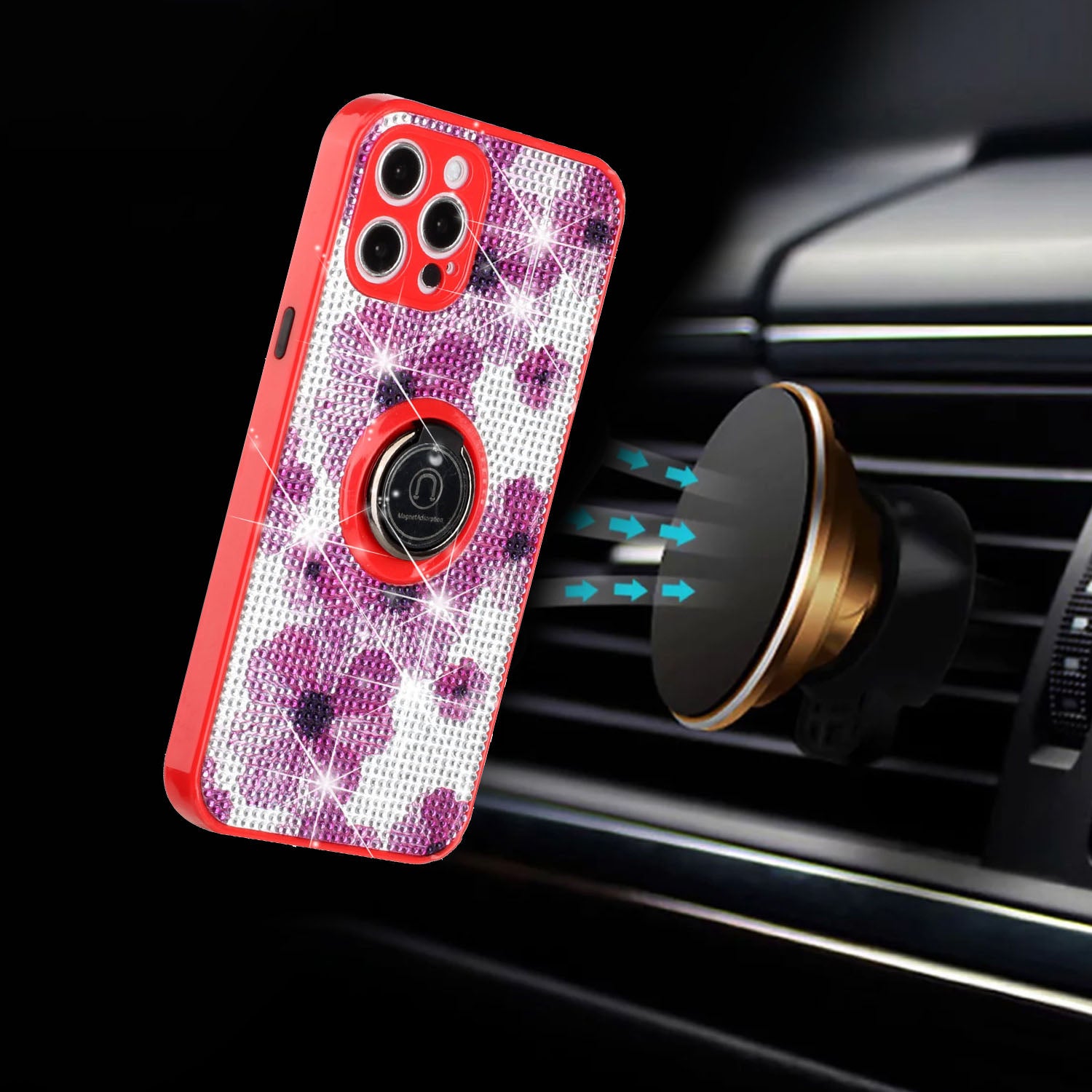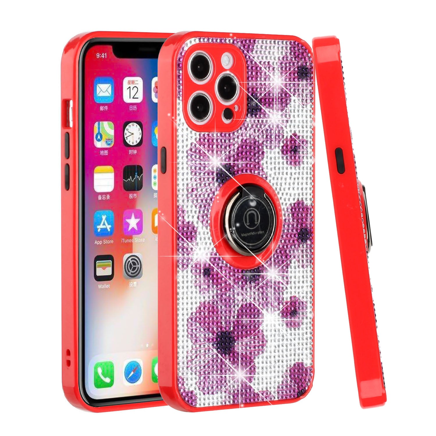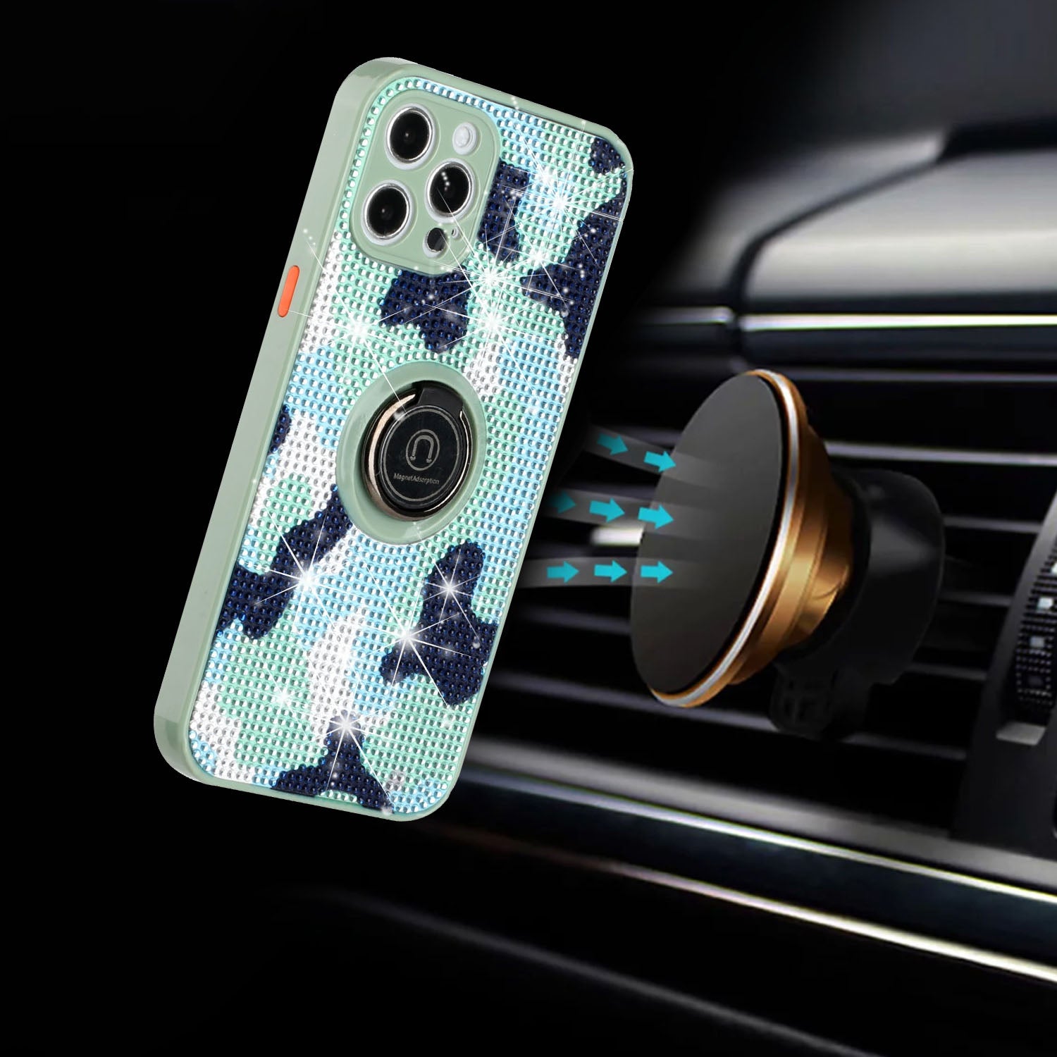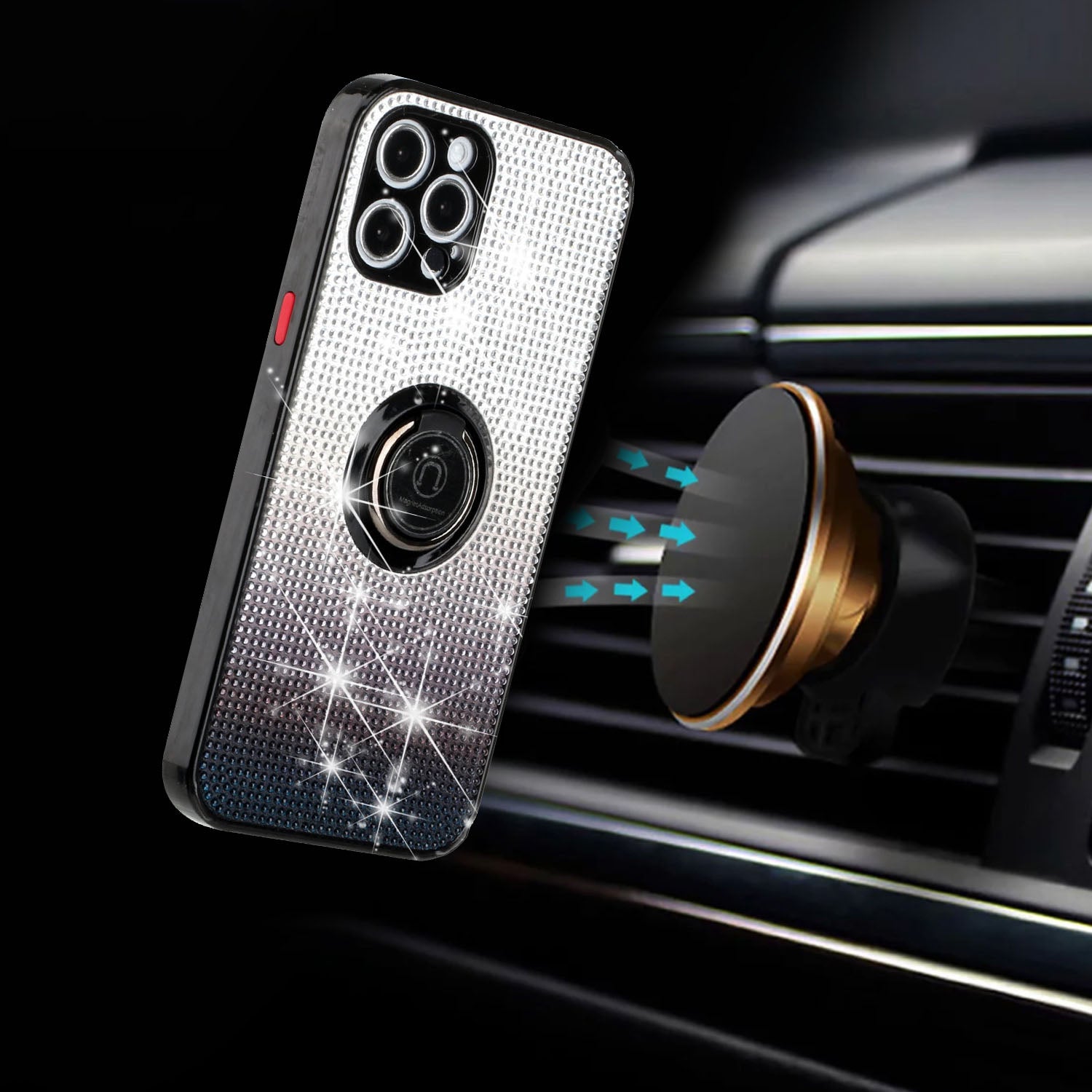 For iPhone 12 Pro Max 6.7 Crystal Diamond Bling Magnetic Ring Stand Case Cover