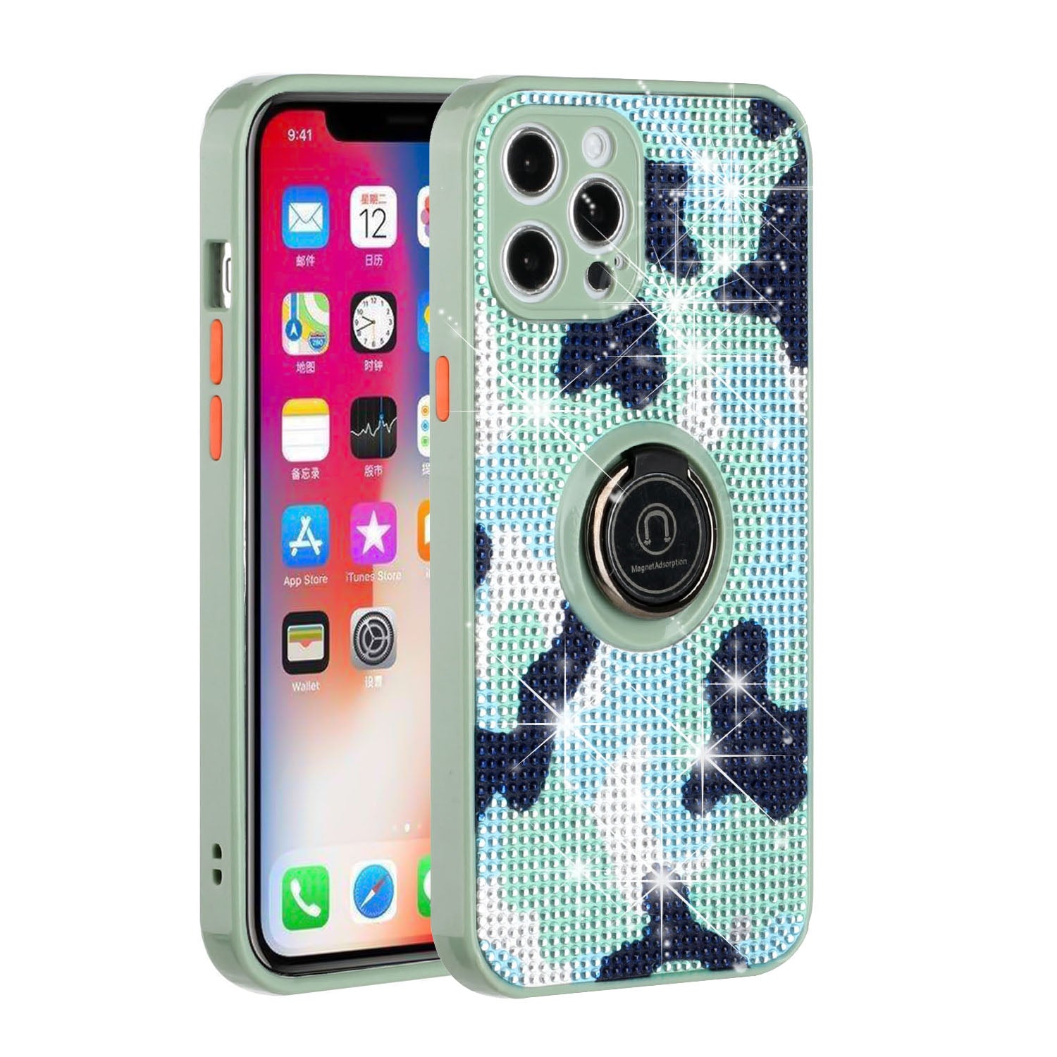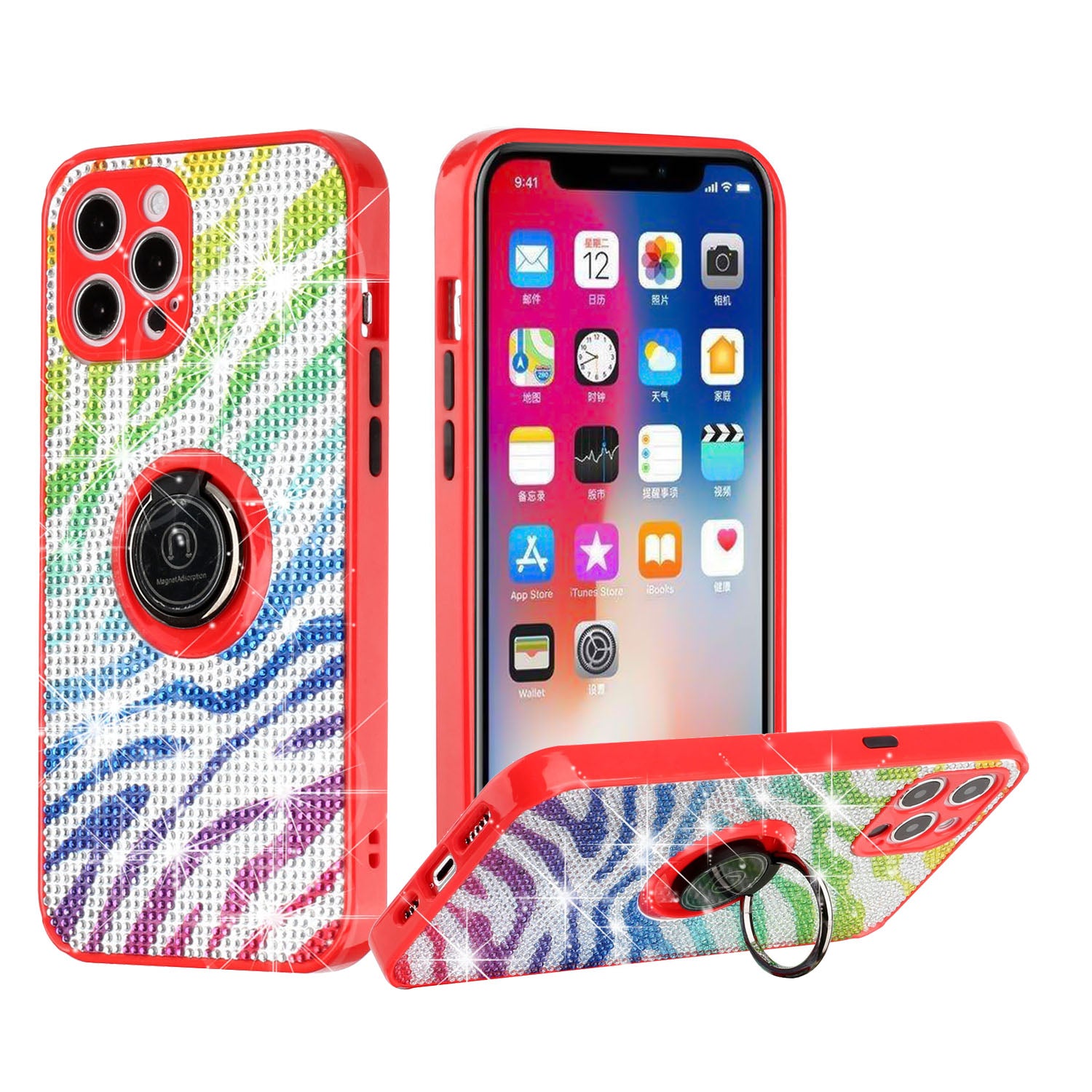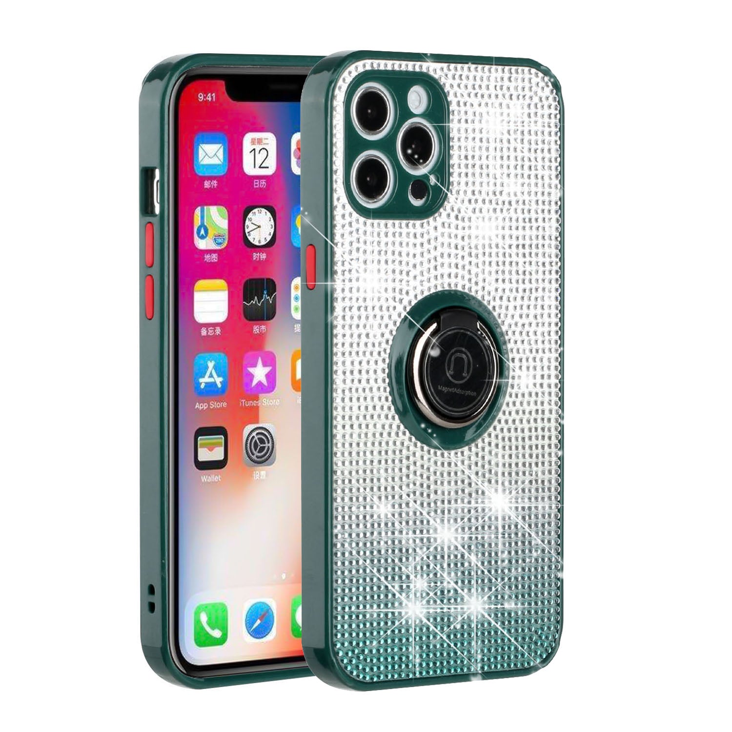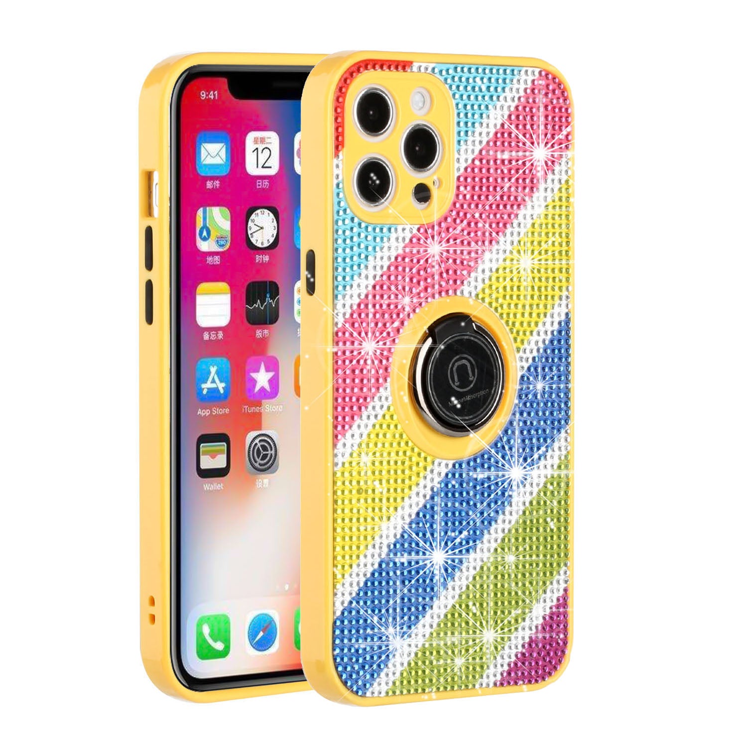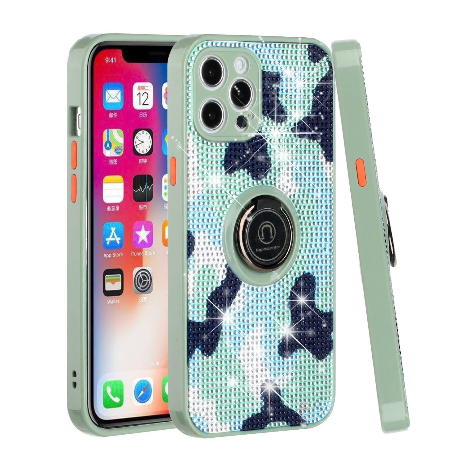 For iPhone 12 Pro Max 6.7 Crystal Diamond Bling Magnetic Ring Stand Case Cover