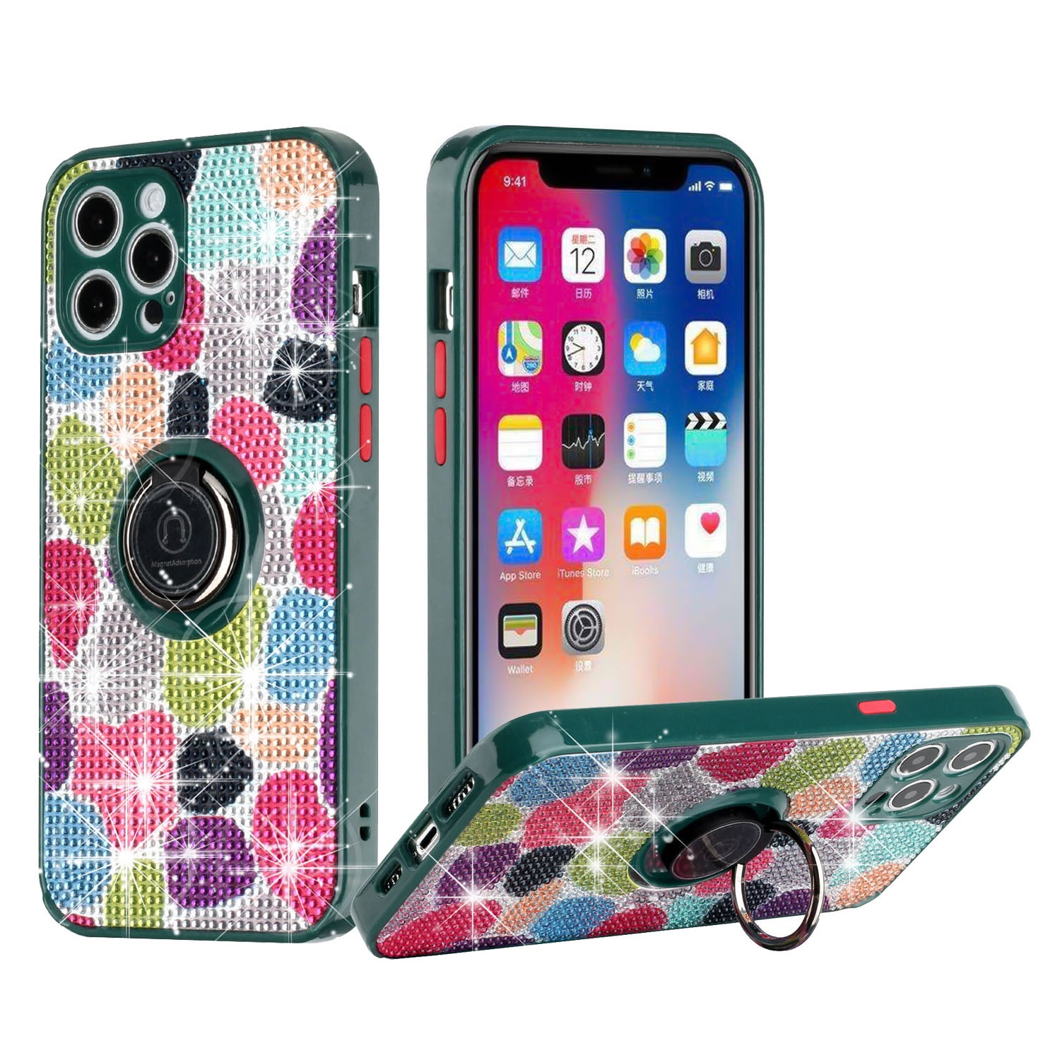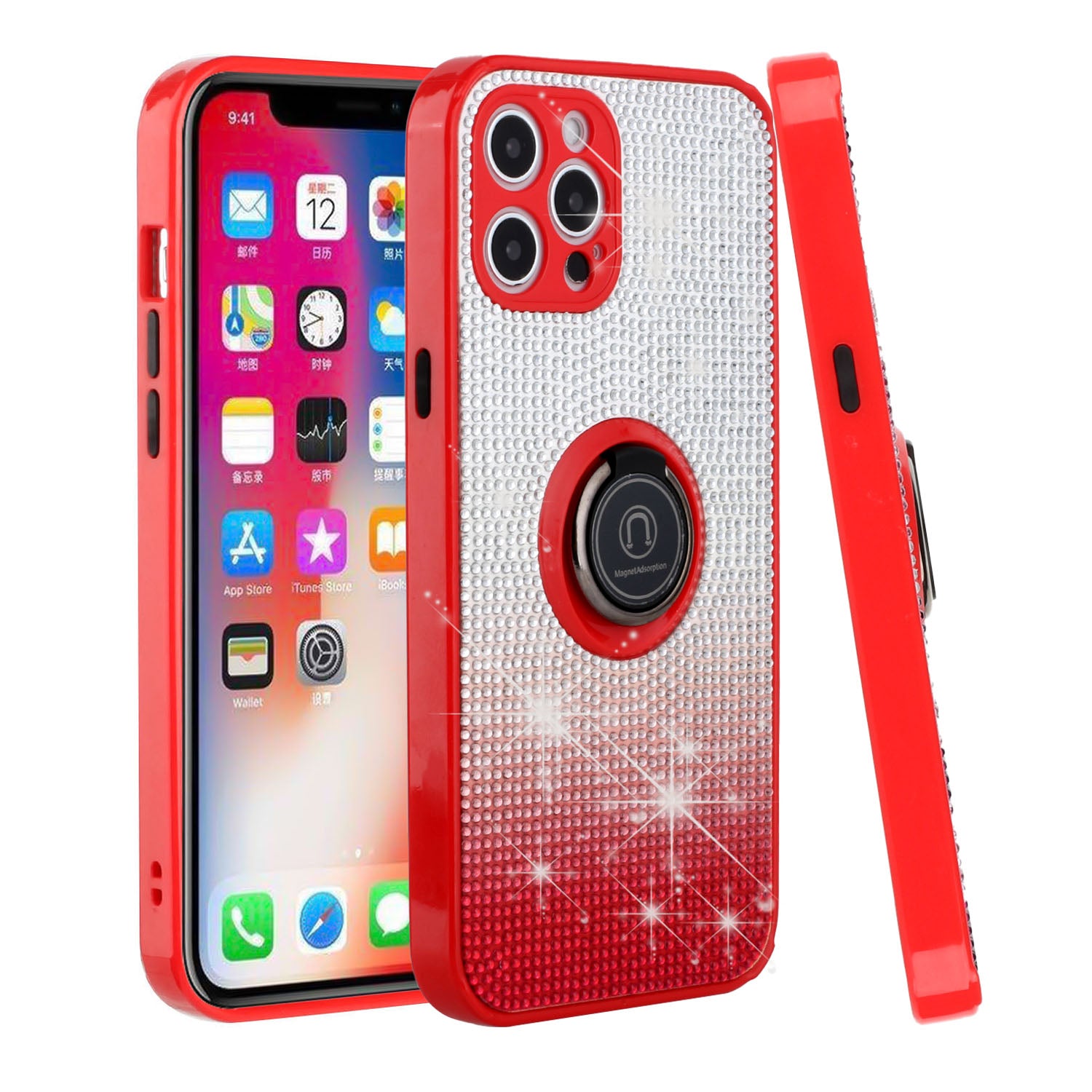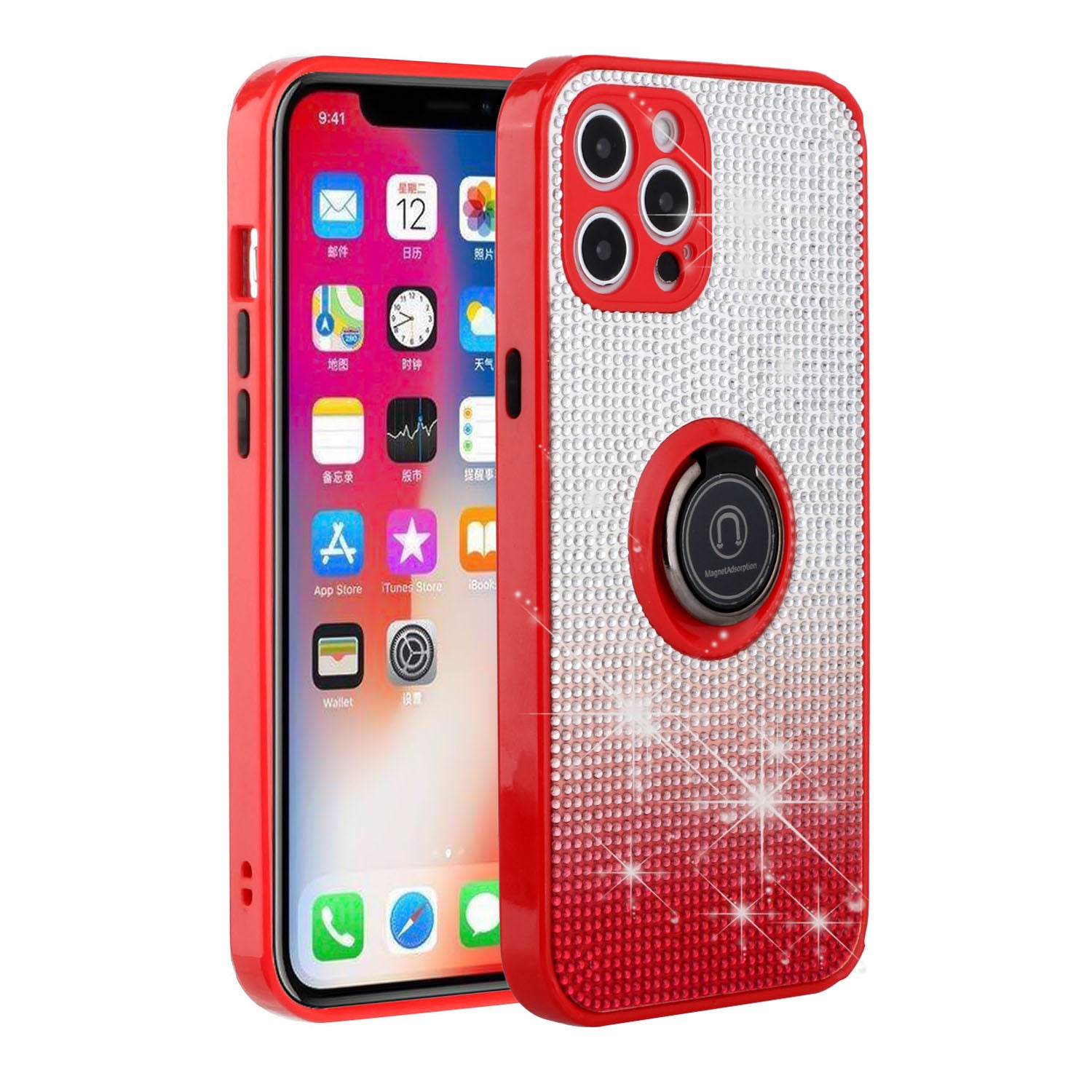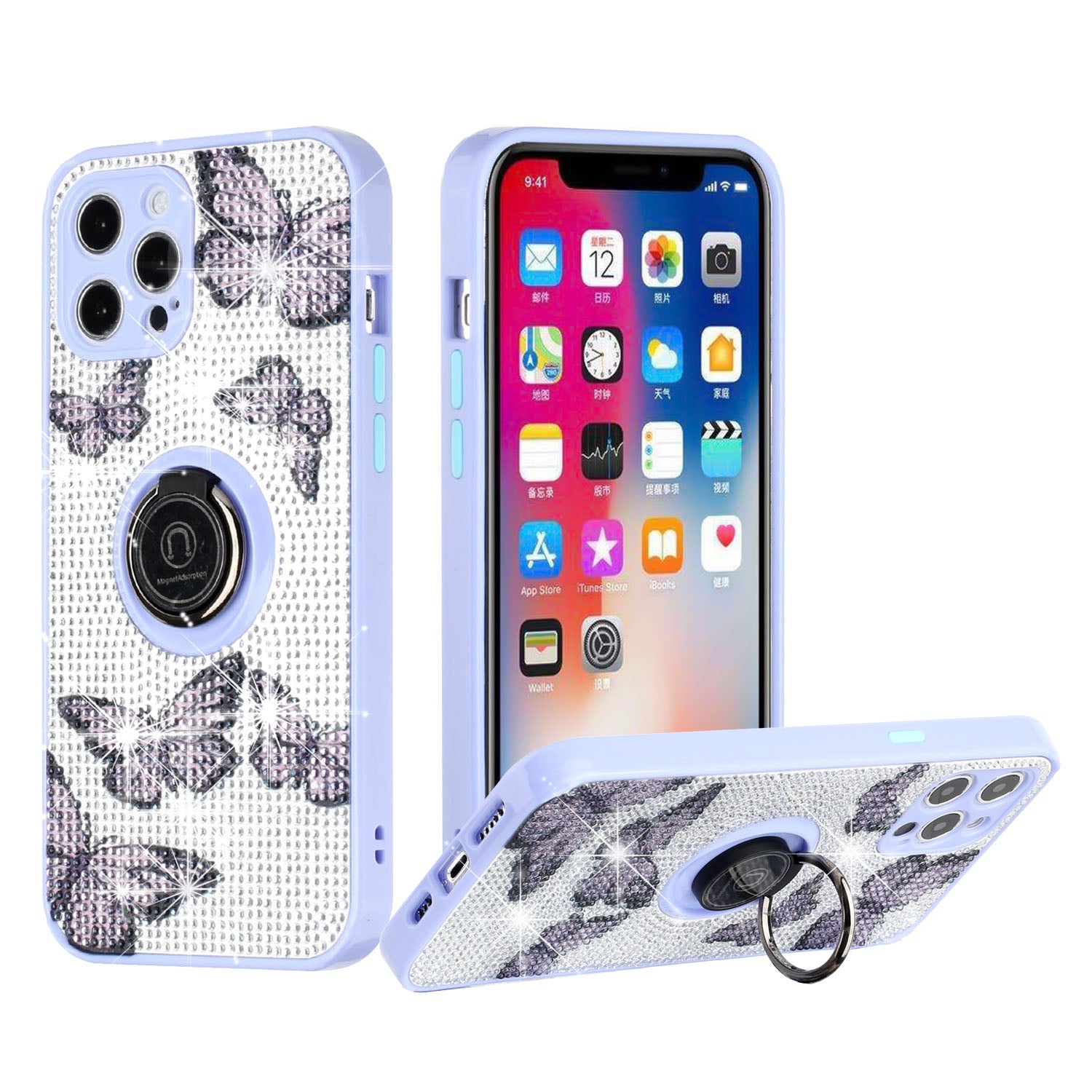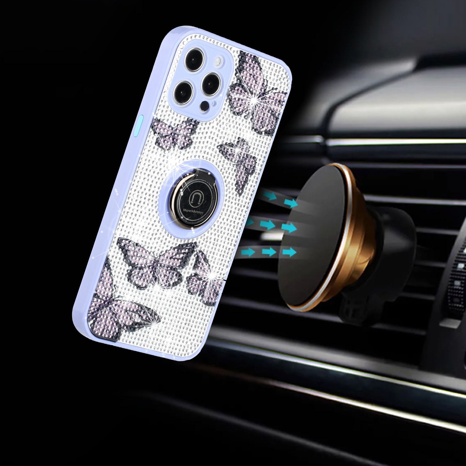 For iPhone 12 Pro Max 6.7 Crystal Diamond Bling Magnetic Ring Stand Case Cover