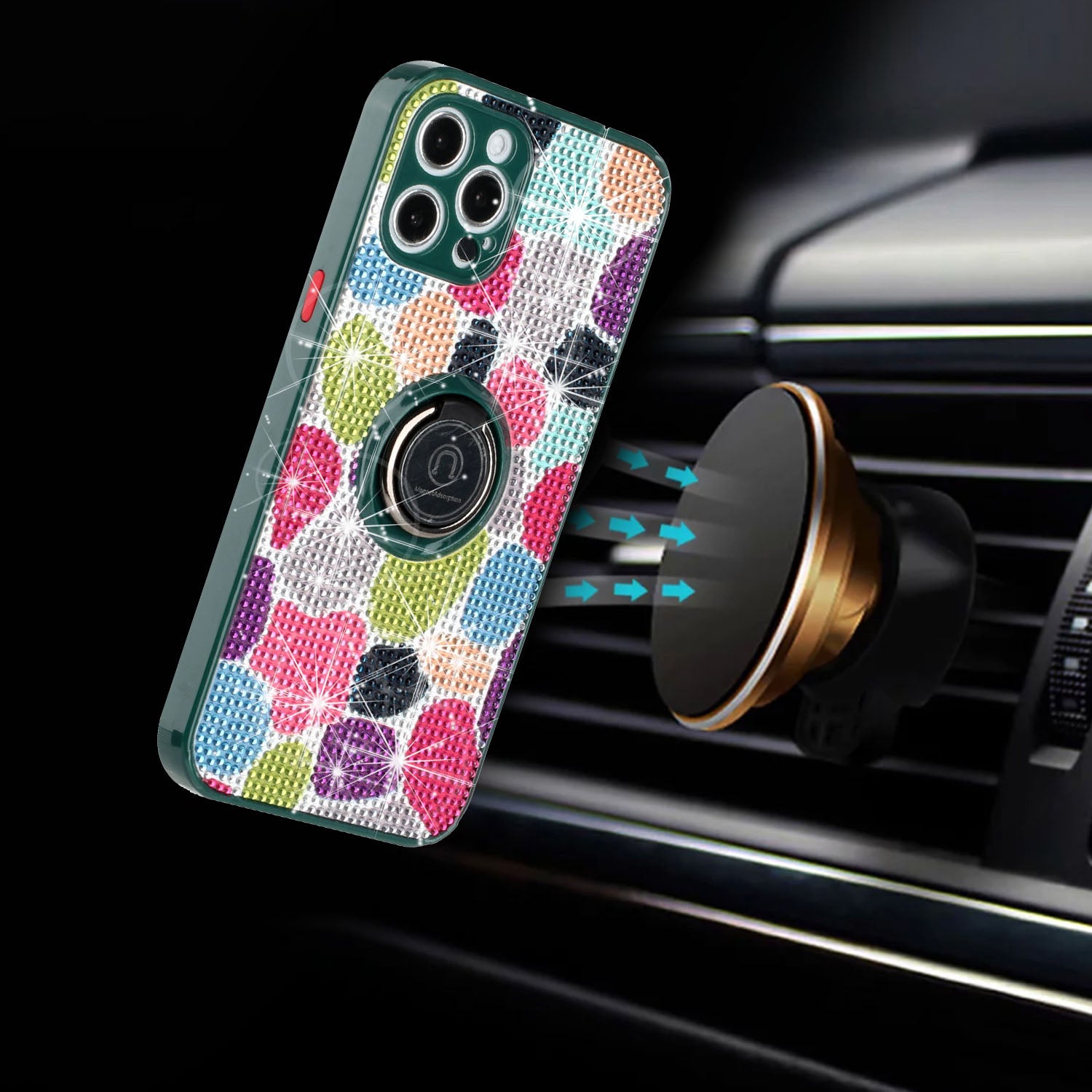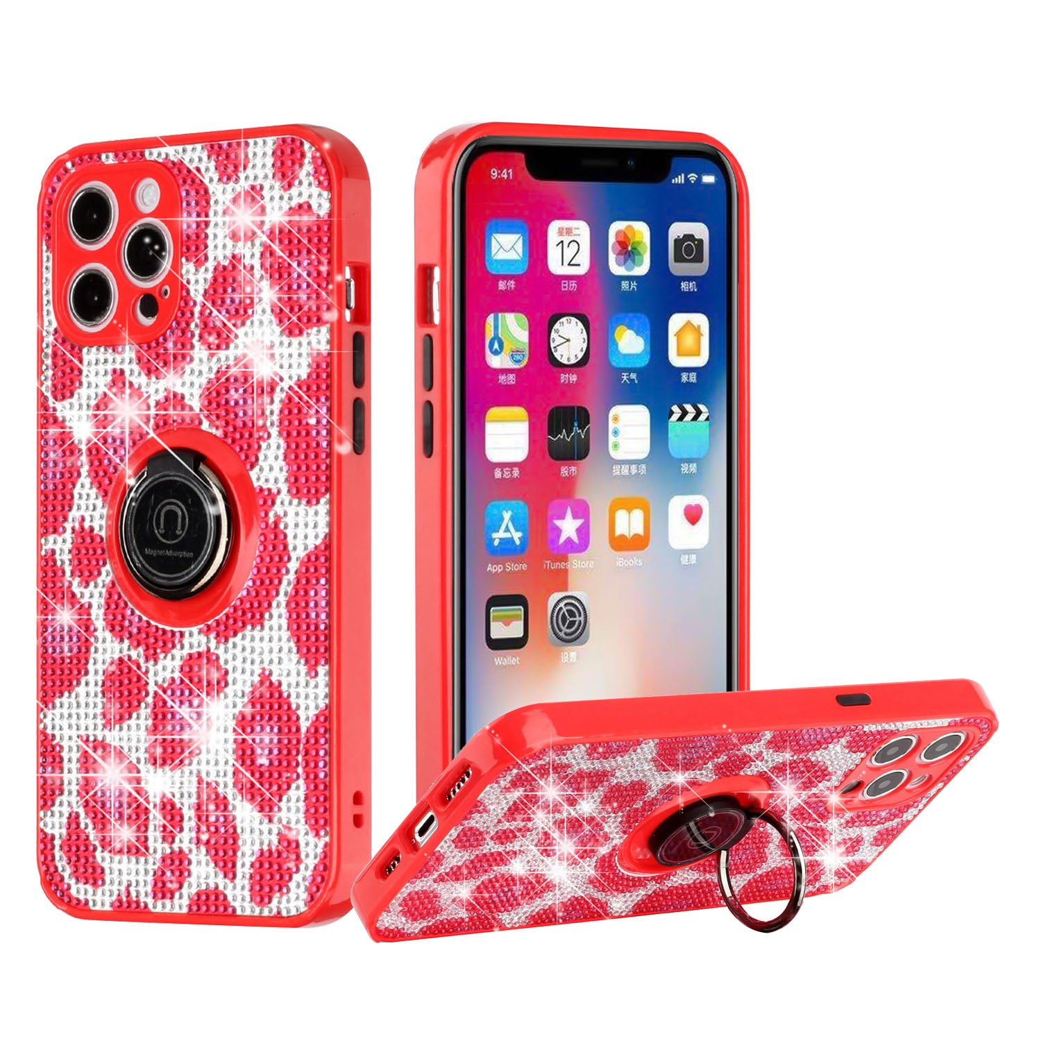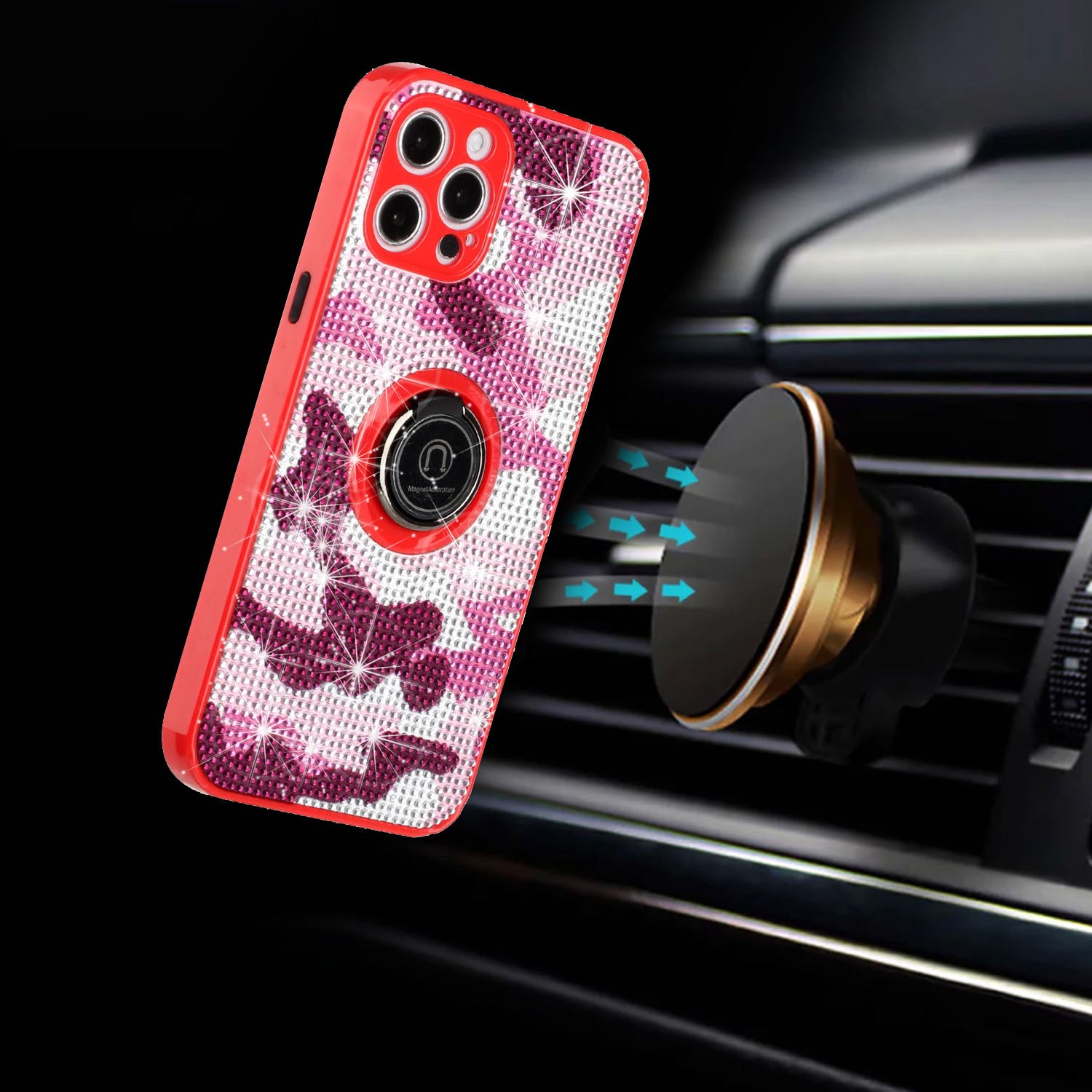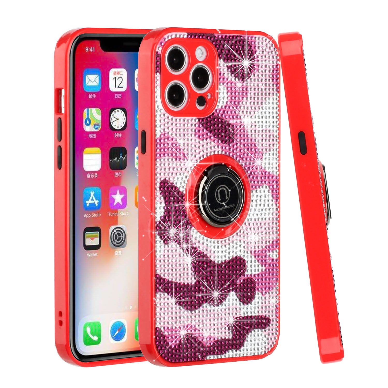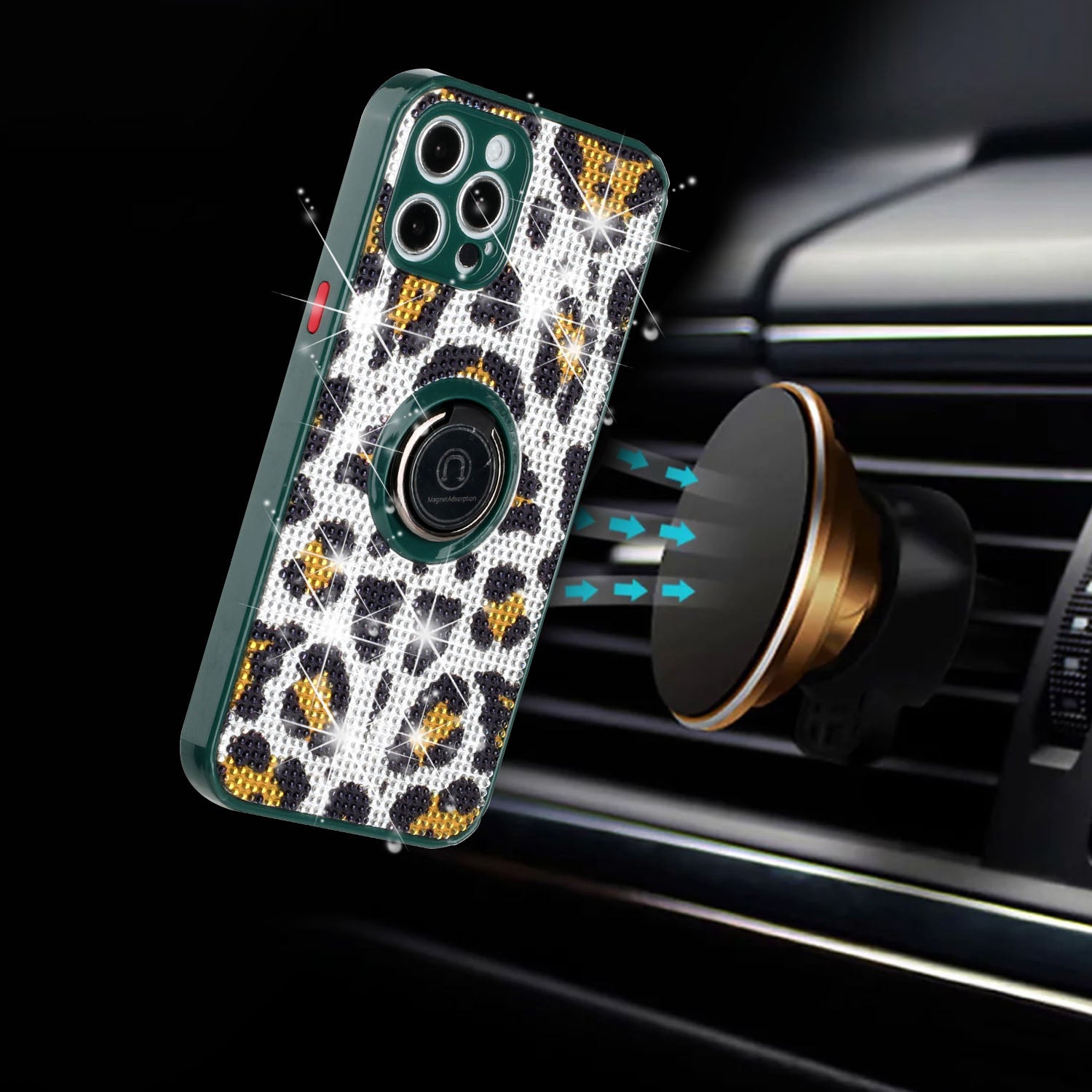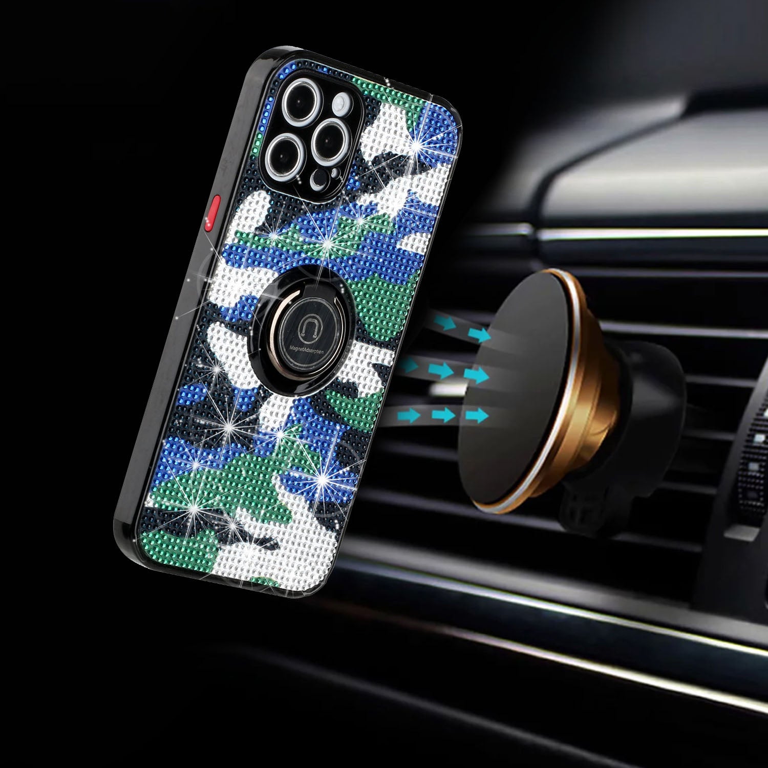 For iPhone 12 Pro Max 6.7 Crystal Diamond Bling Magnetic Ring Stand Case Cover
