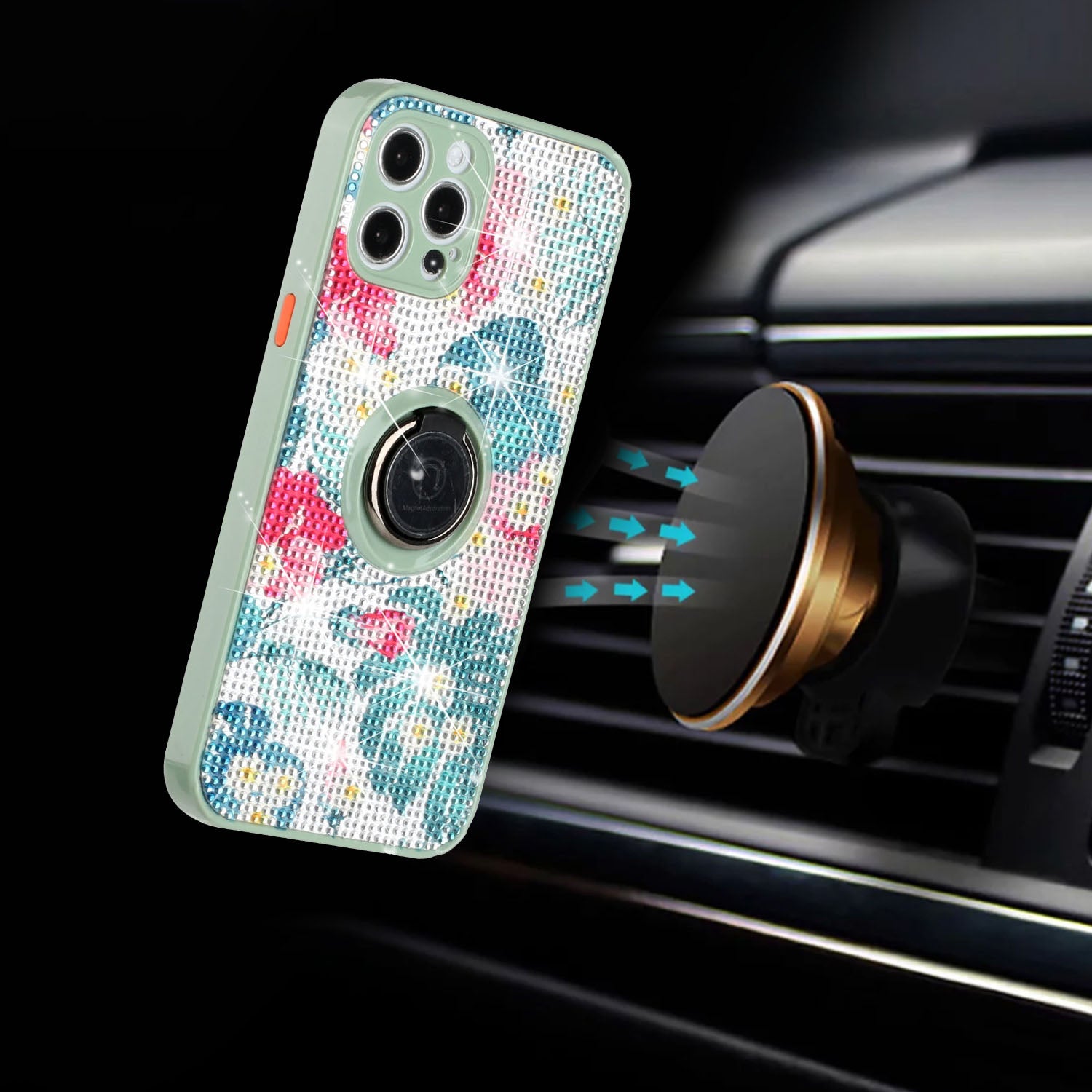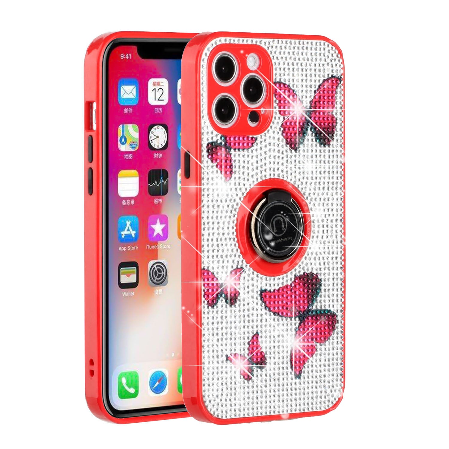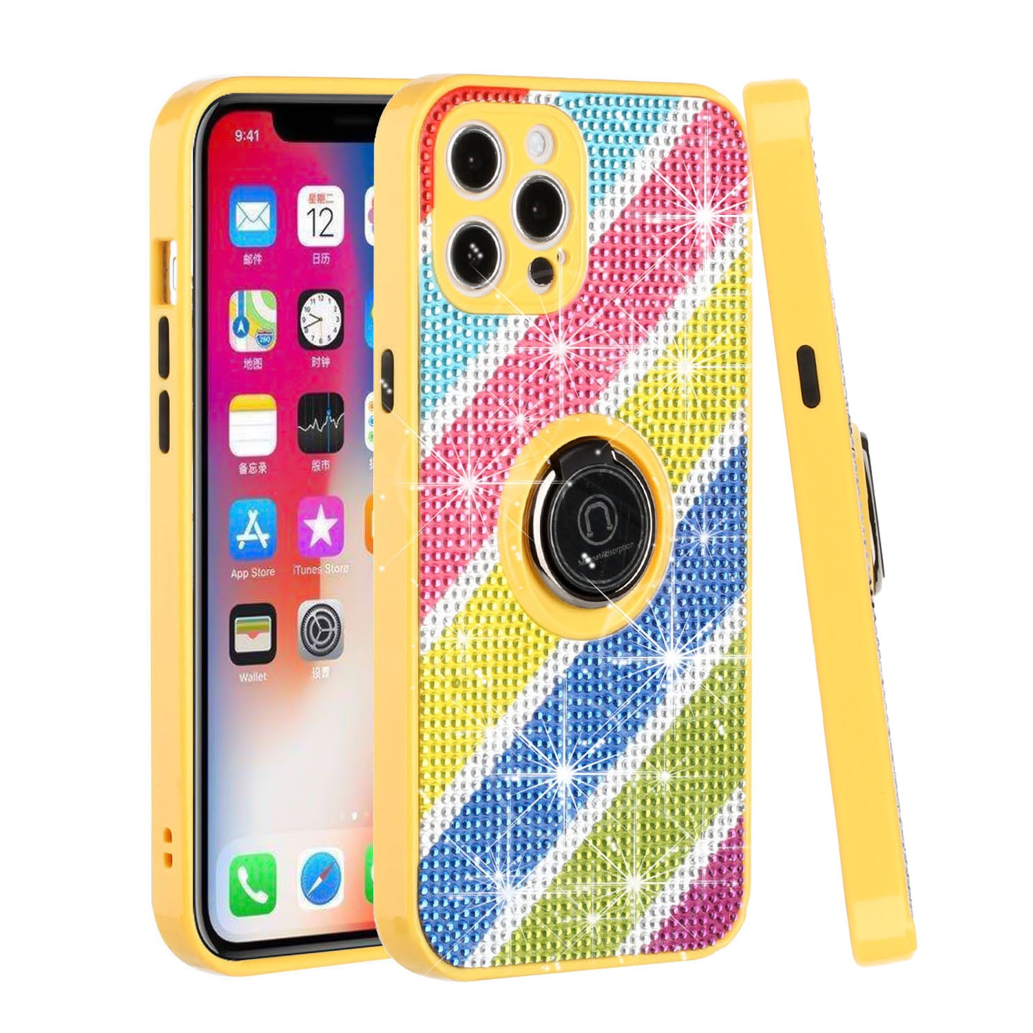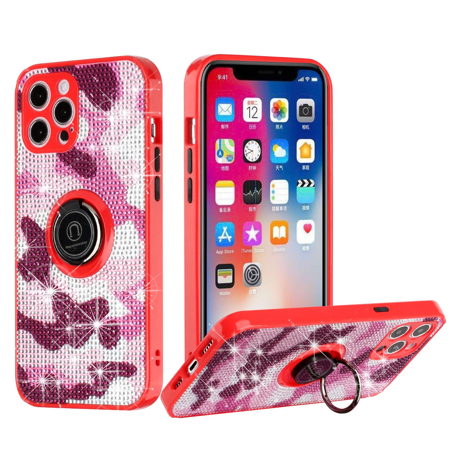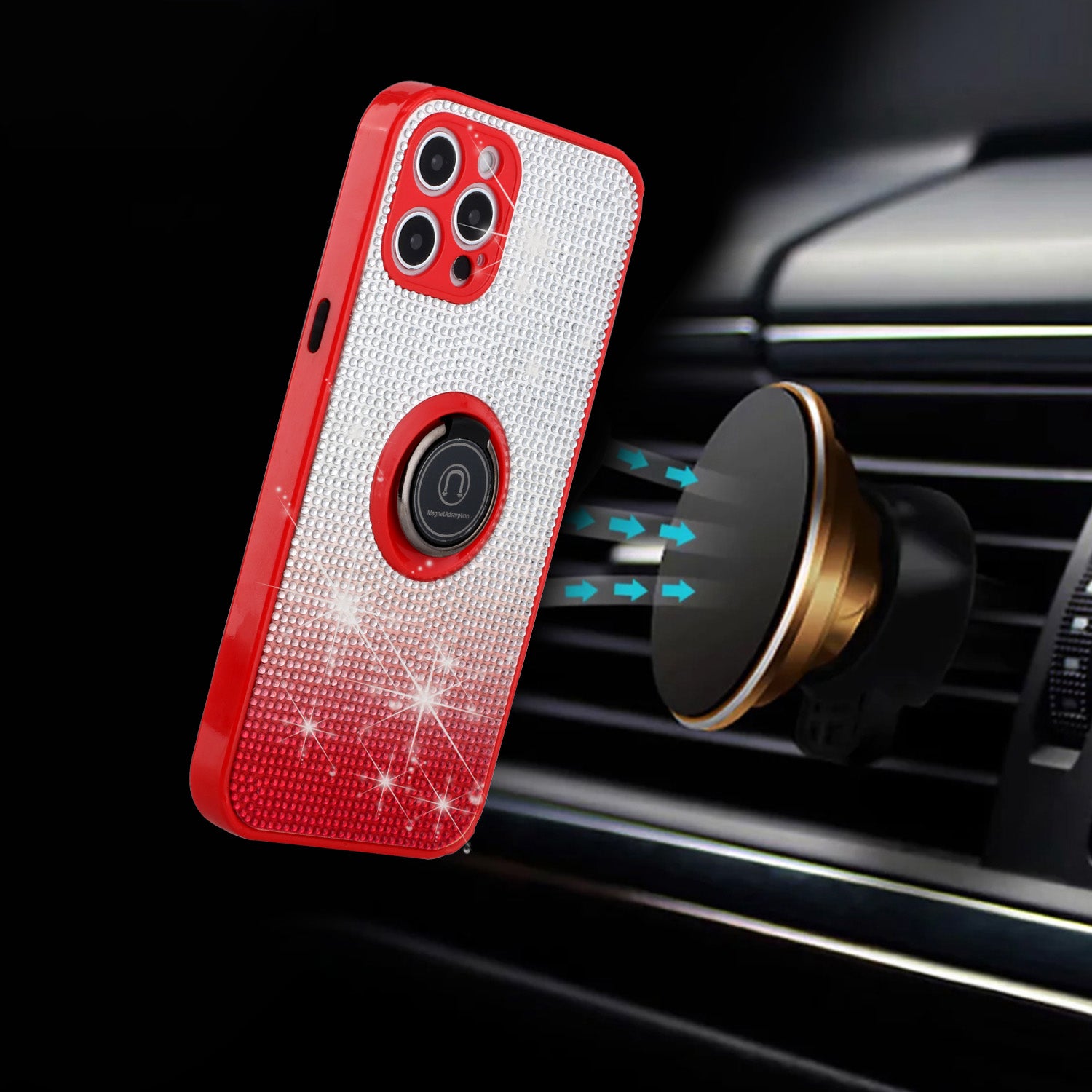 For iPhone 12 Pro Max 6.7 Crystal Diamond Bling Magnetic Ring Stand Case Cover