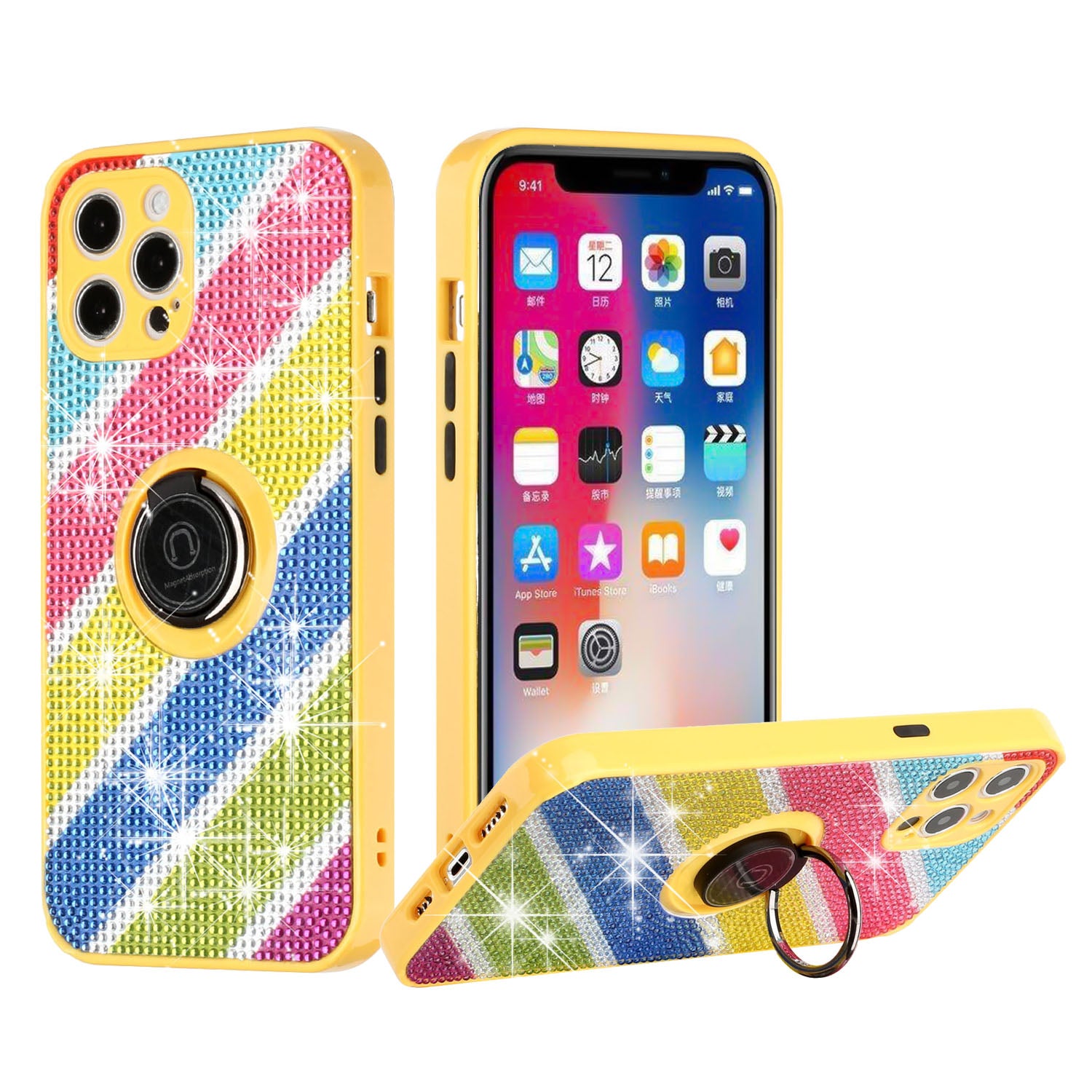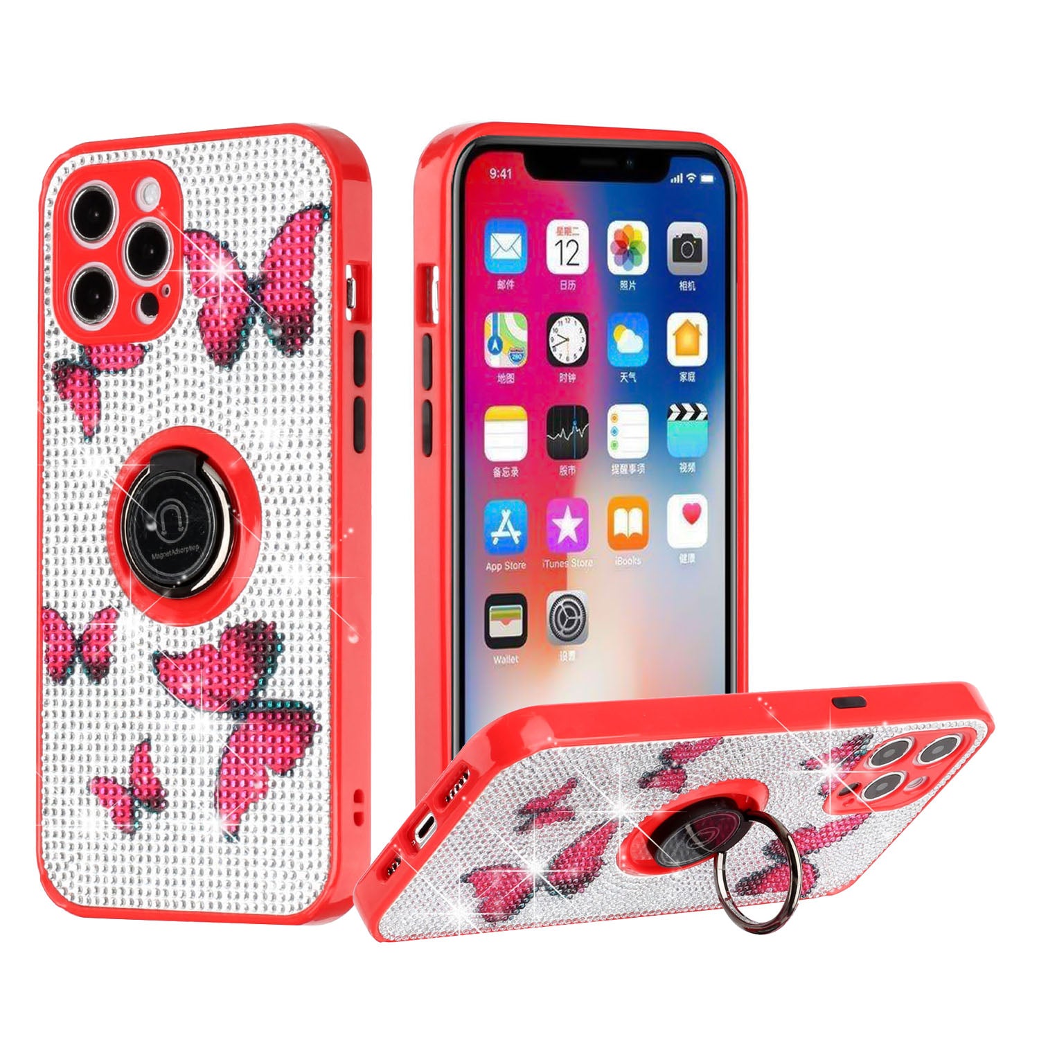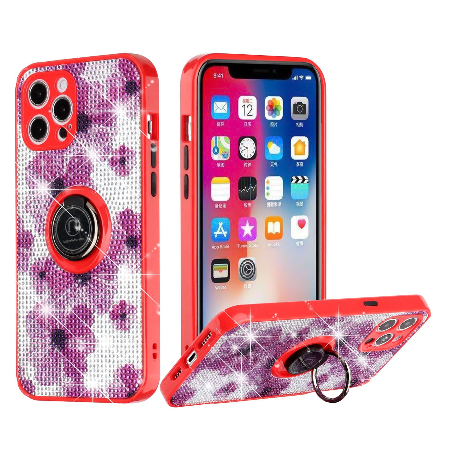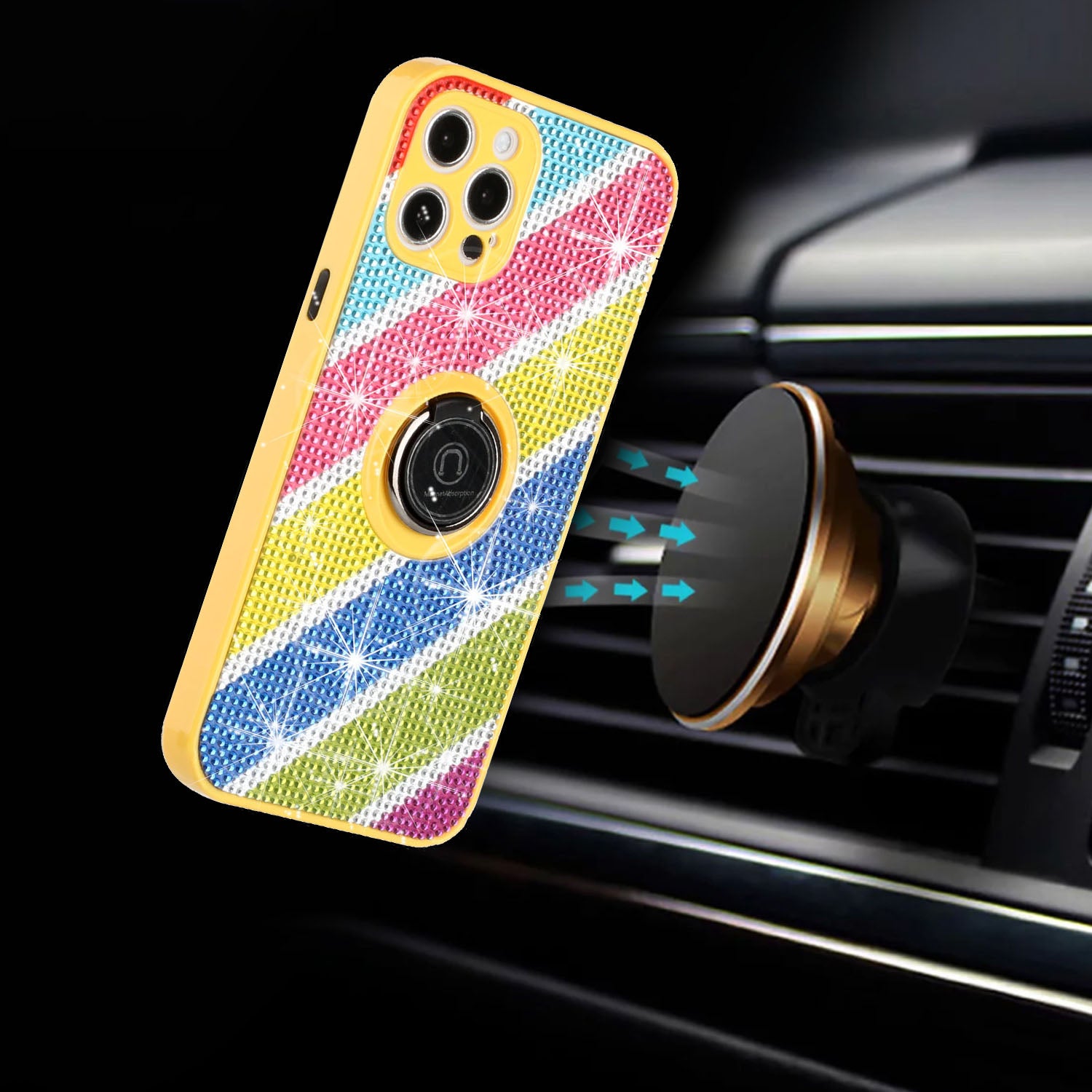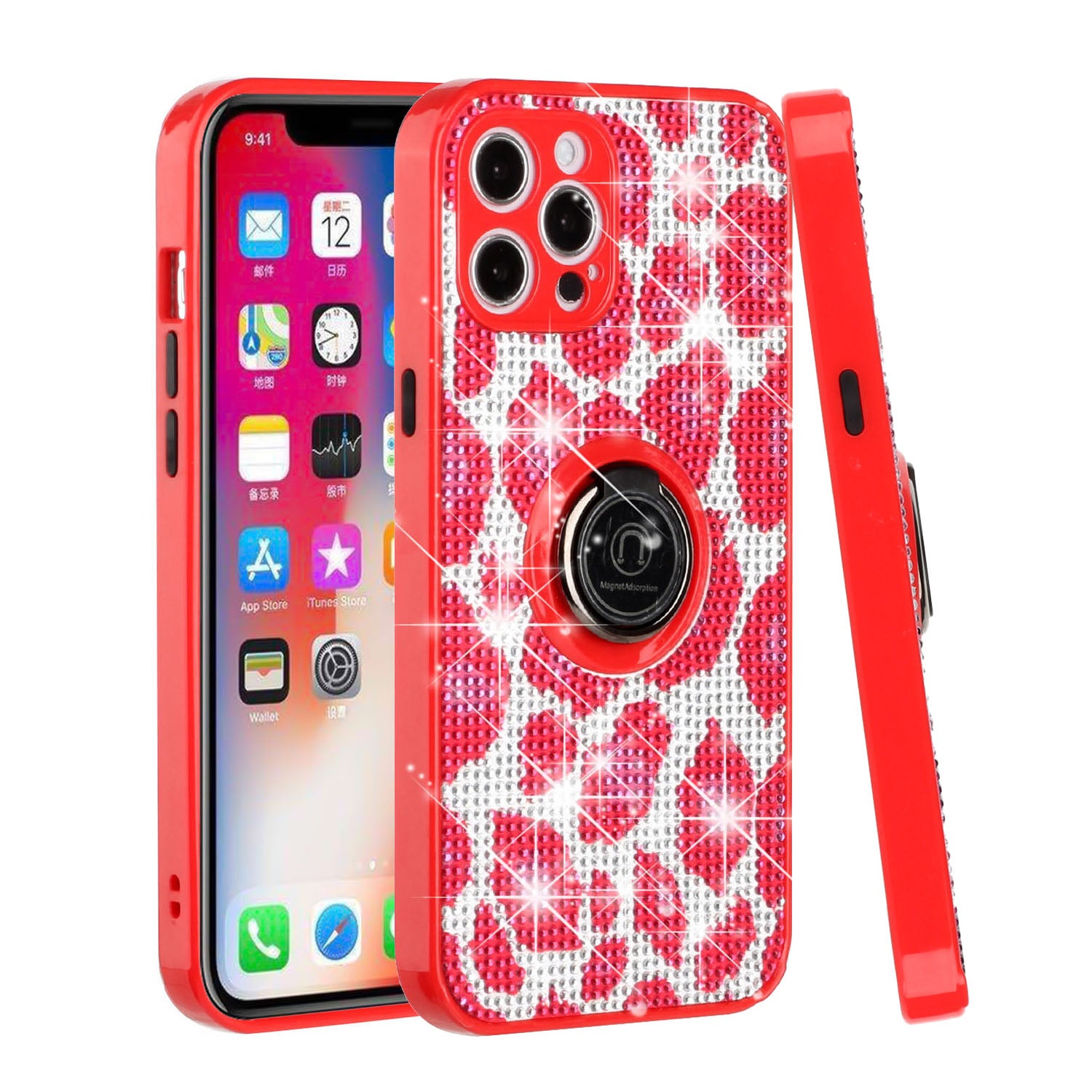 For iPhone 12 Pro Max 6.7 Crystal Diamond Bling Magnetic Ring Stand Case Cover