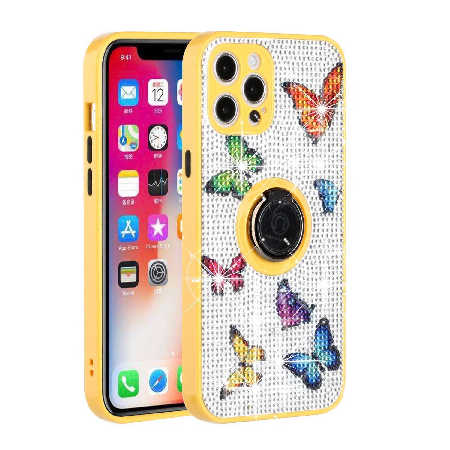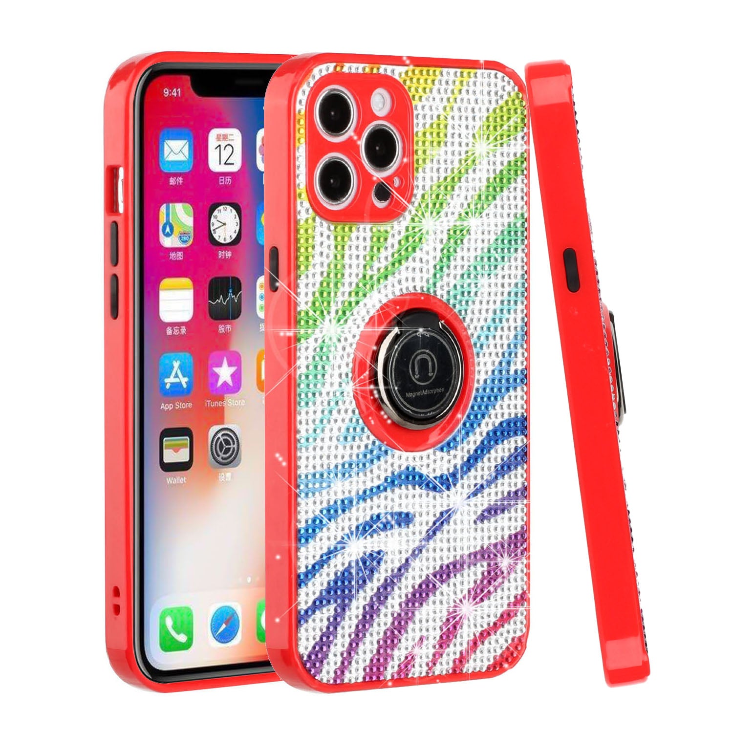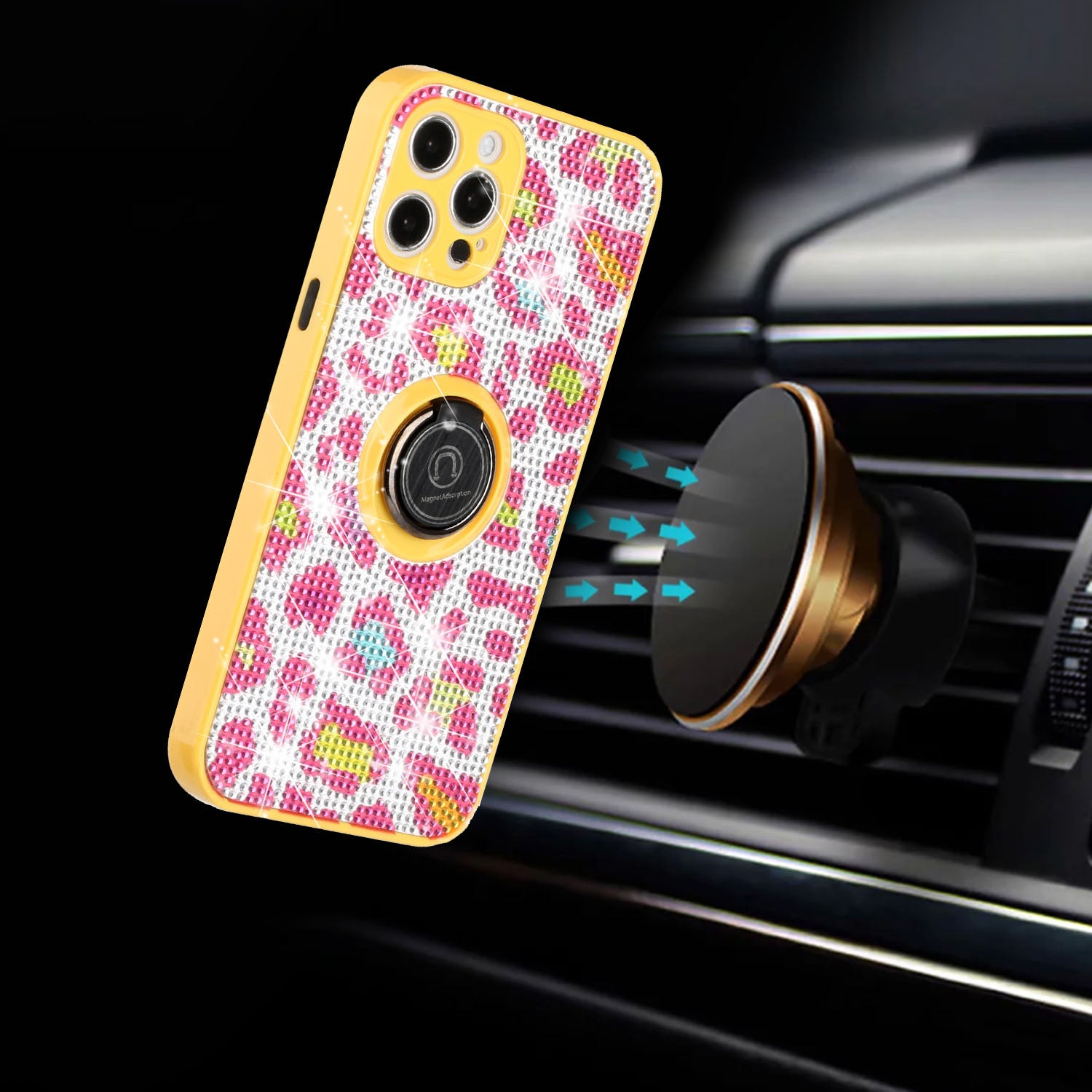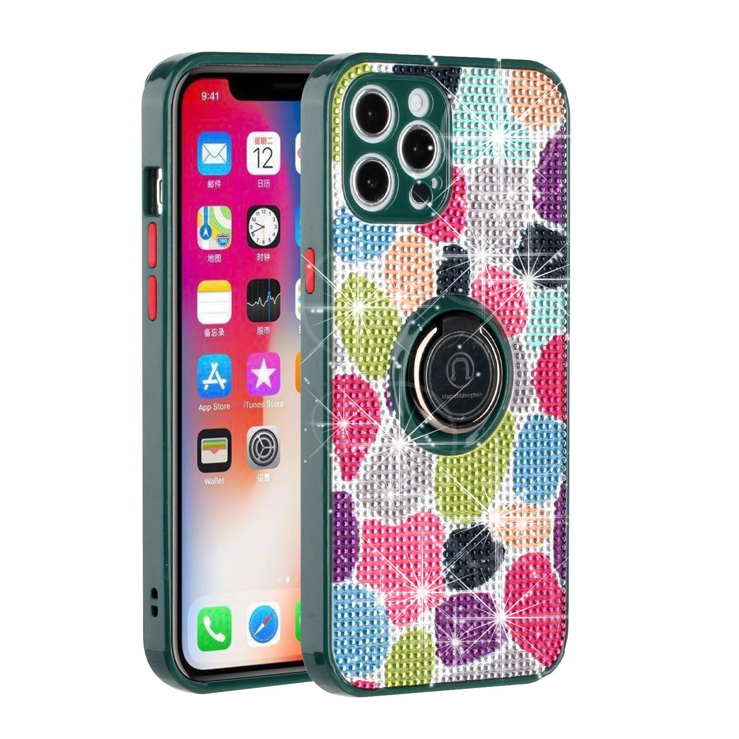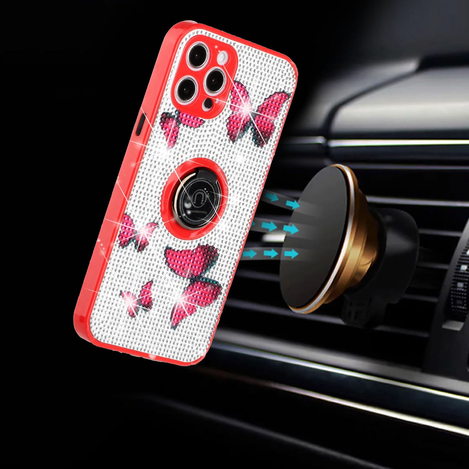 For iPhone 12 Pro Max 6.7 Crystal Diamond Bling Magnetic Ring Stand Case Cover