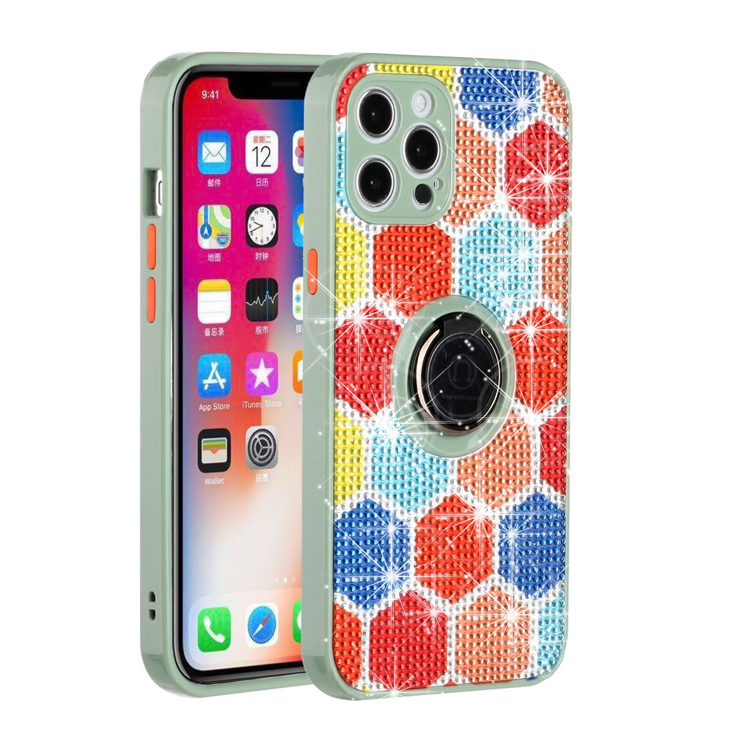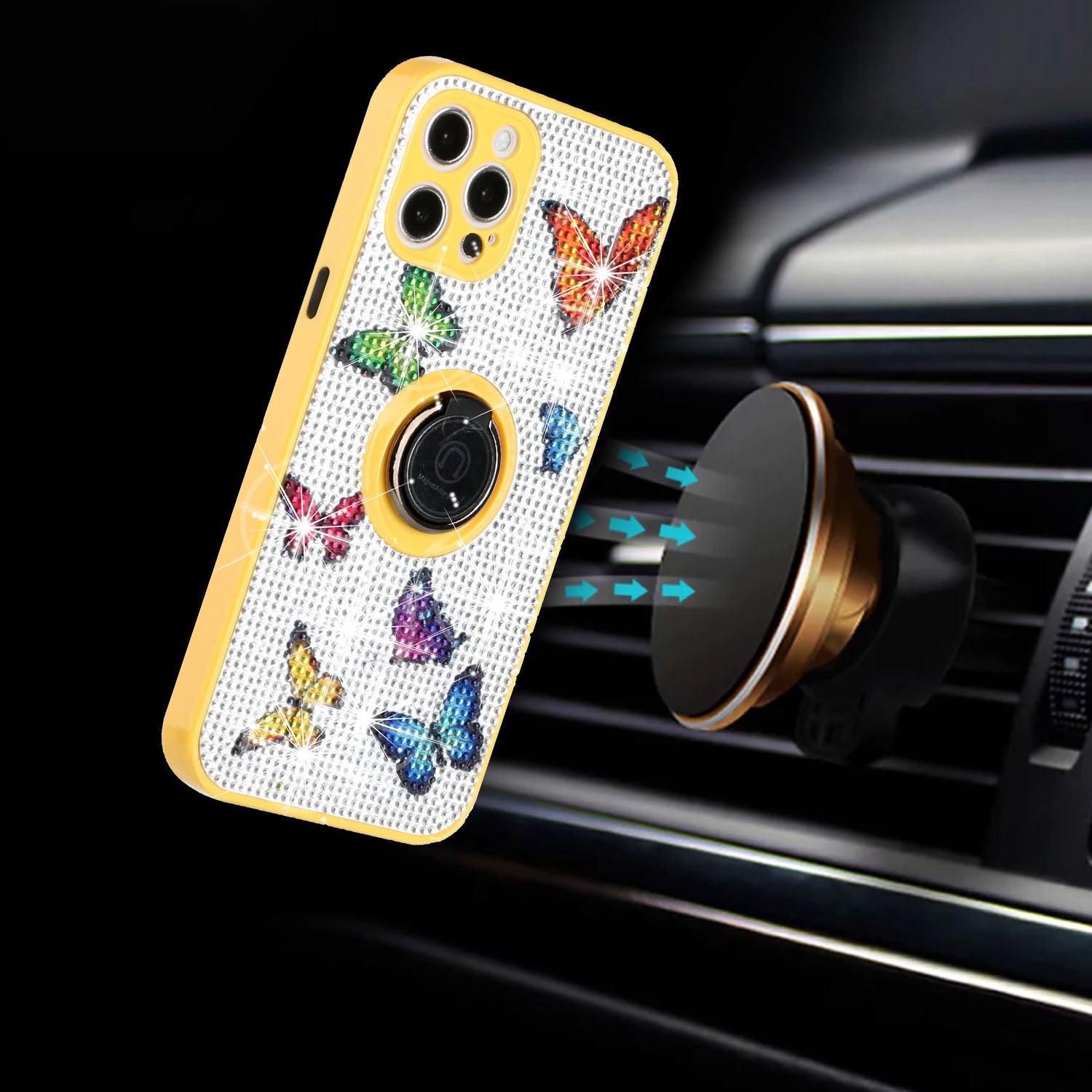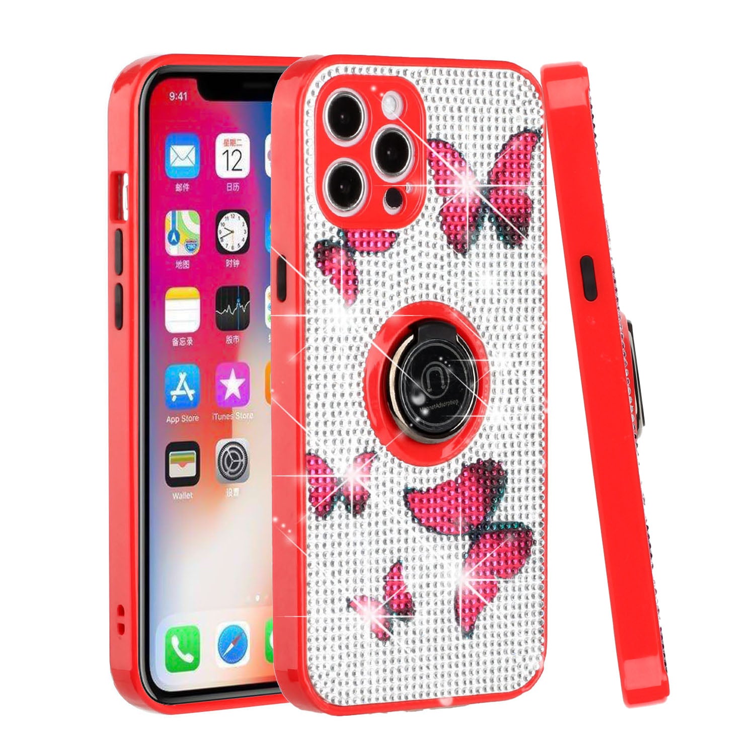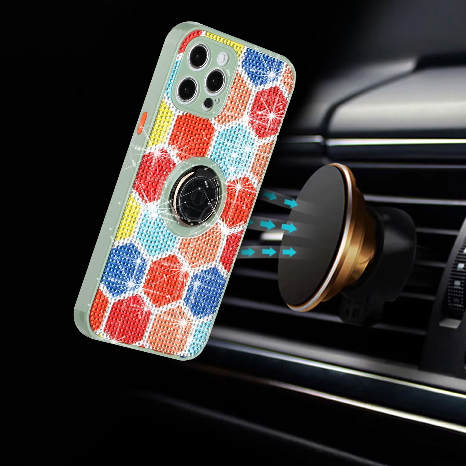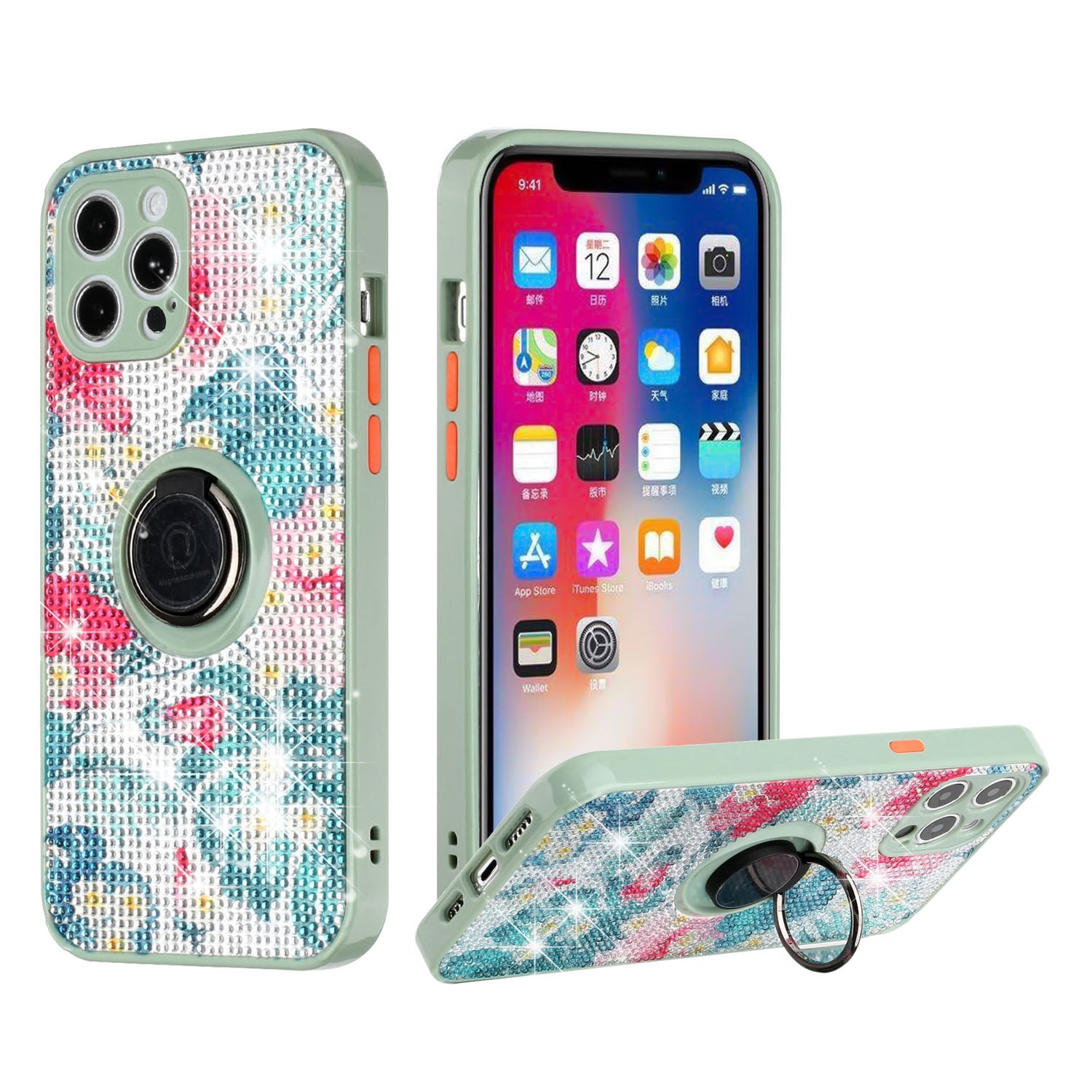 For iPhone 12 Pro Max 6.7 Crystal Diamond Bling Magnetic Ring Stand Case Cover