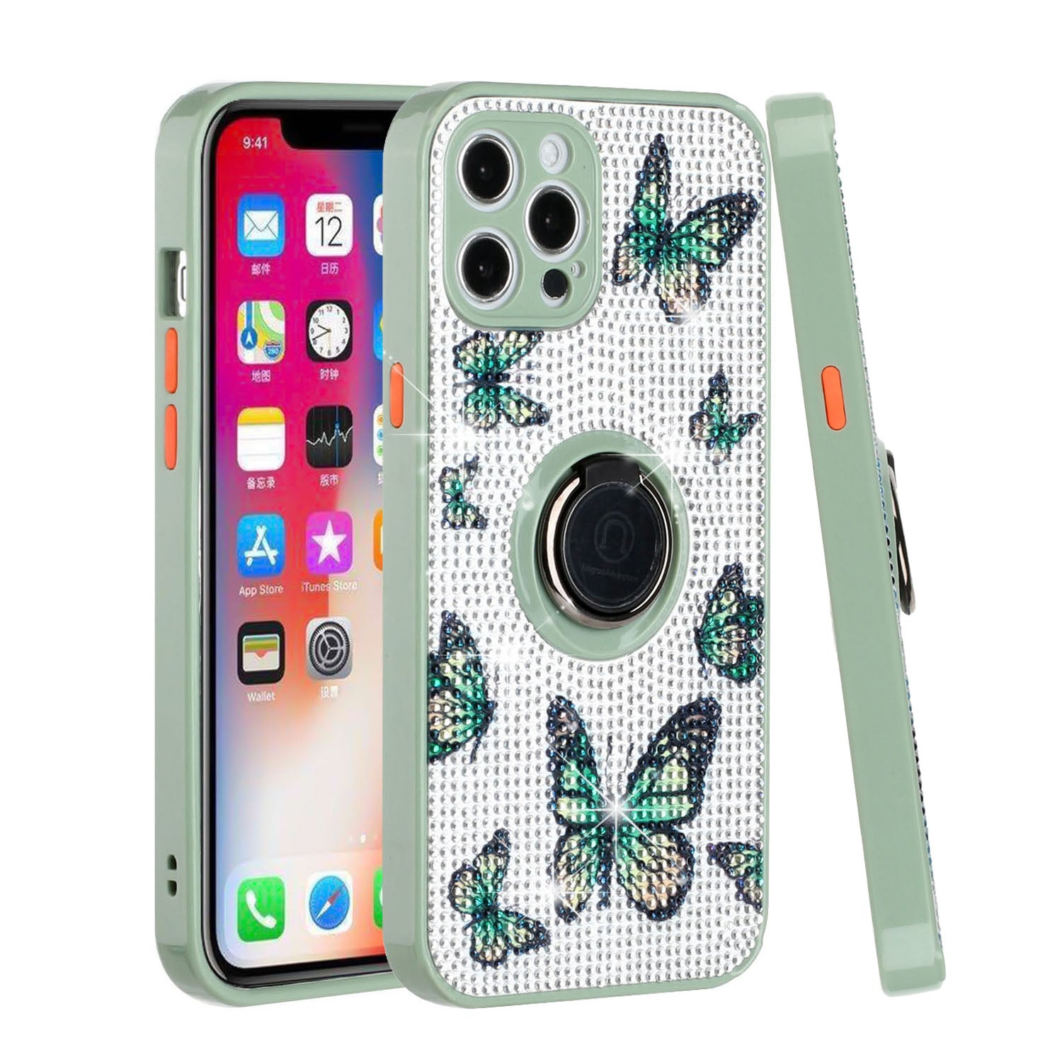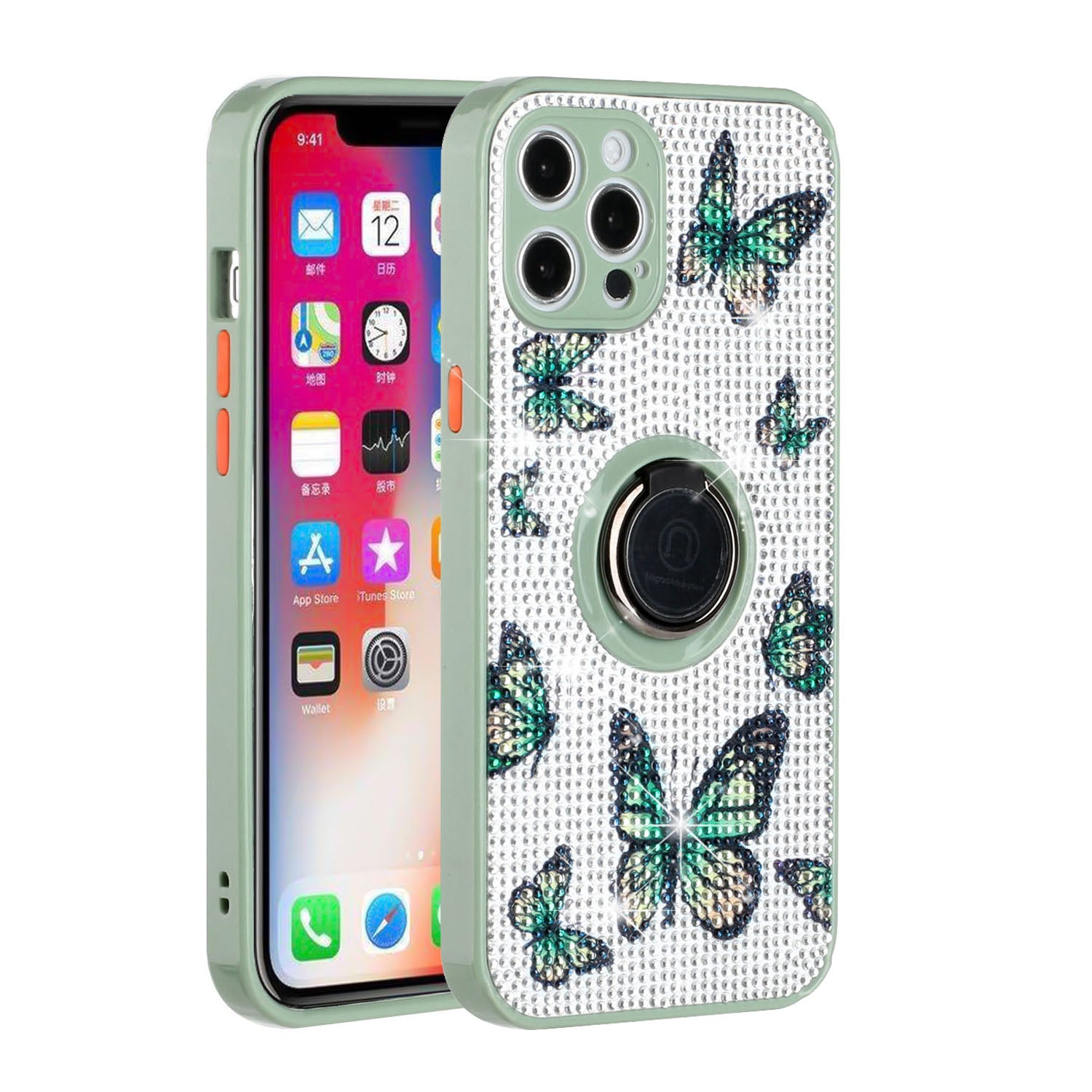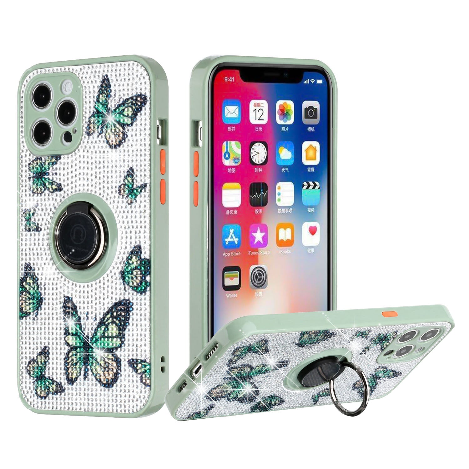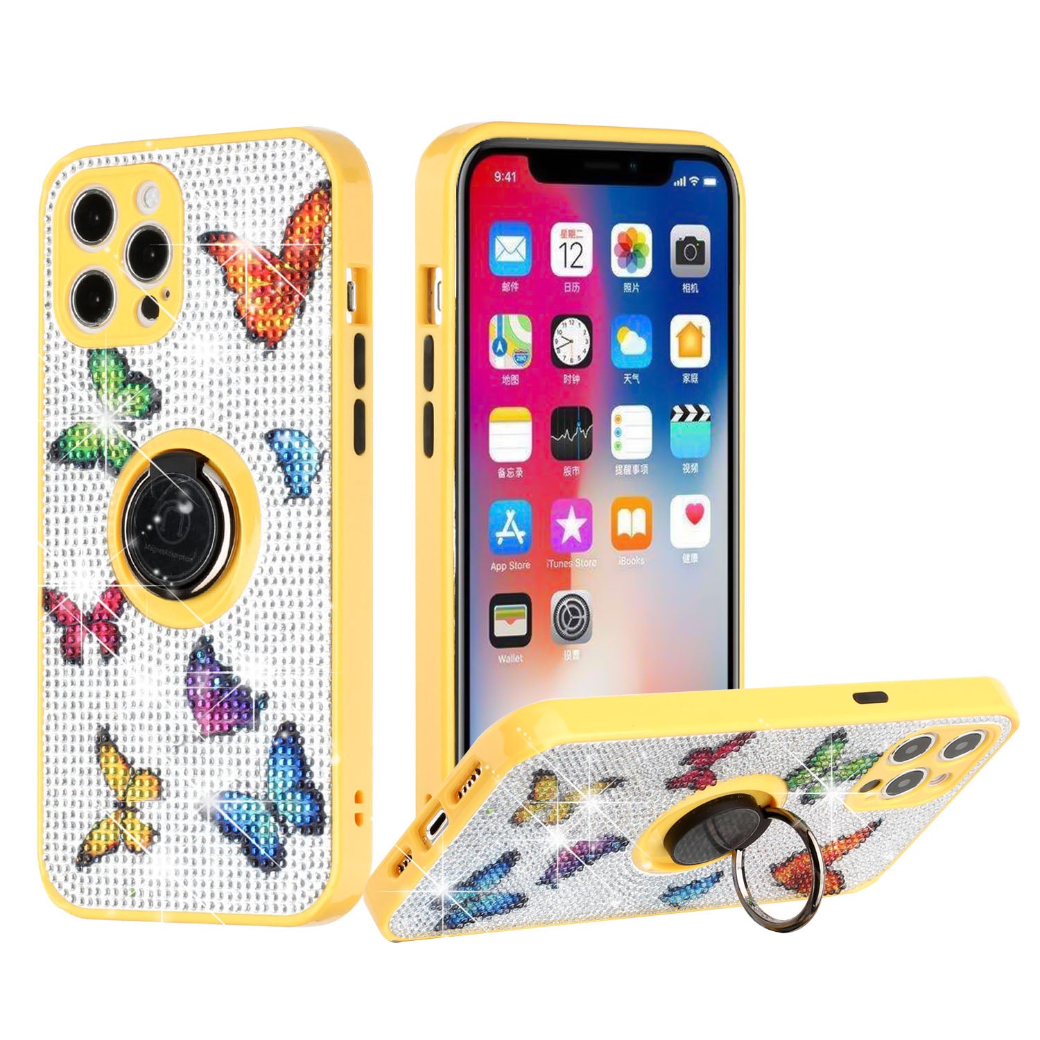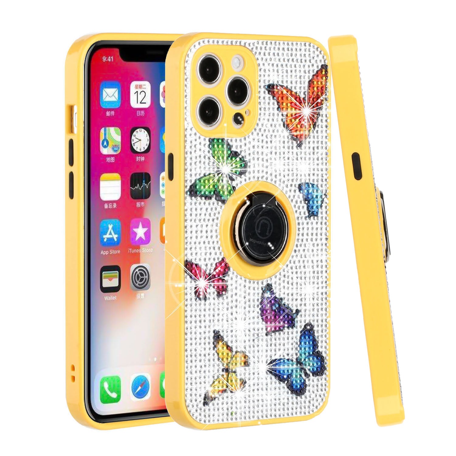 For iPhone 12 Pro Max 6.7 Crystal Diamond Bling Magnetic Ring Stand Case Cover
