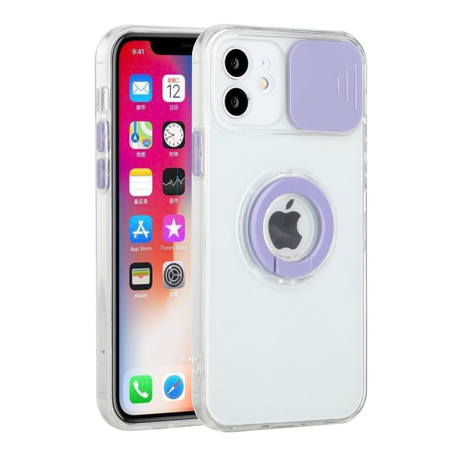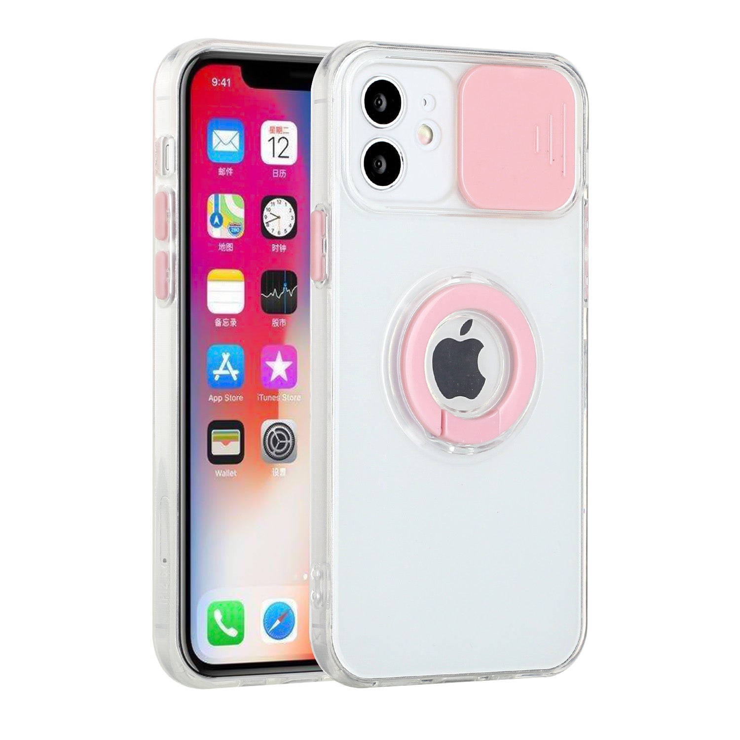 For iPhone 12 Pro Max 6.7 SLICK 2.0mm Thick TPU Ring Stand Camera Window Case Cover