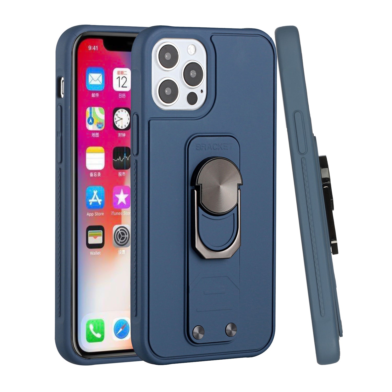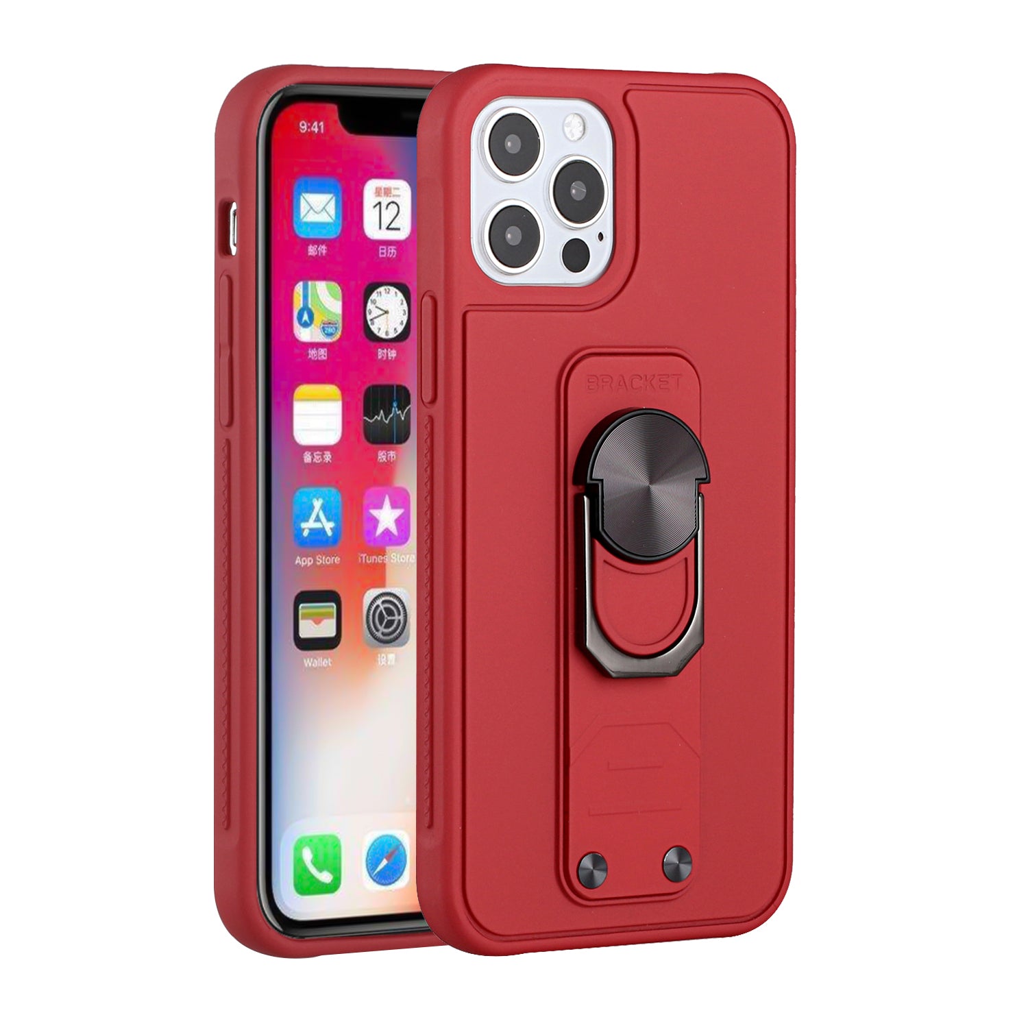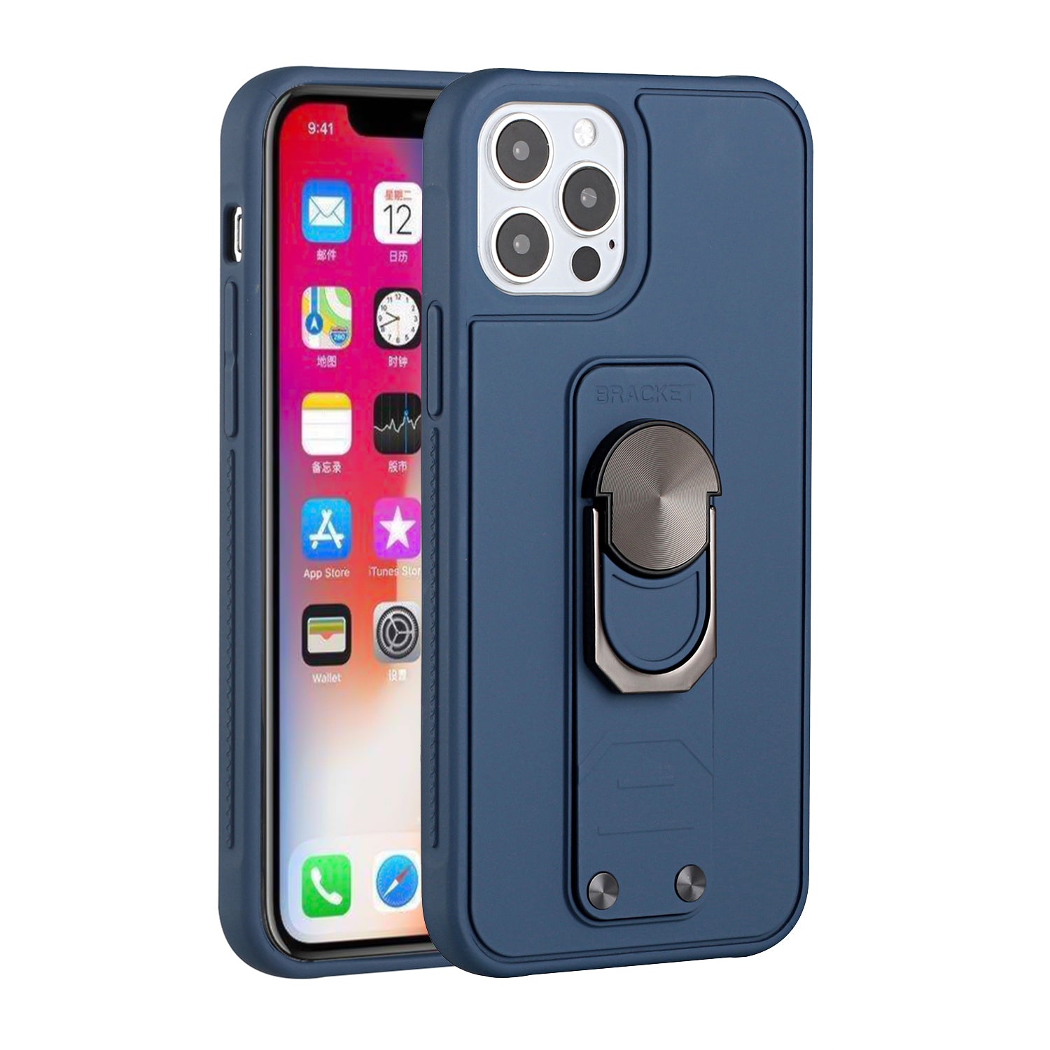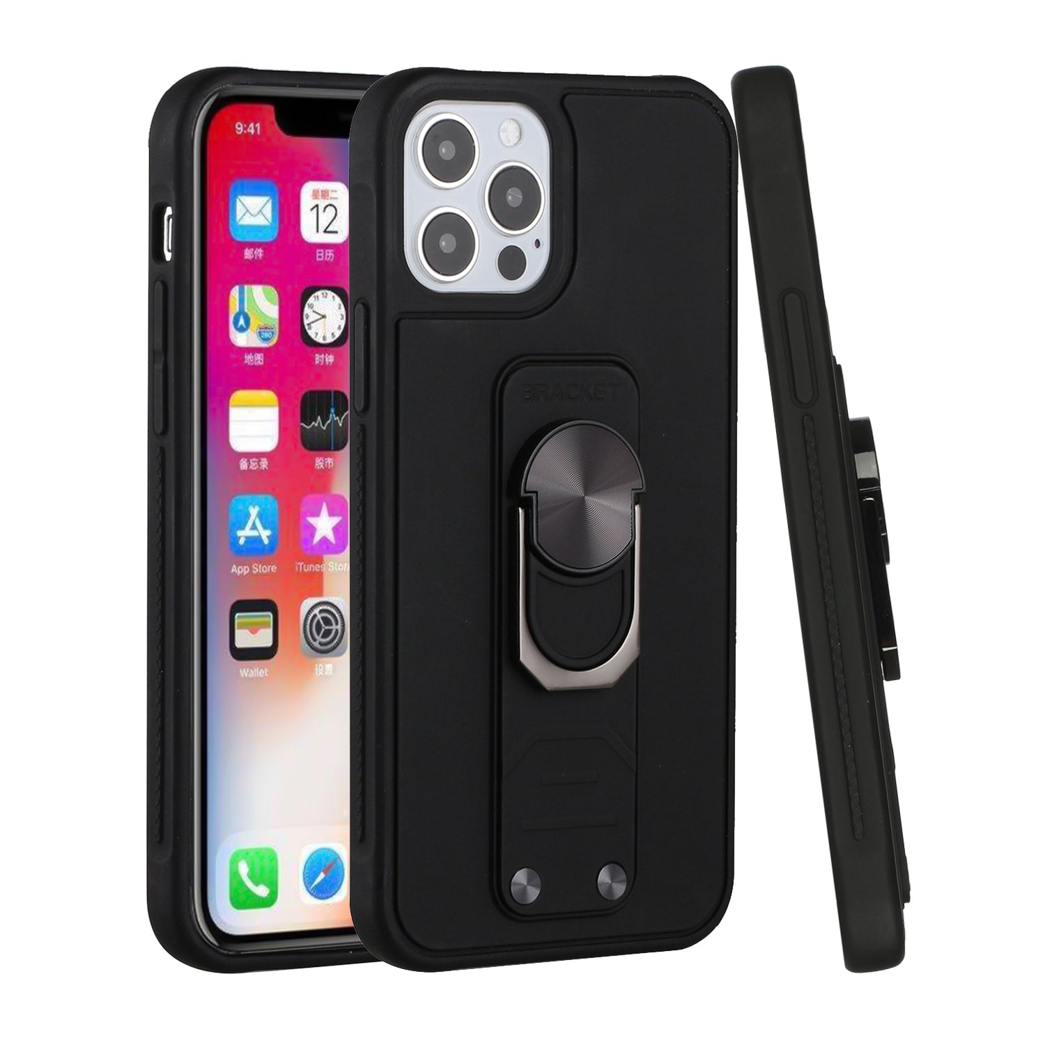For iPhone 12 Pro Max 6.7 Solid Lever Magnetic Ring Stand Tuff Hybrid Case Cover