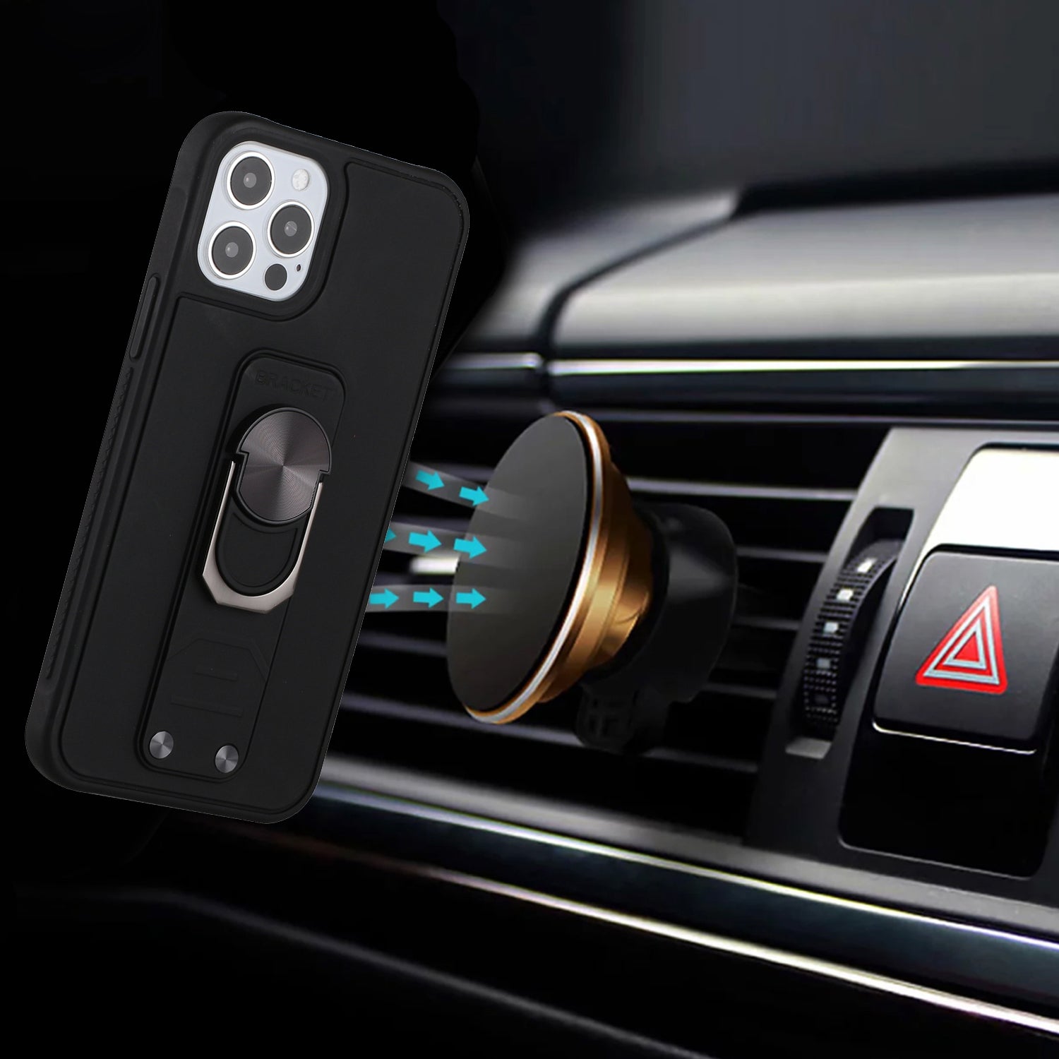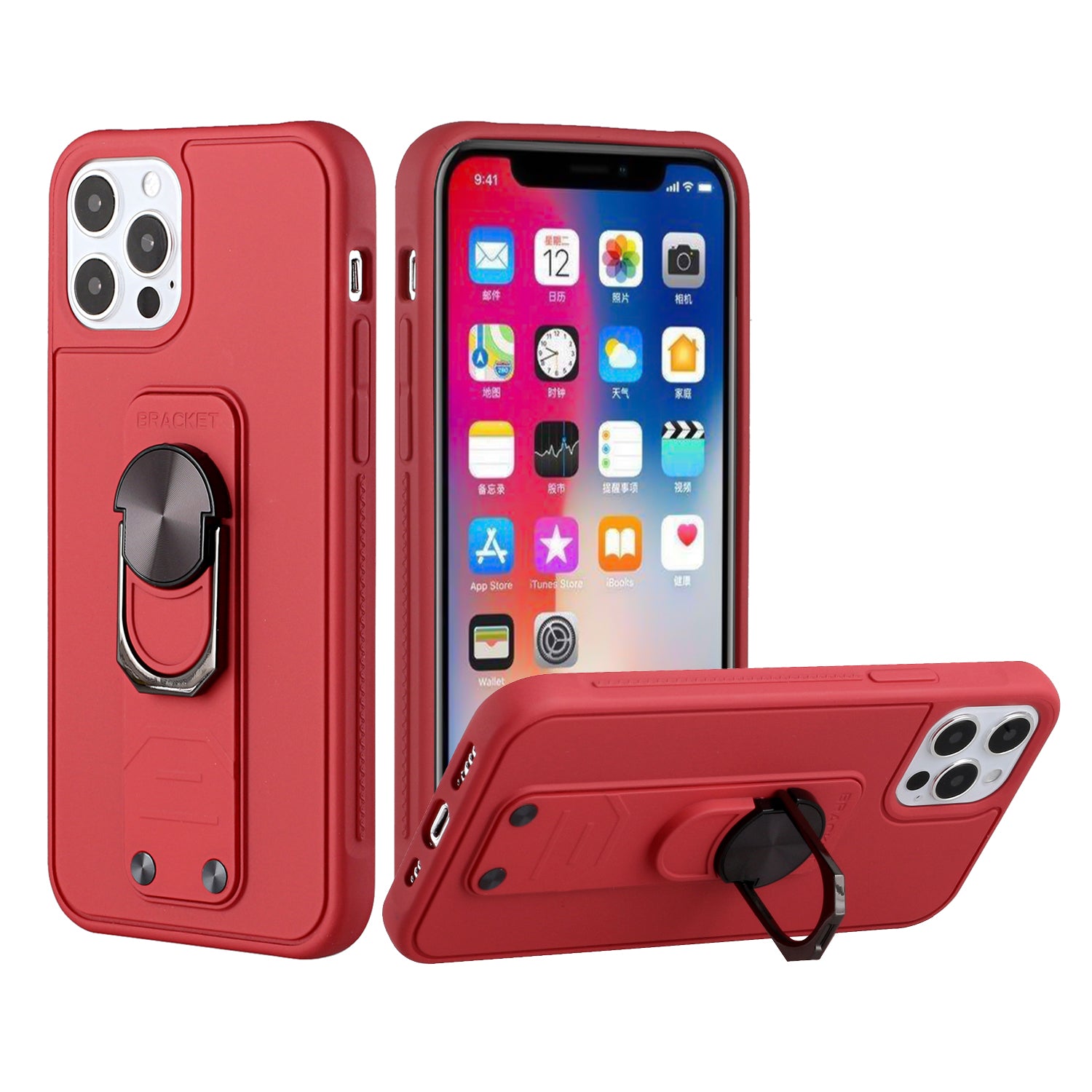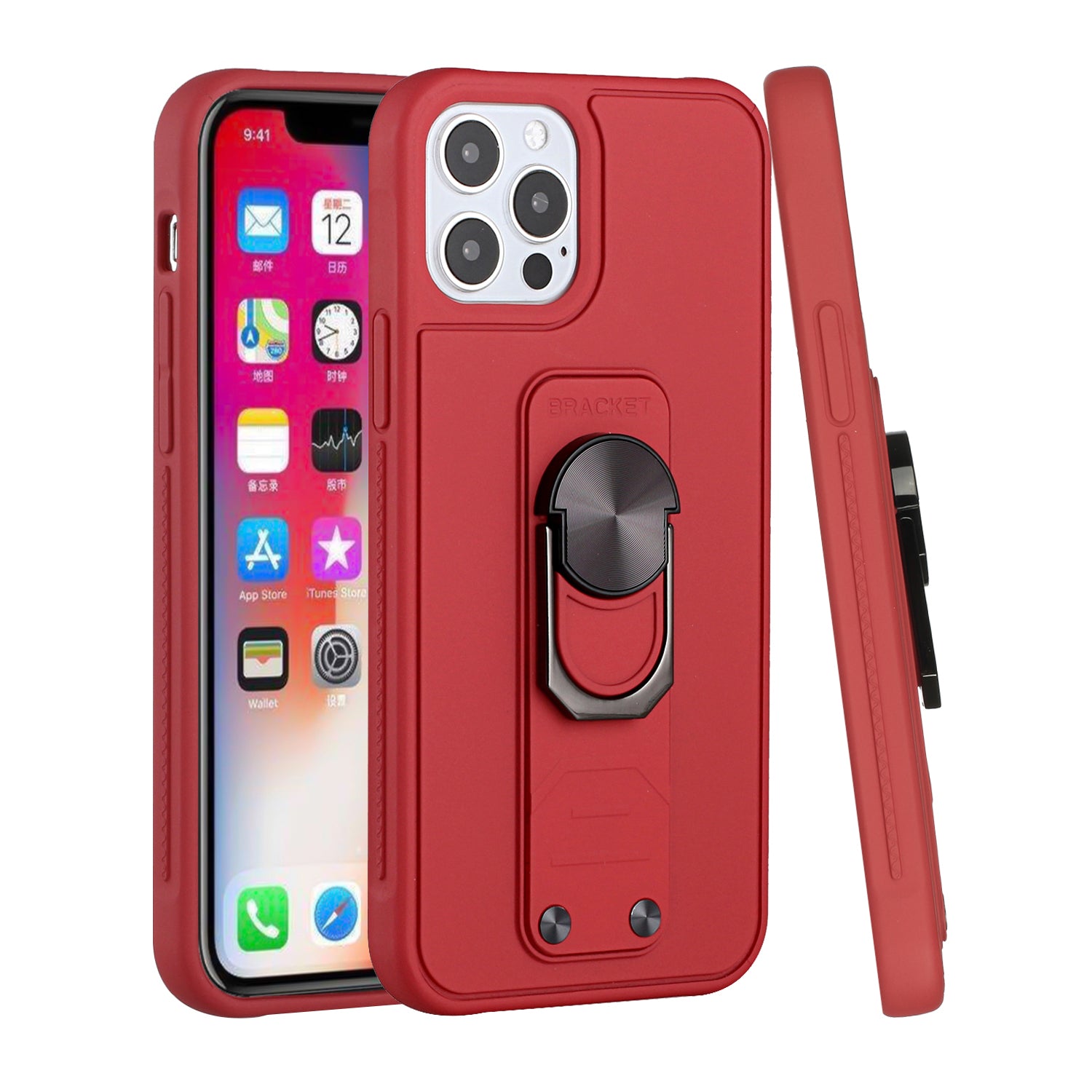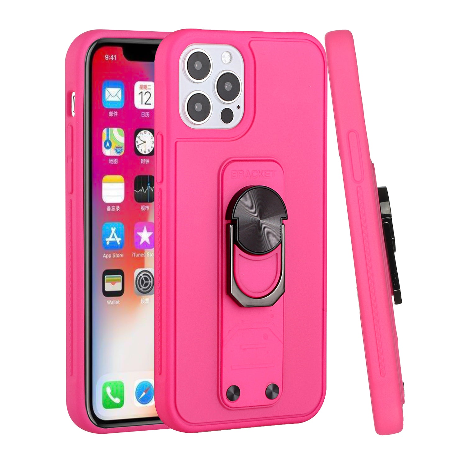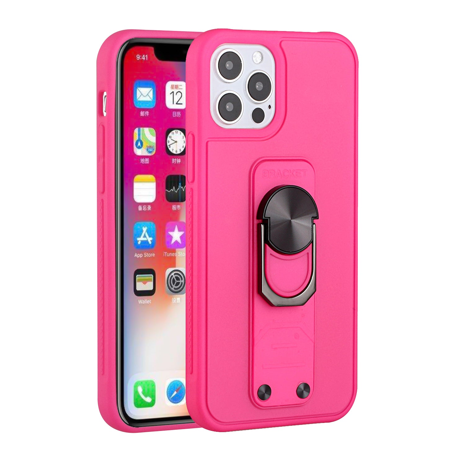 For iPhone 12 Pro Max 6.7 Solid Lever Magnetic Ring Stand Tuff Hybrid Case Cover