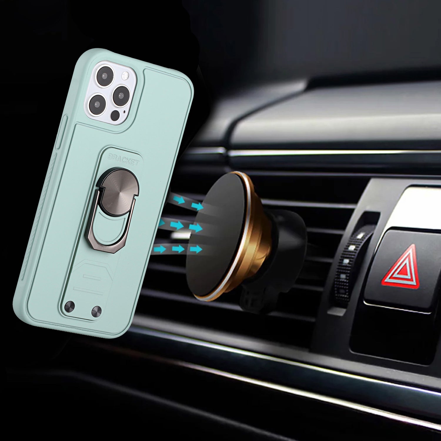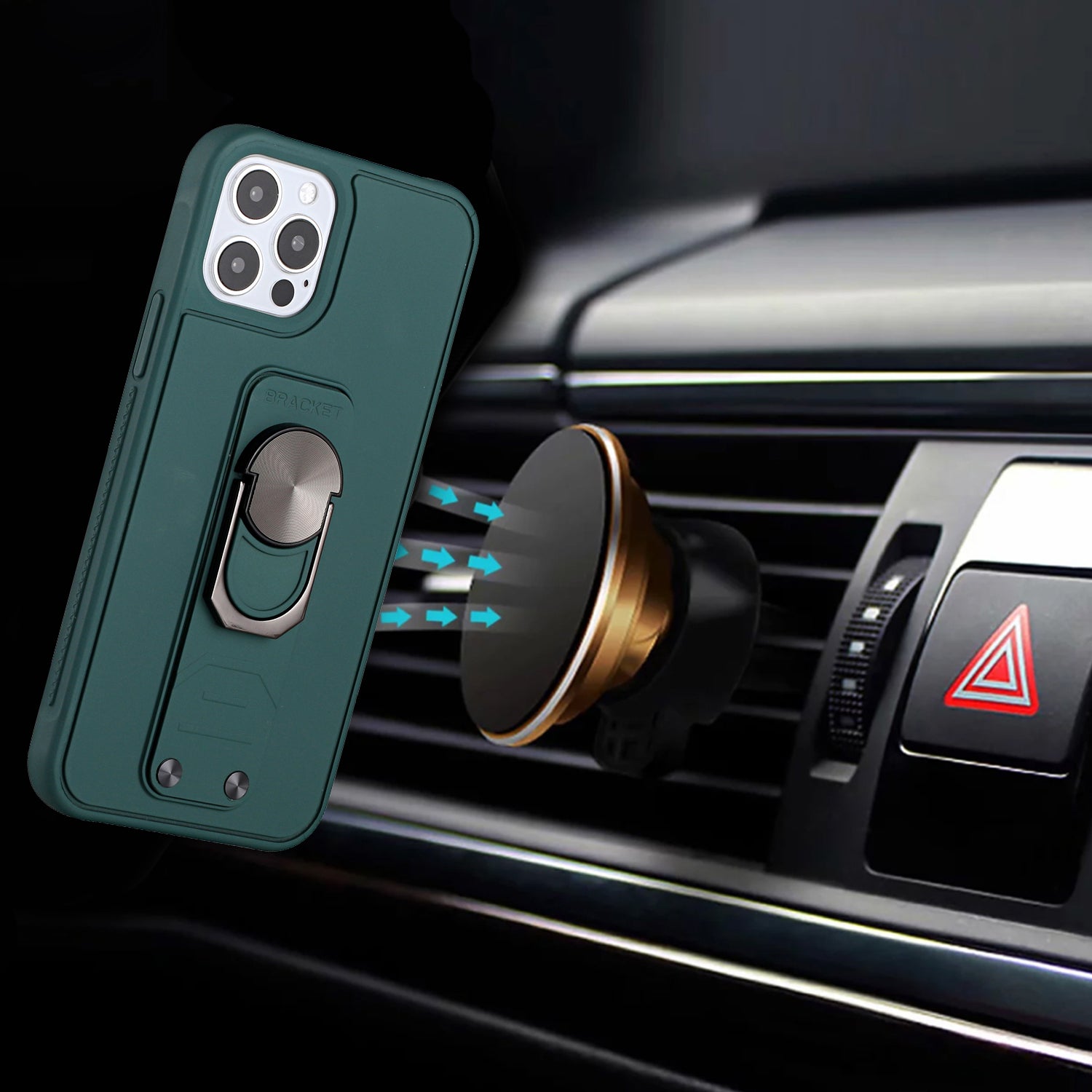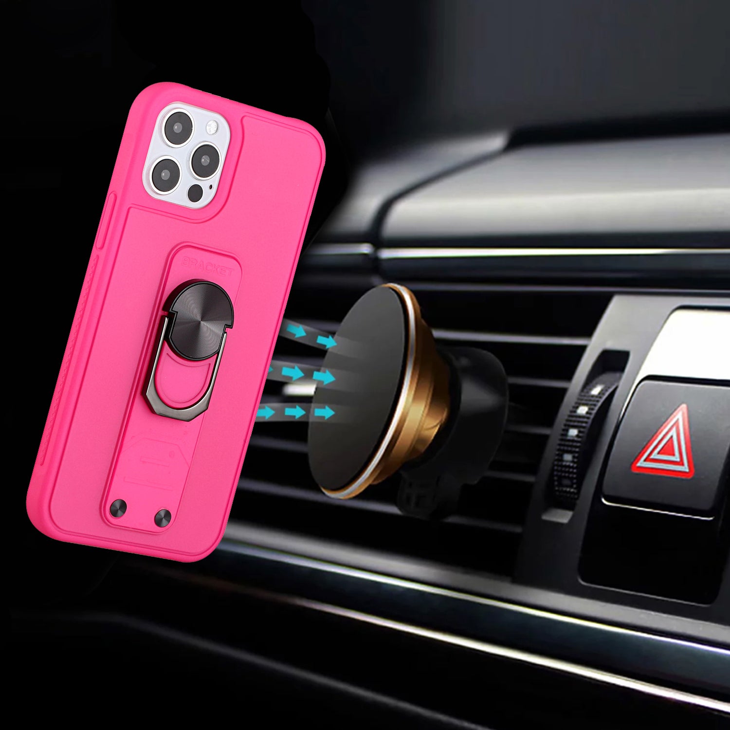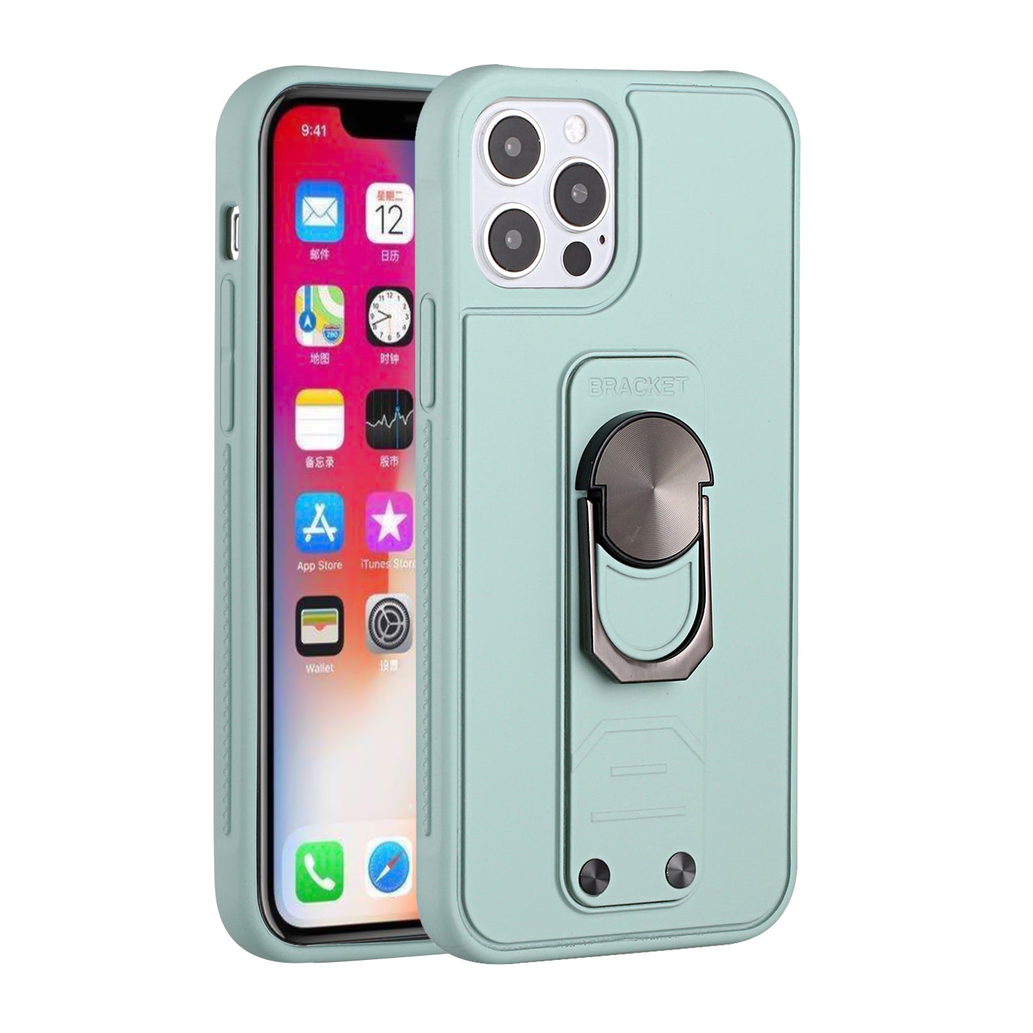 For iPhone 12 Pro Max 6.7 Solid Lever Magnetic Ring Stand Tuff Hybrid Case Cover