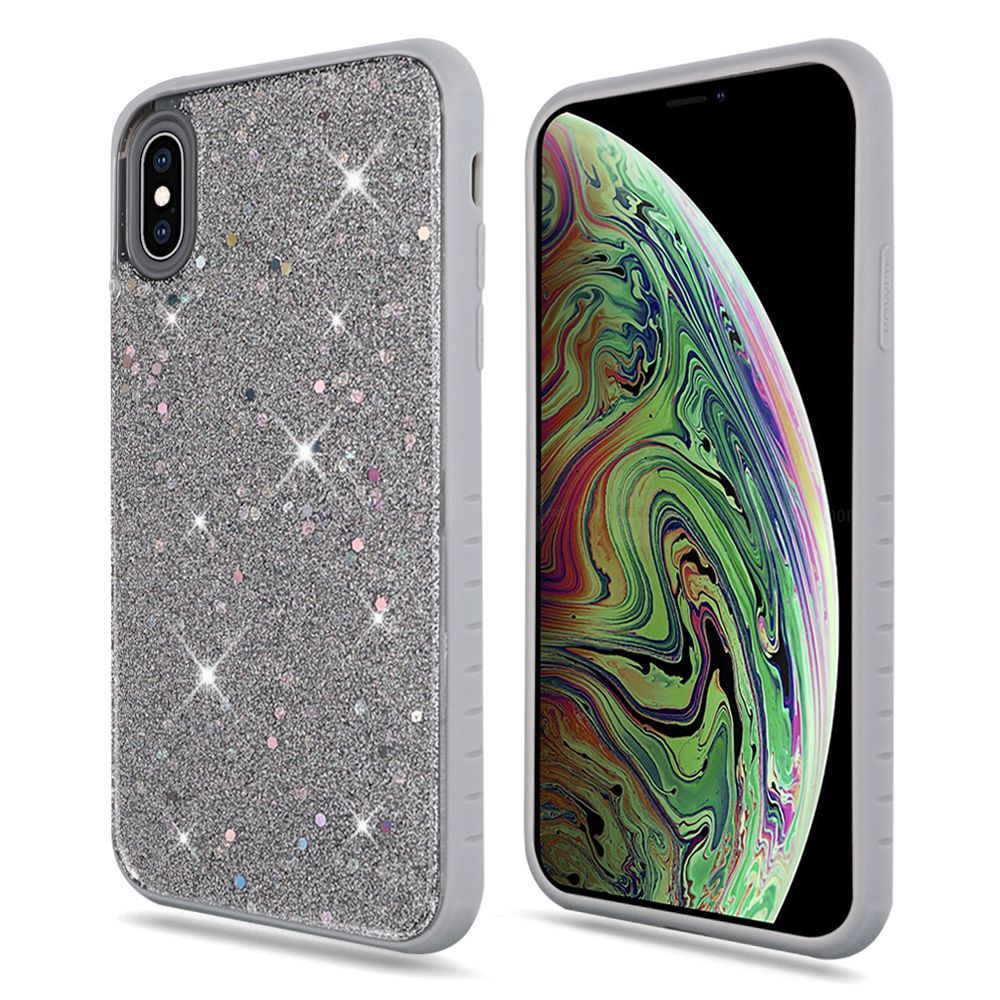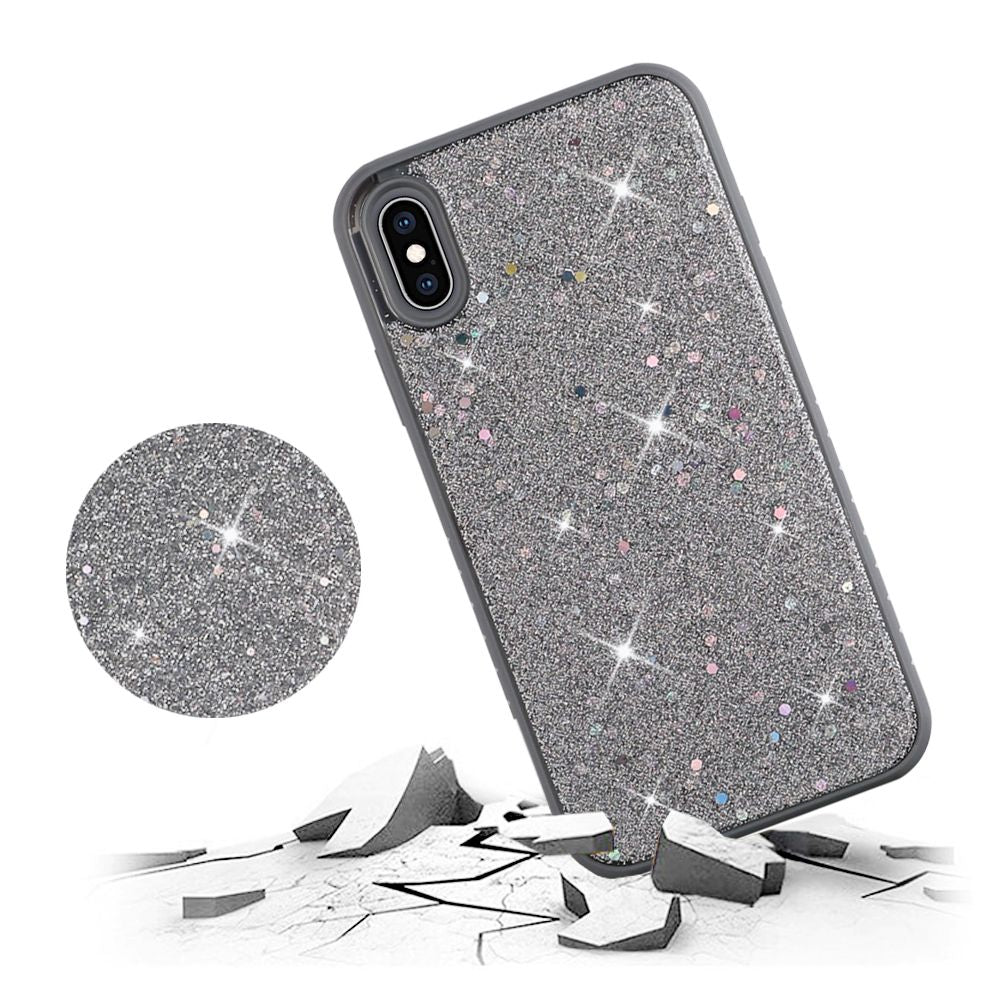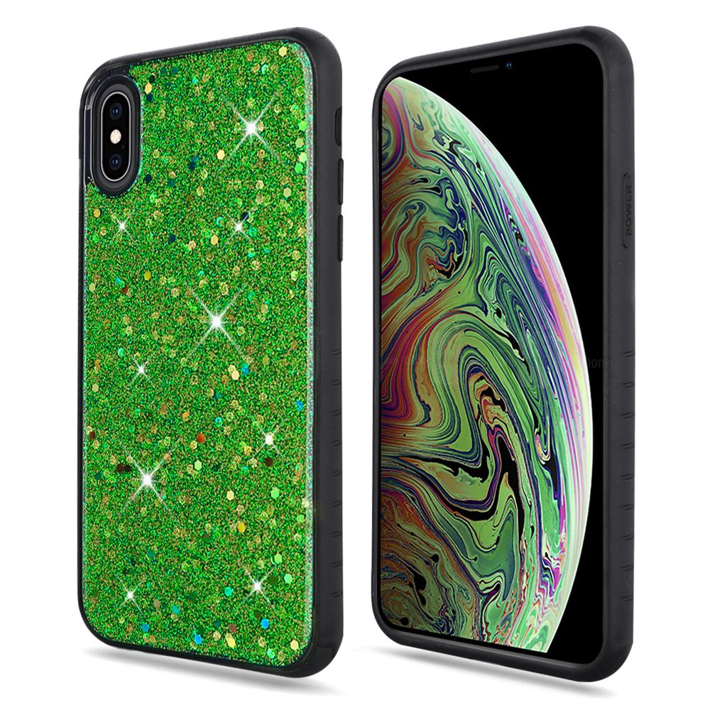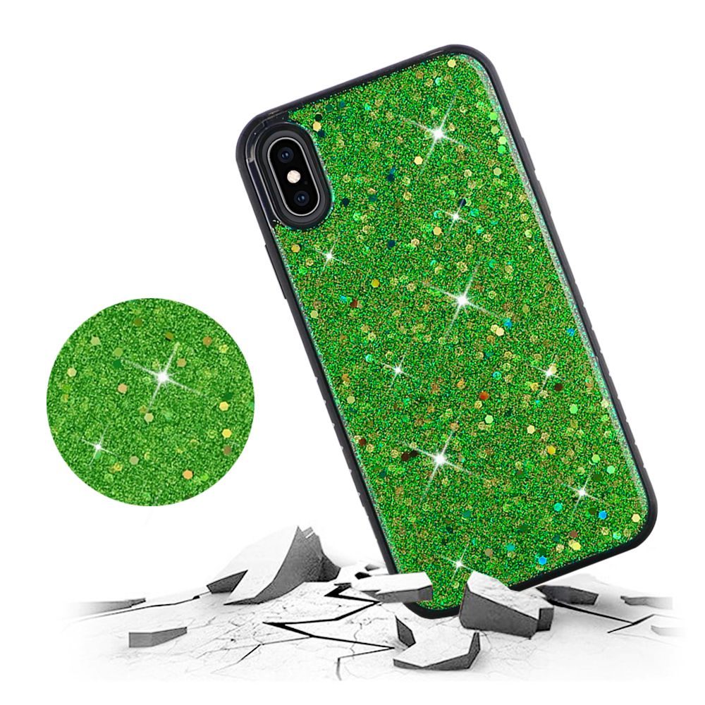 For iPhone XS Max Slim Solid Color Hybrid with Full Frozen Crude Glitter