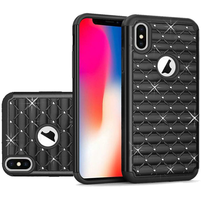 For iPhone XS/X Studded Rhinestone Crystal Bling Diamond Tough Hybrid