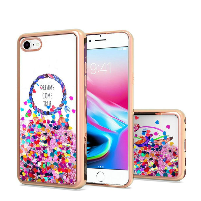 For Apple iPhone SE2 (2020) 8/7/6/6s Design Water Quicksand Glitter Chrome TPU