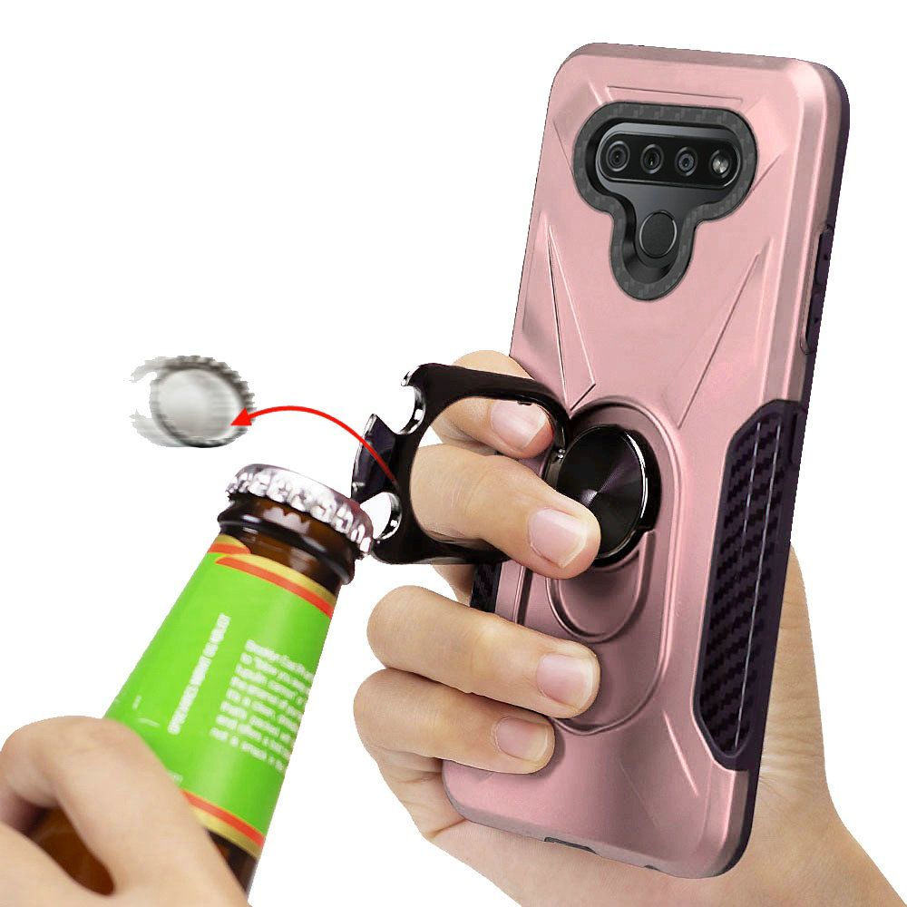 For LG K51 Beer Opener Magnetic Ring Kickstand Cover Case