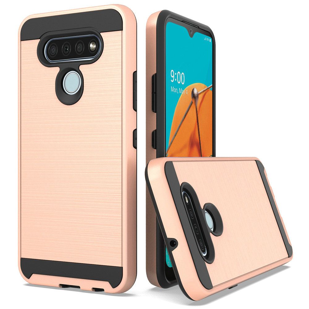 For LG K51 Metal Brushed Design Hybrid Case Cover