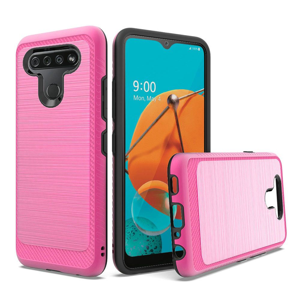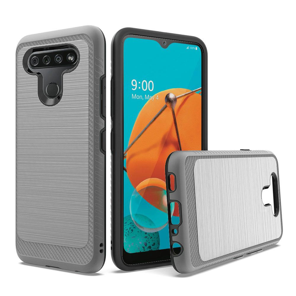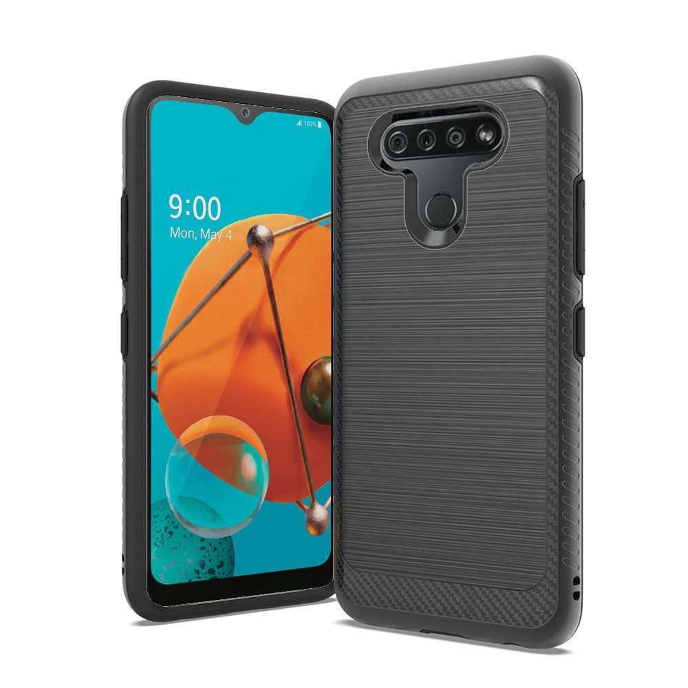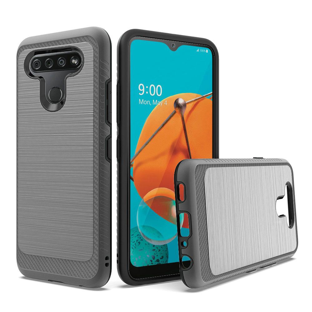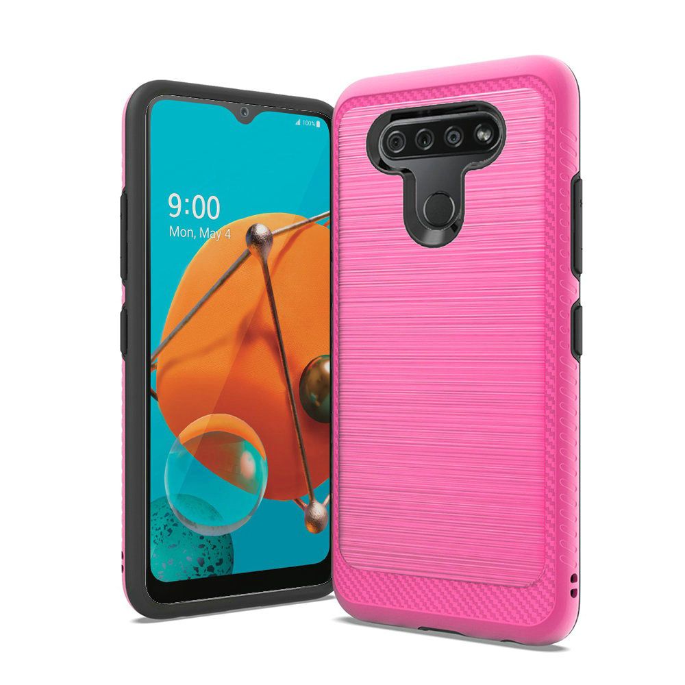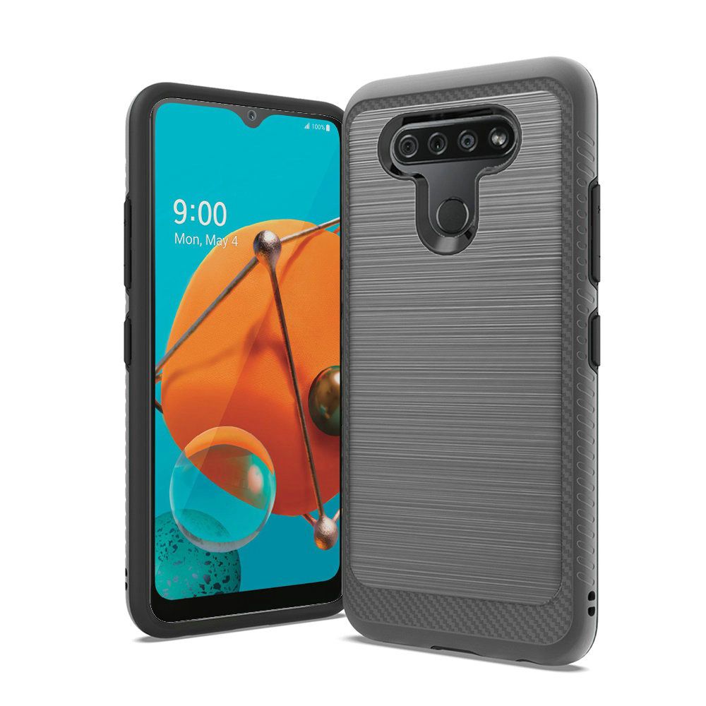 For LG K51 Slick Tough Metallic Design Hybrid Case Cover