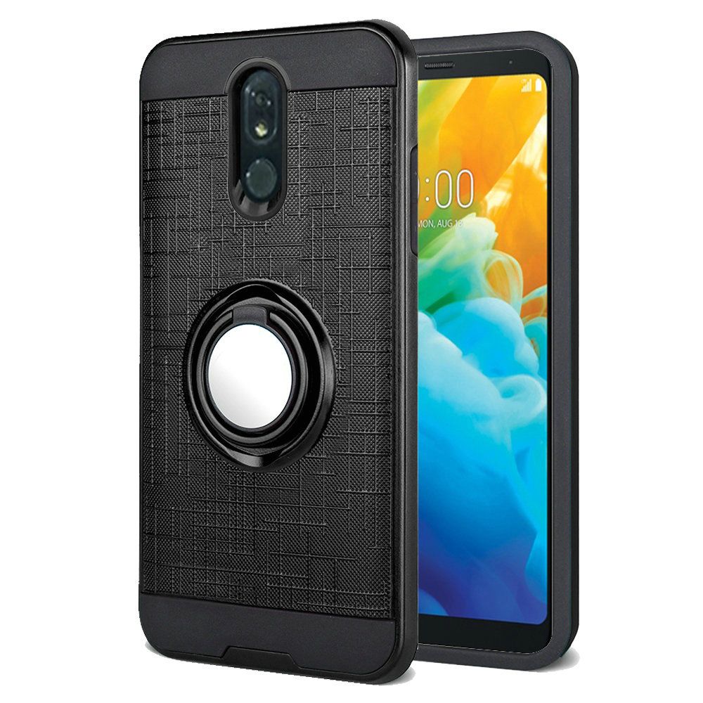 For LG Stylo 5 Simplistic Metallic Brushed Magnetic Ring Stand 360 Degree Rotation Hybrid