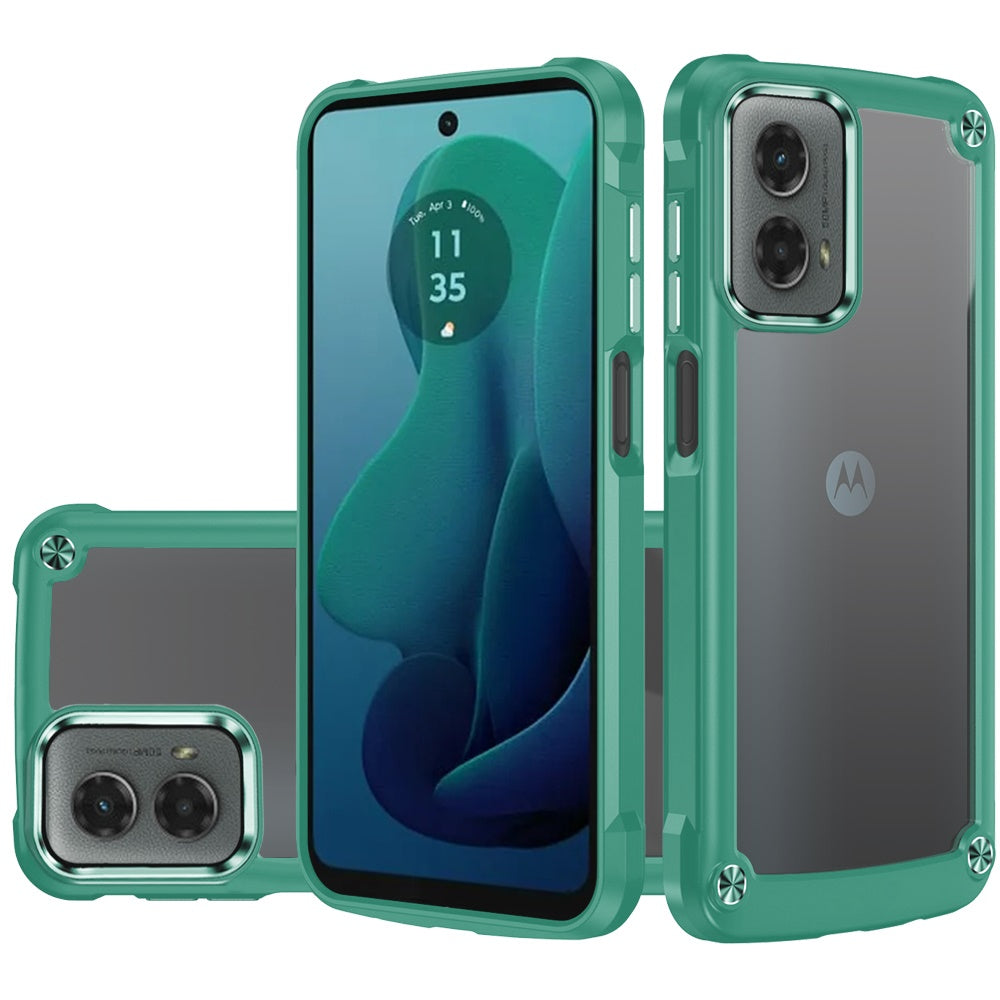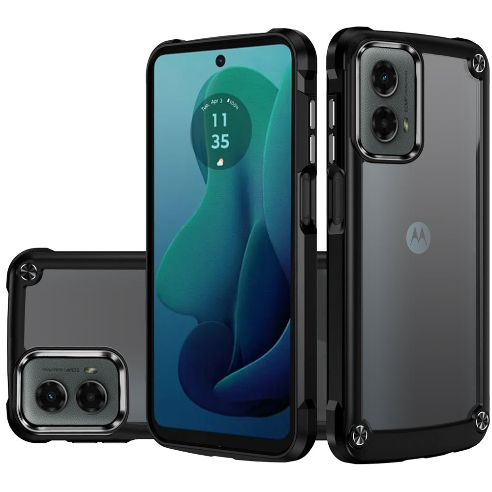 For Moto G 5G (2024) Case Hybrid Cover Metal Buttons Clear Back +Tempered Glass