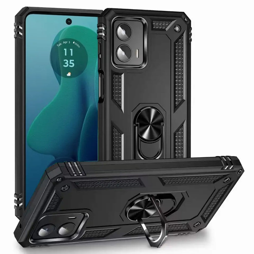 For Moto G 5G (2024) Case Ring Magnetic Kickstand Hybrid Cover + Tempered Glass