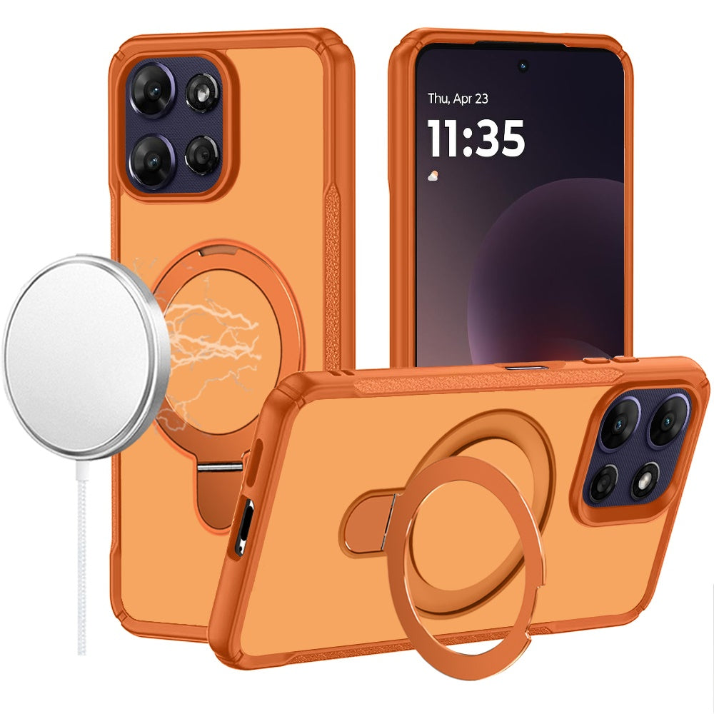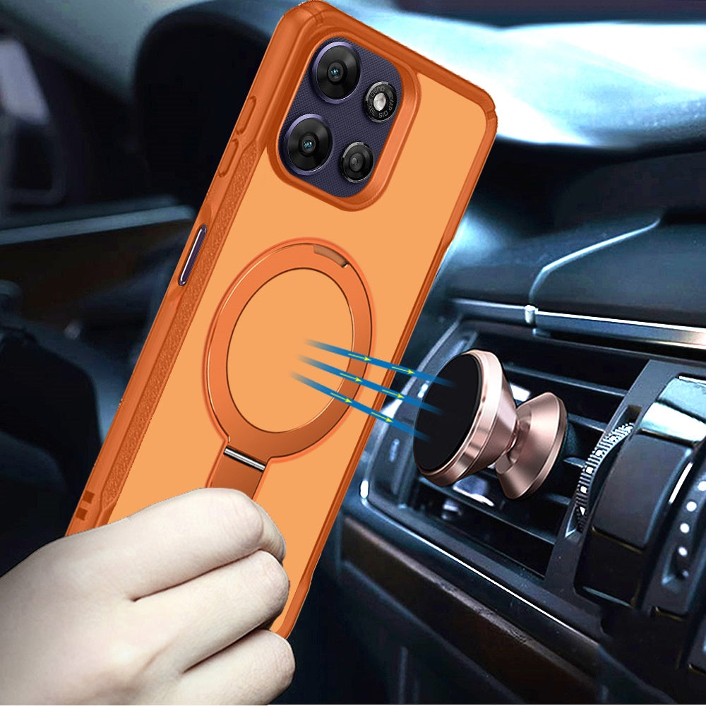 Shockproof Phone Cover with Magnetic Metal Circle Stand + Tempered Glass Glass Screen Protector