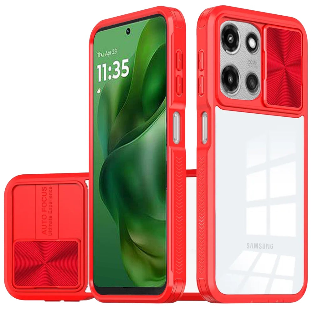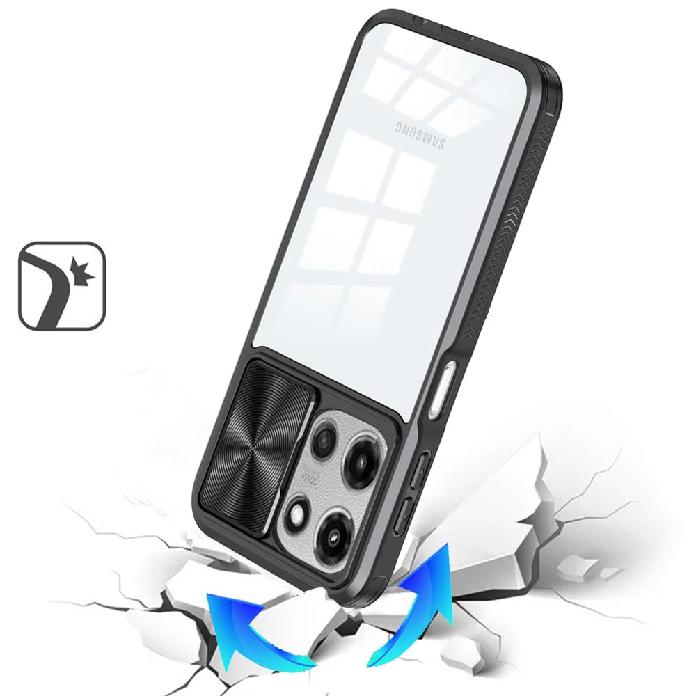 For Moto G Power 2025/26 Case Rear Lens Sliding Cover Rugged + Tempered Glass