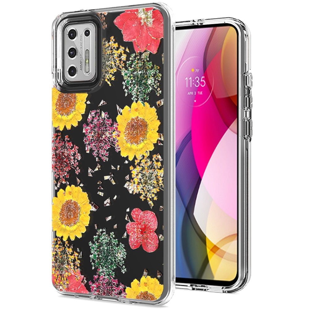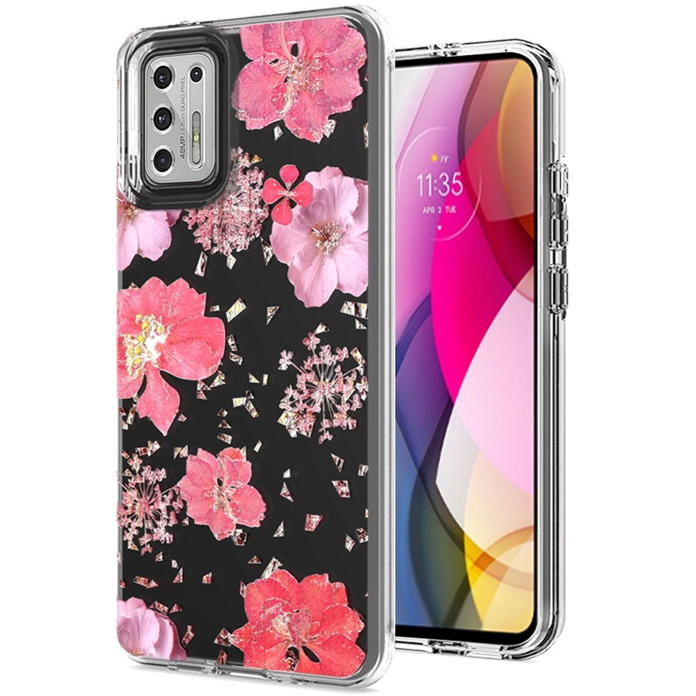 For Moto G Stylus 2021 Floral Glitter Design Case Cover