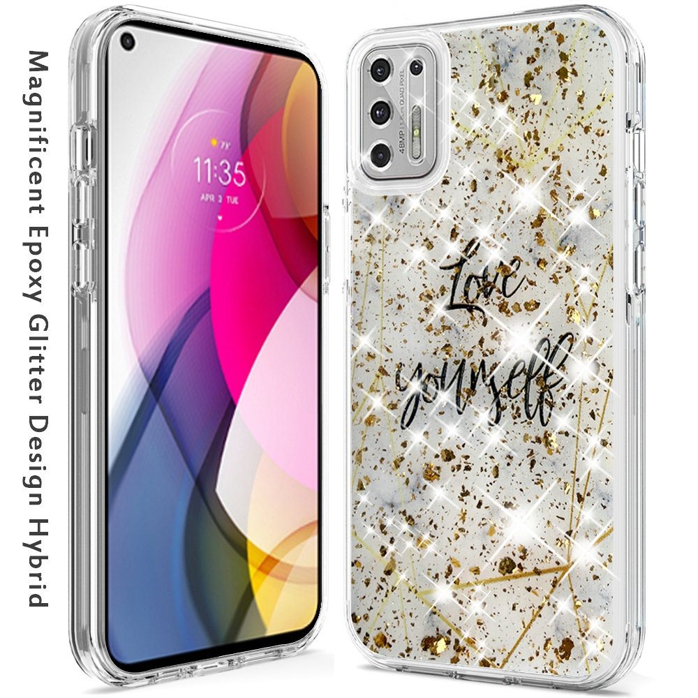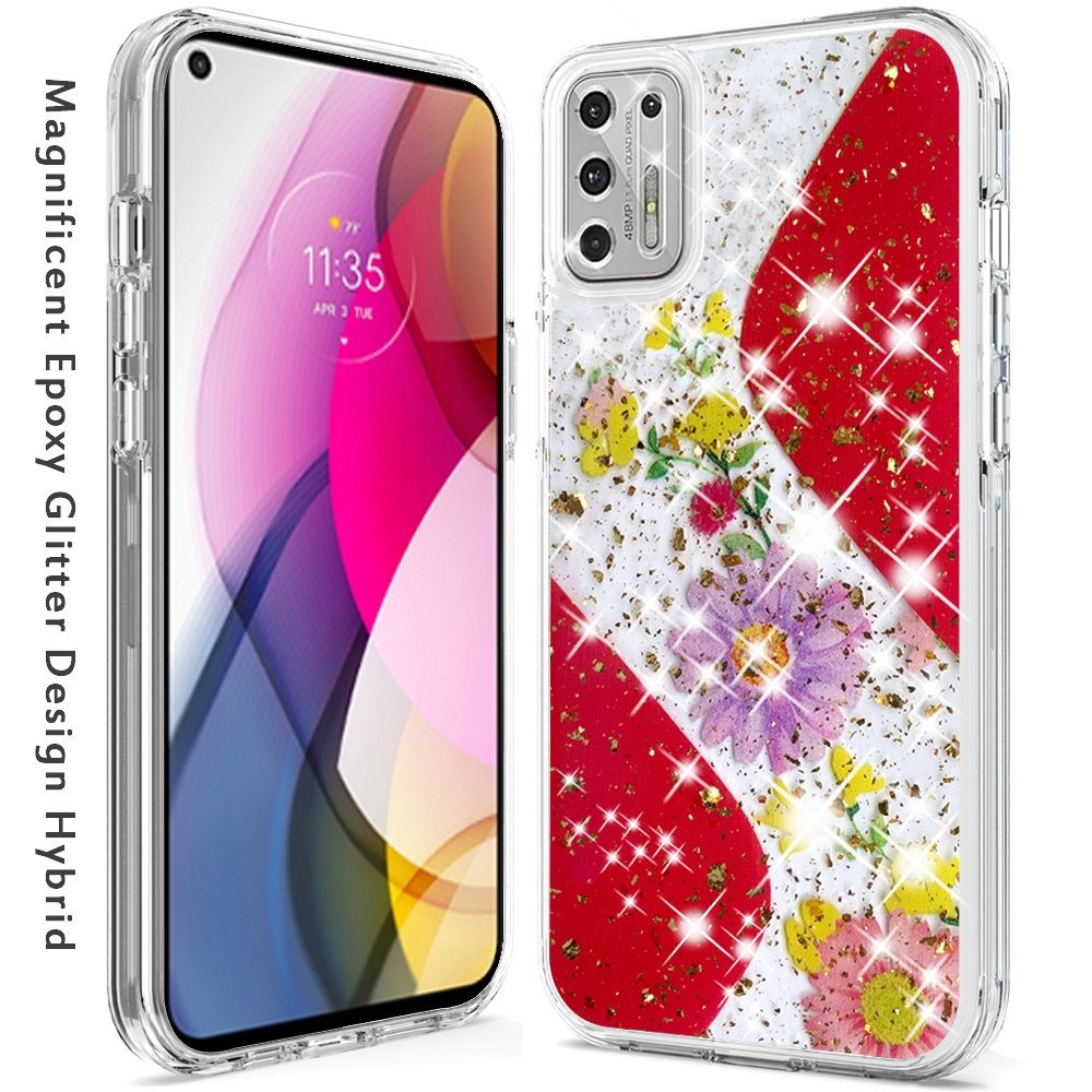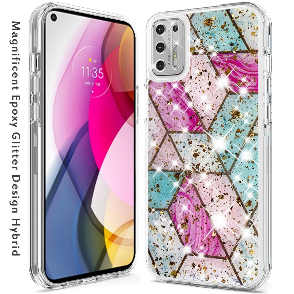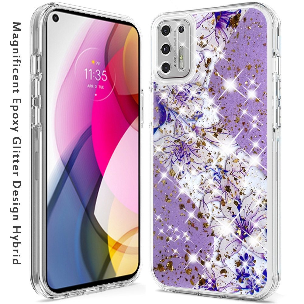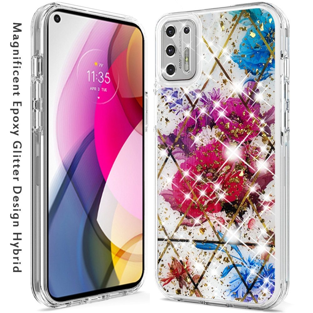 For Moto G Stylus 2021 Magnificent Epoxy Glitter Design Hybrid Case Cover
