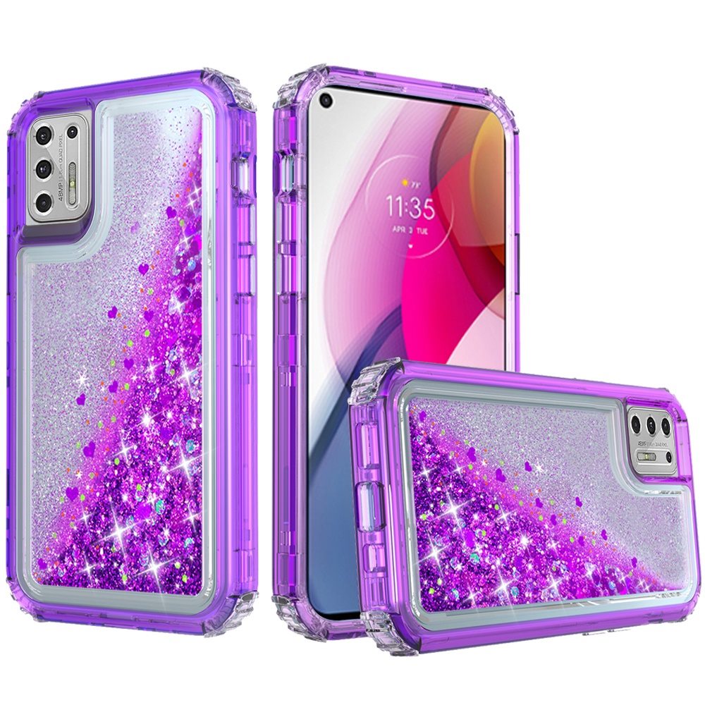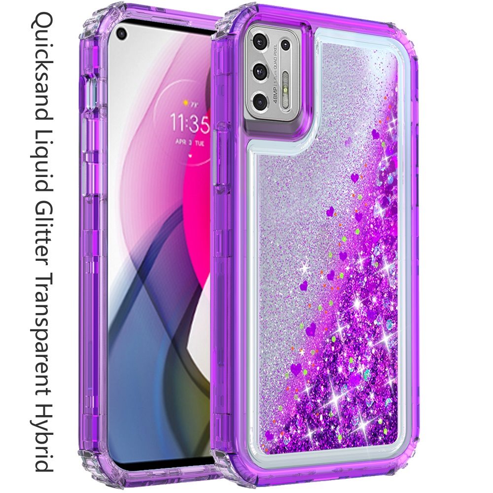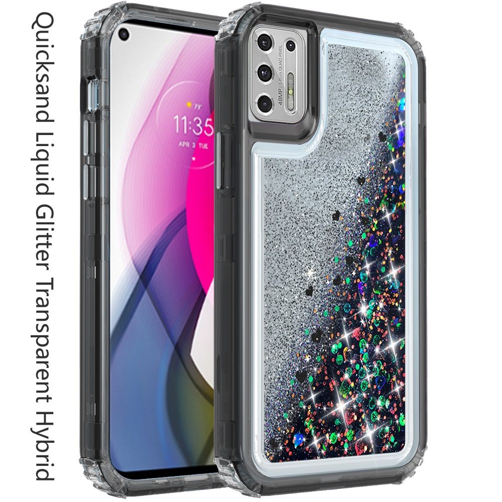 For Moto G Stylus 2021 Quicksand Liquid Glitter Transparent Hybrid Case Cover