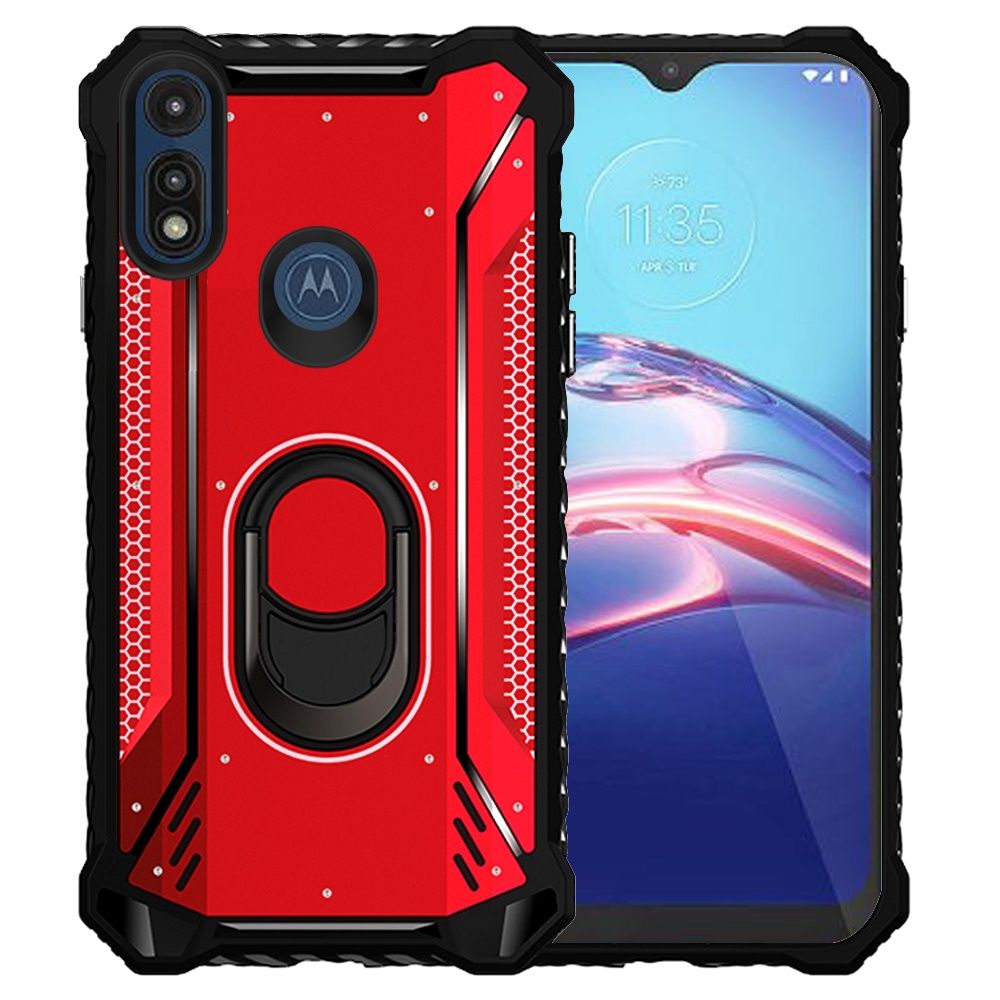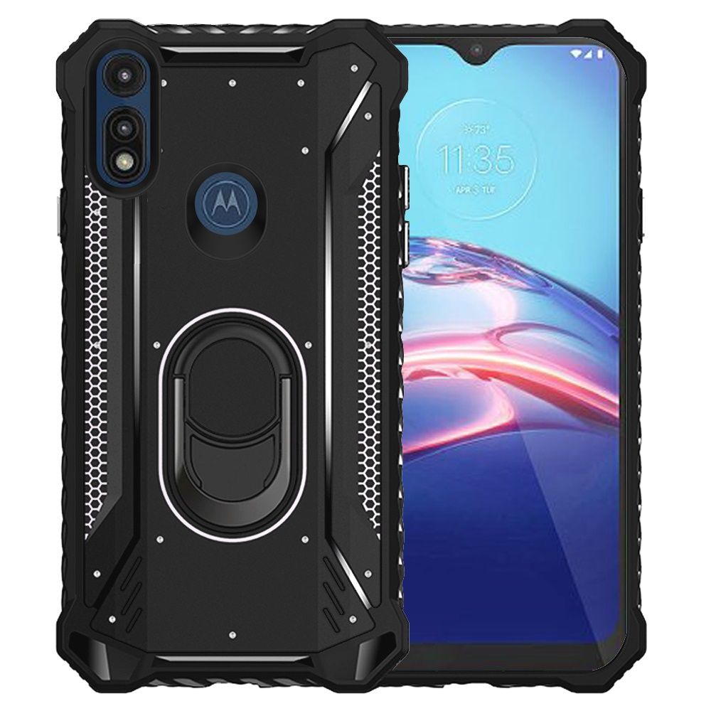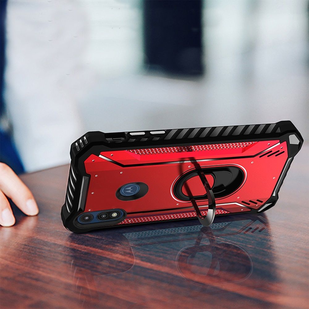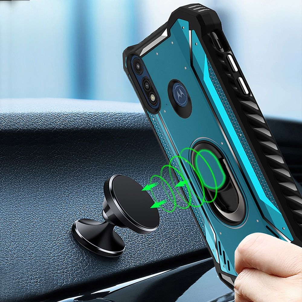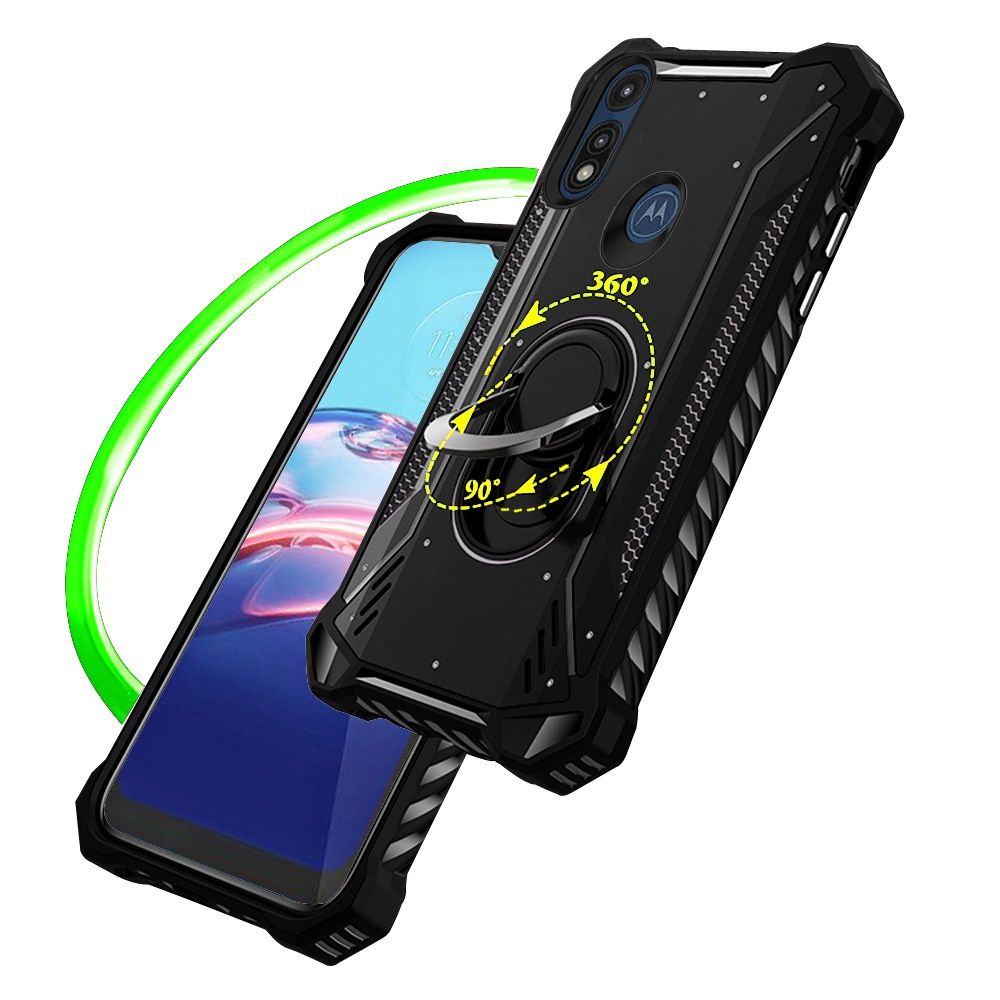 For Motorola Moto E (2020) Jacket Design Ring Magnetic Kickstand Case Cover
