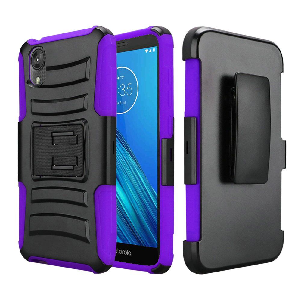 For Motorola MOTO E6 Premium Holster Clip Kickstand Case Cover