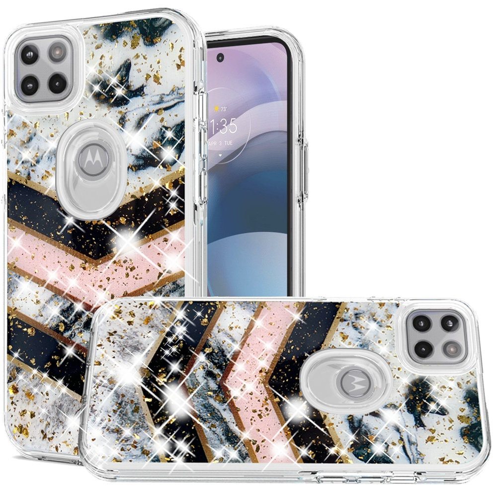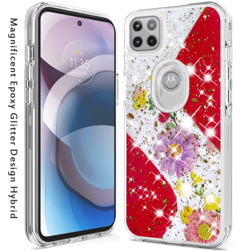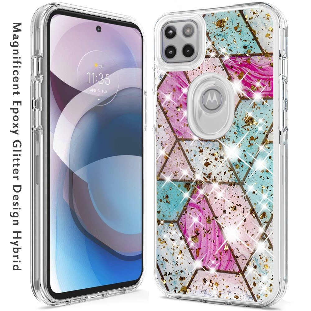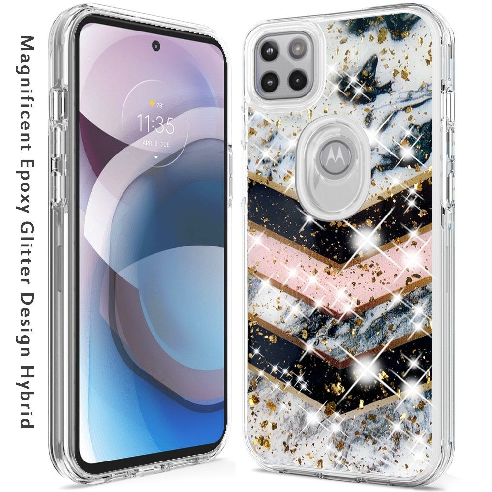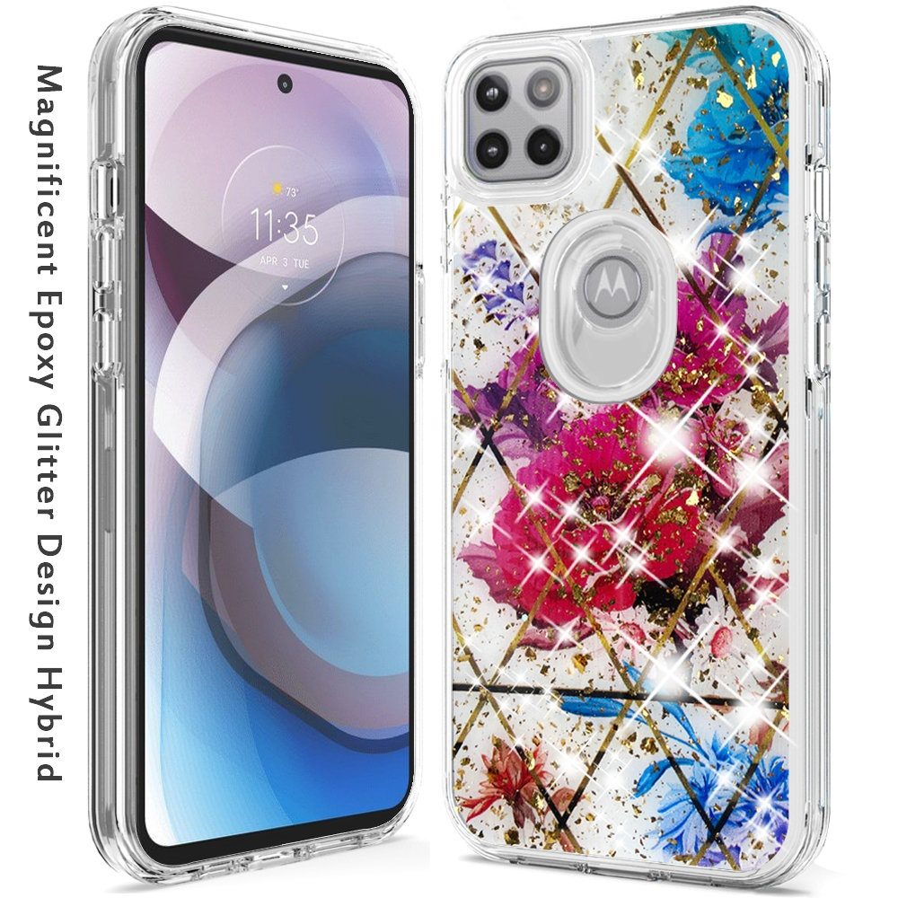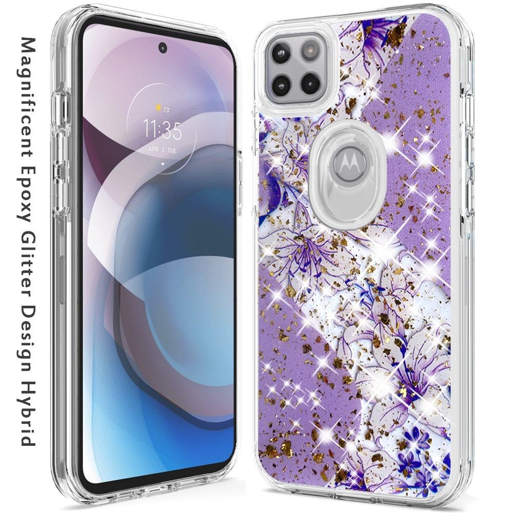 For Motorola Moto One 5G Ace Magnificent Epoxy Glitter Design Hybrid Case Cover