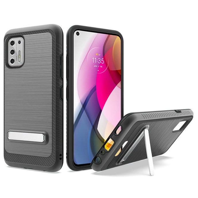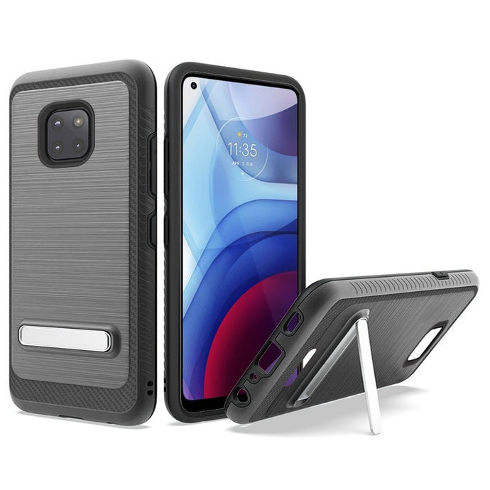 For Motorola Moto G Power 2021 Slim Brushed Hybrid with Design Edged Lining with magnetic kickstand