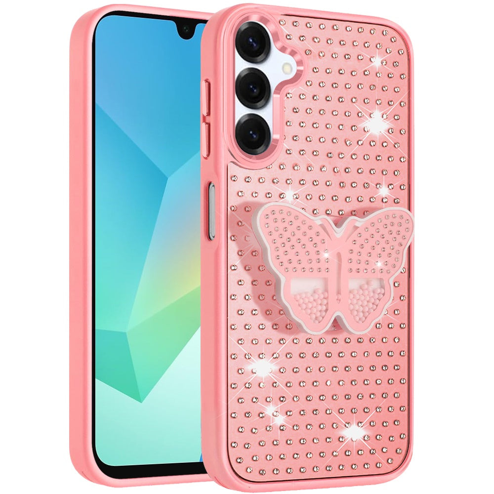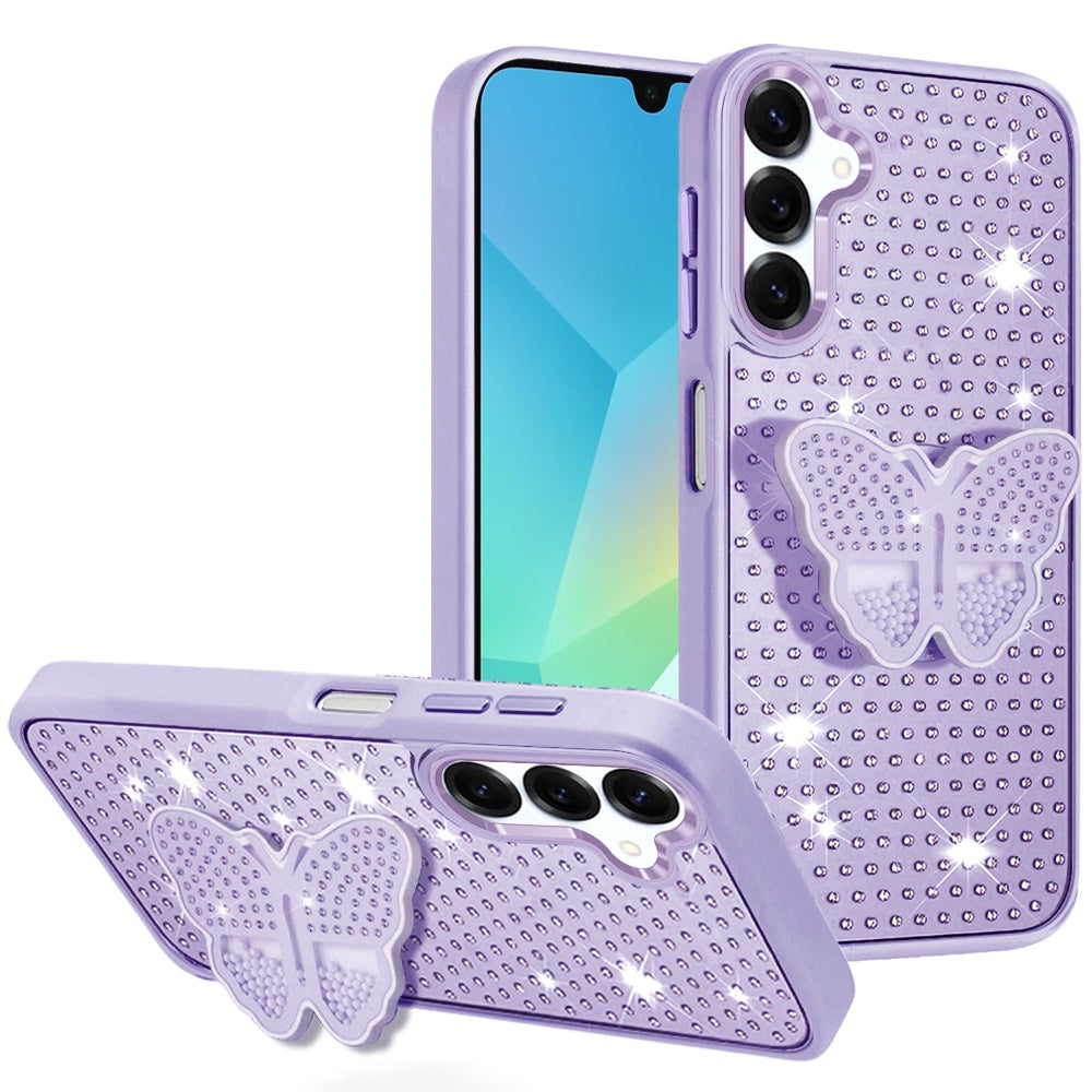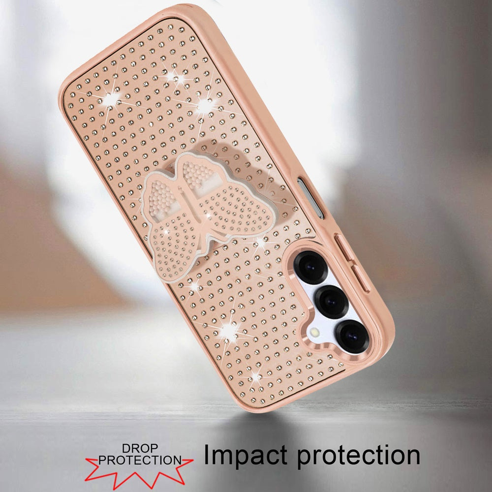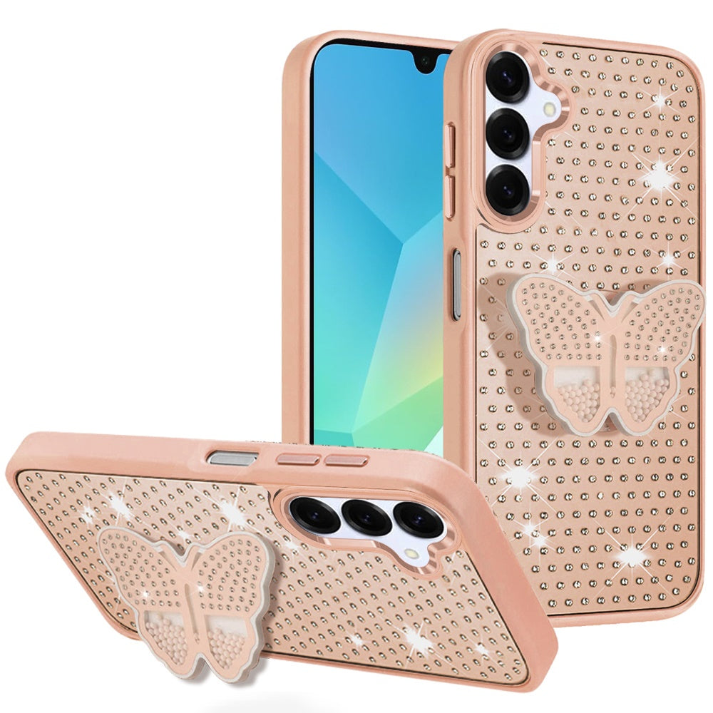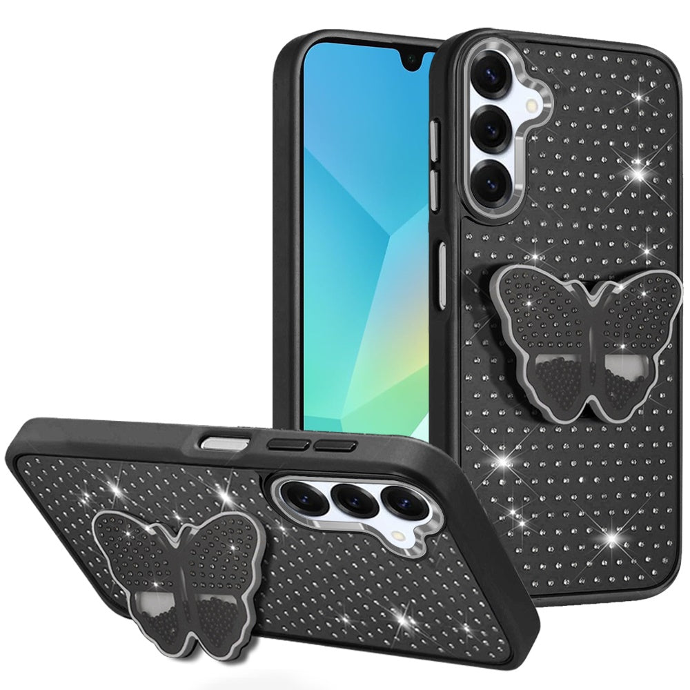 Butterfly Grip Stand with Faux Crystals Chrome Plated Buttons and Camera Trim + Tempered Glass Screen Protector