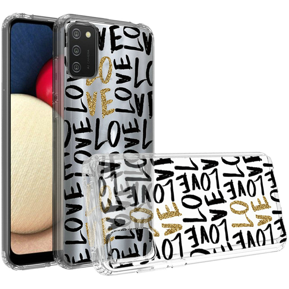 For Samsung A02s Design Transparent Bumper Hybrid Case Cover