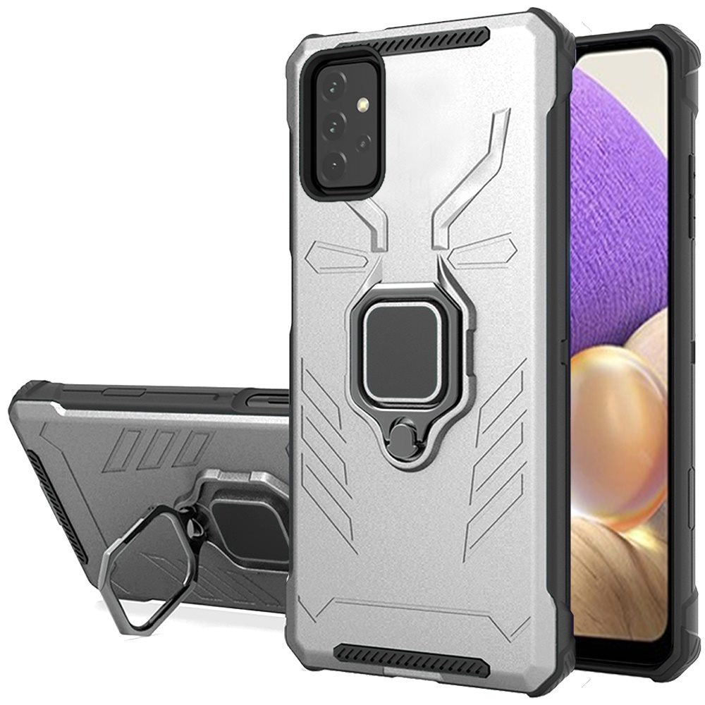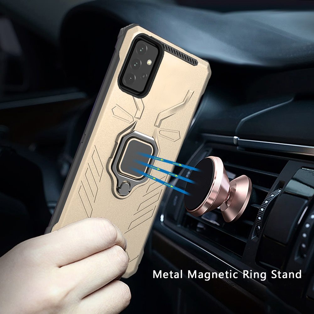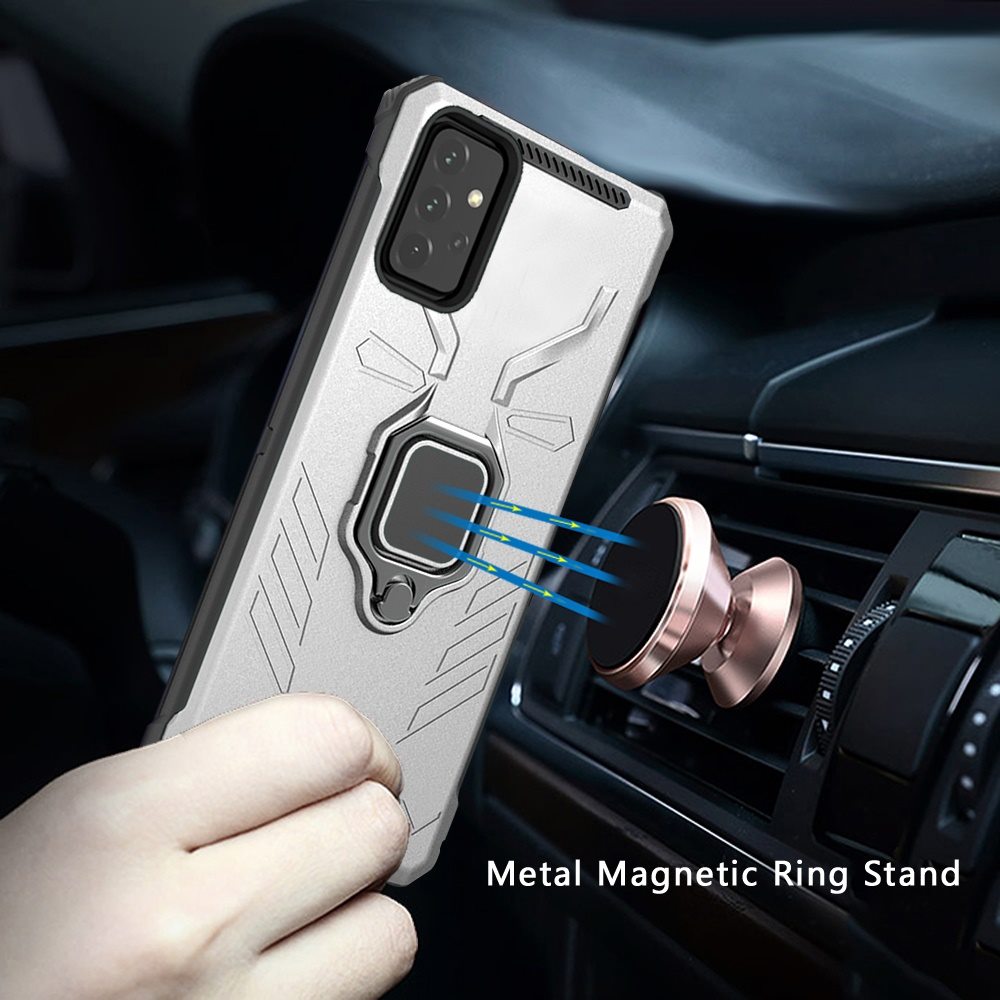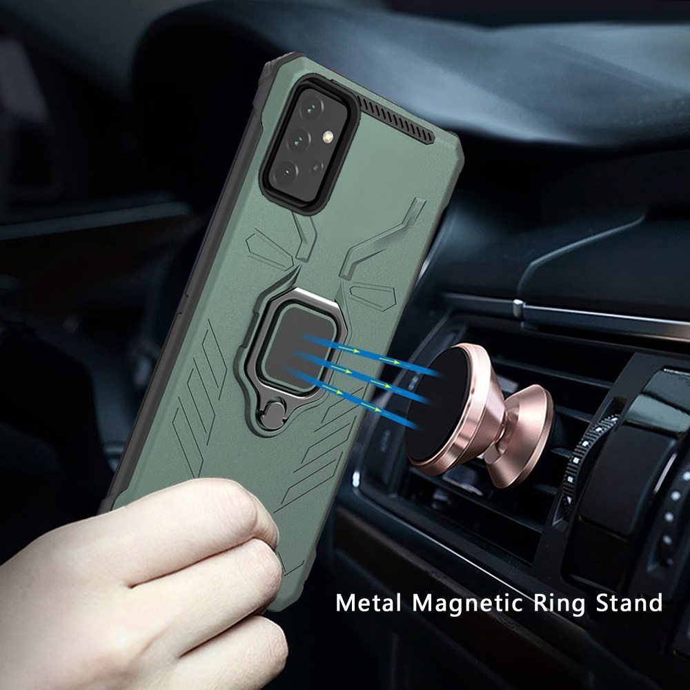 For Samsung A32 5G Craze Iron Man Lined Design Metal Magnetic Ring Stand