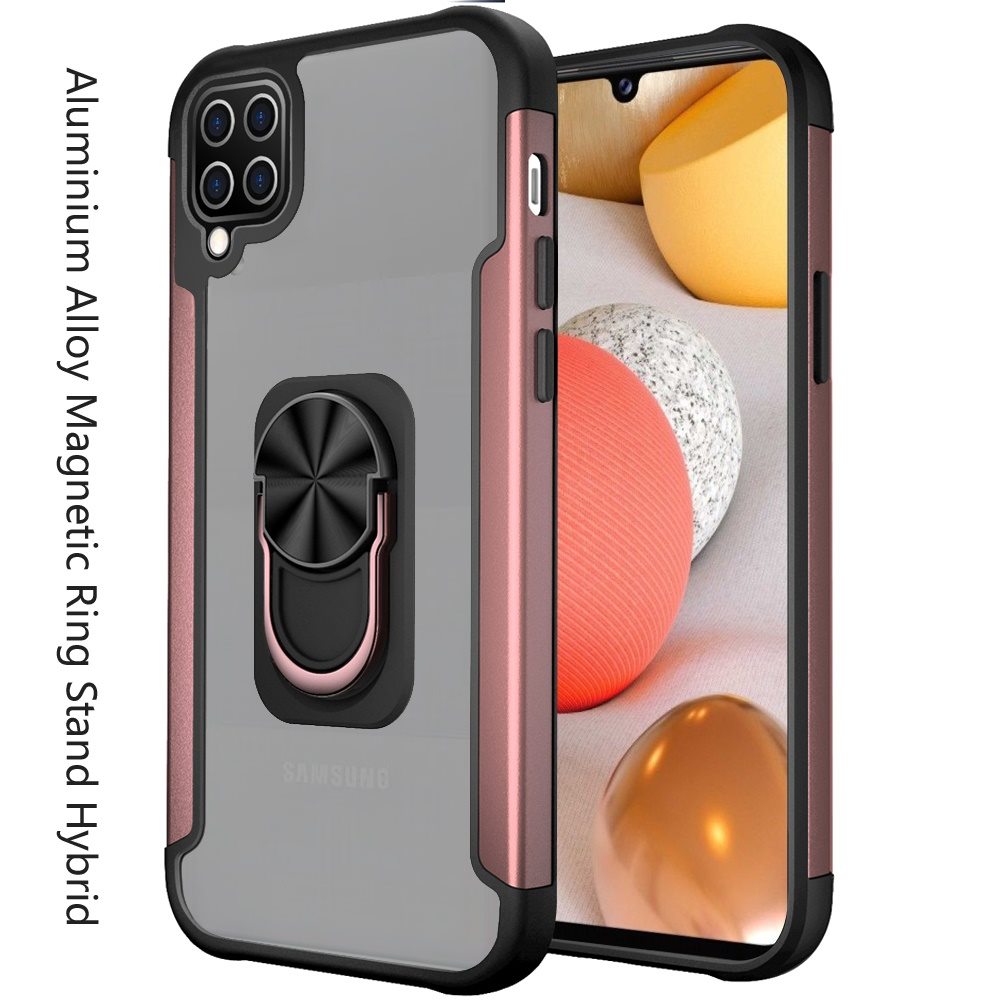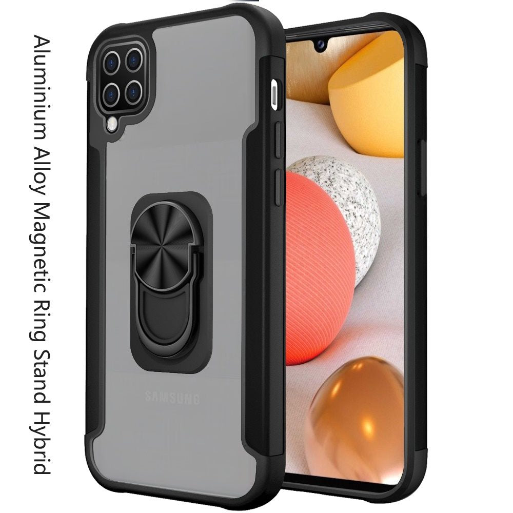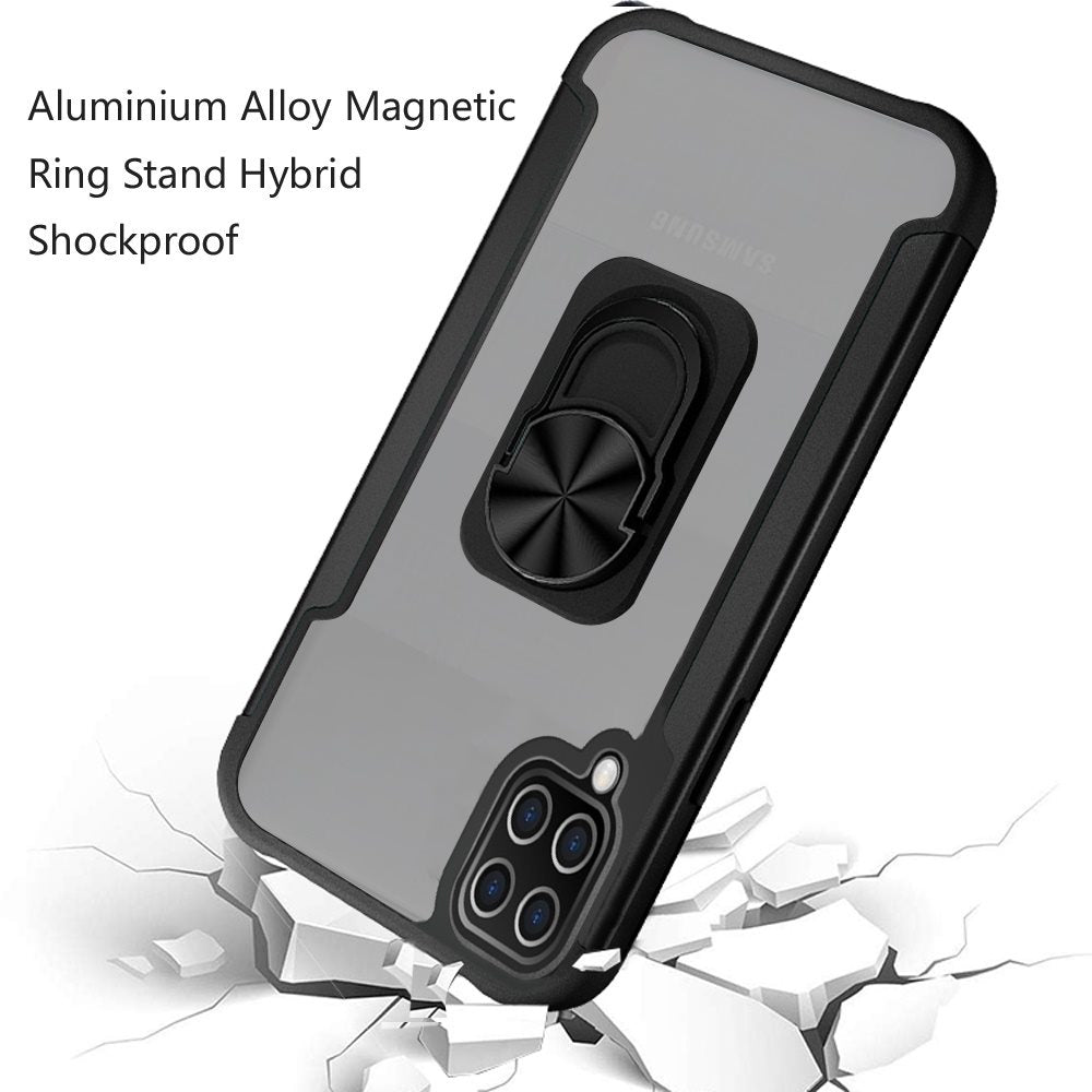 For Samsung A42 5G Aluminium Alloy Magnetic Ring Stand Hybrid Case Cover